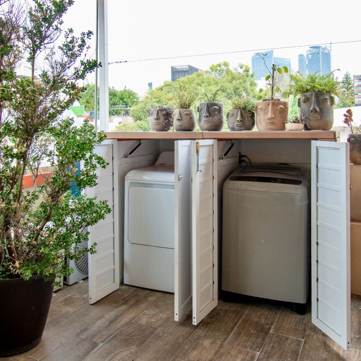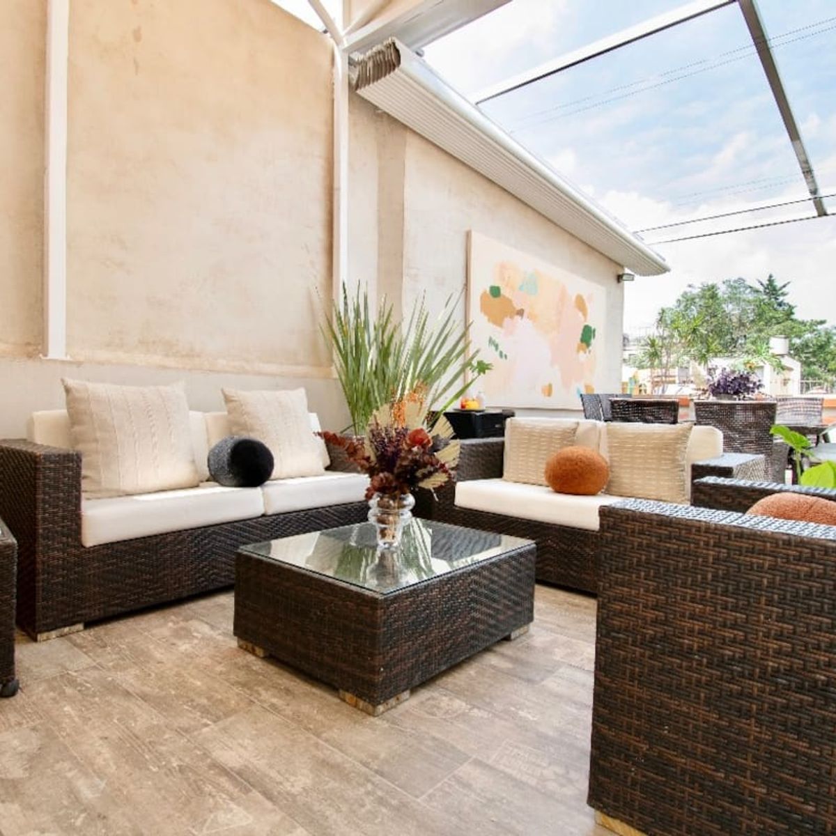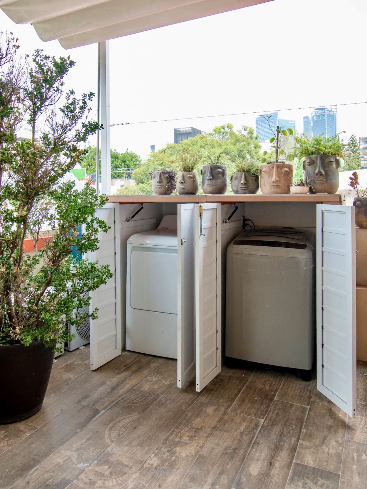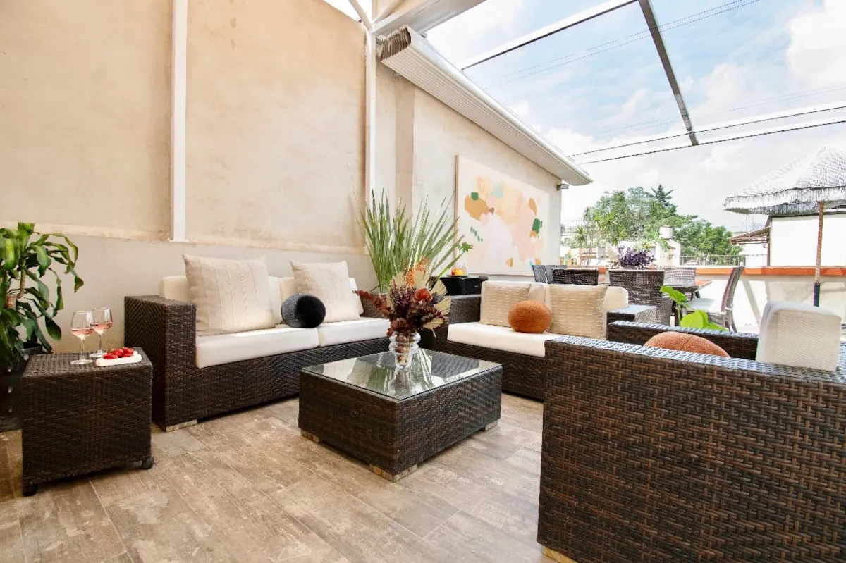 Up above, the rooftop sanctuary offers a lounge, dining table, and grill: perfect for gatherings under Mexico City’s sky, whether it’s a sunny afternoon or a starry night.