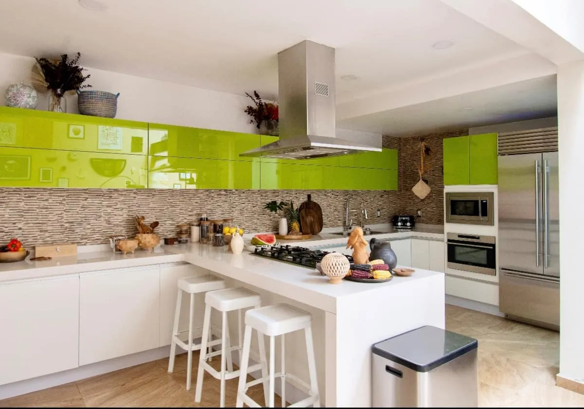 The kitchen is the heart of the house—equipped with high-end appliances, it feels lived-in and loved. You’ll find Oaxacan pottery, glasses from Valle de Bravo, dishware from San Miguel de Allende, and spices and artifacts that make cooking here a sensory experience.