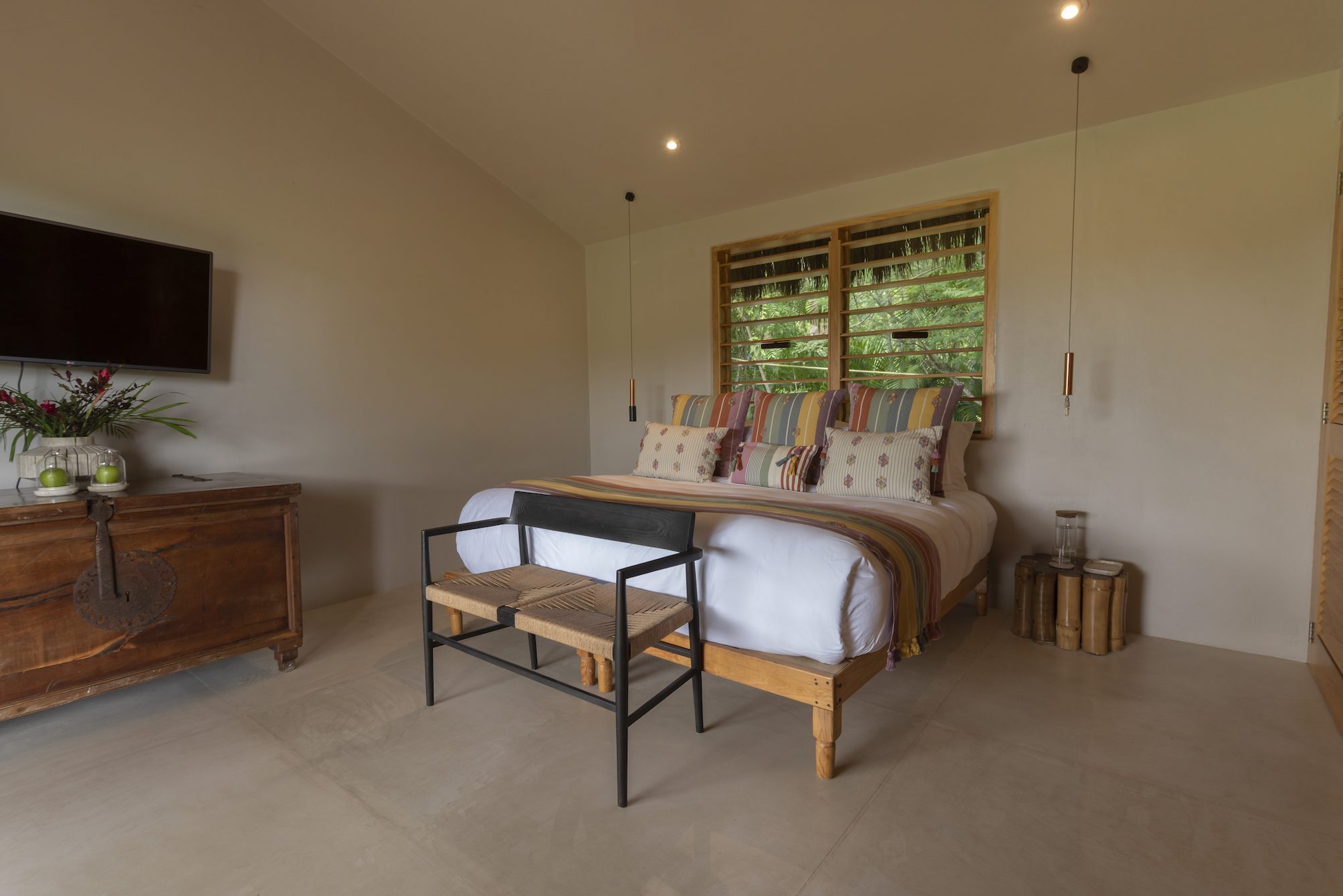 The villa has 8 bedrooms and 2 pools in total, rooftop, fantasy tree house and incredible areas for all types of entertainment. Chefs, housekeepers and all trained service staff will attend you with excellence. All rooms and bungalows have ocean views and luxury amenities such as yoga mats, bathrobes, board games, stationery, snacks, among others.