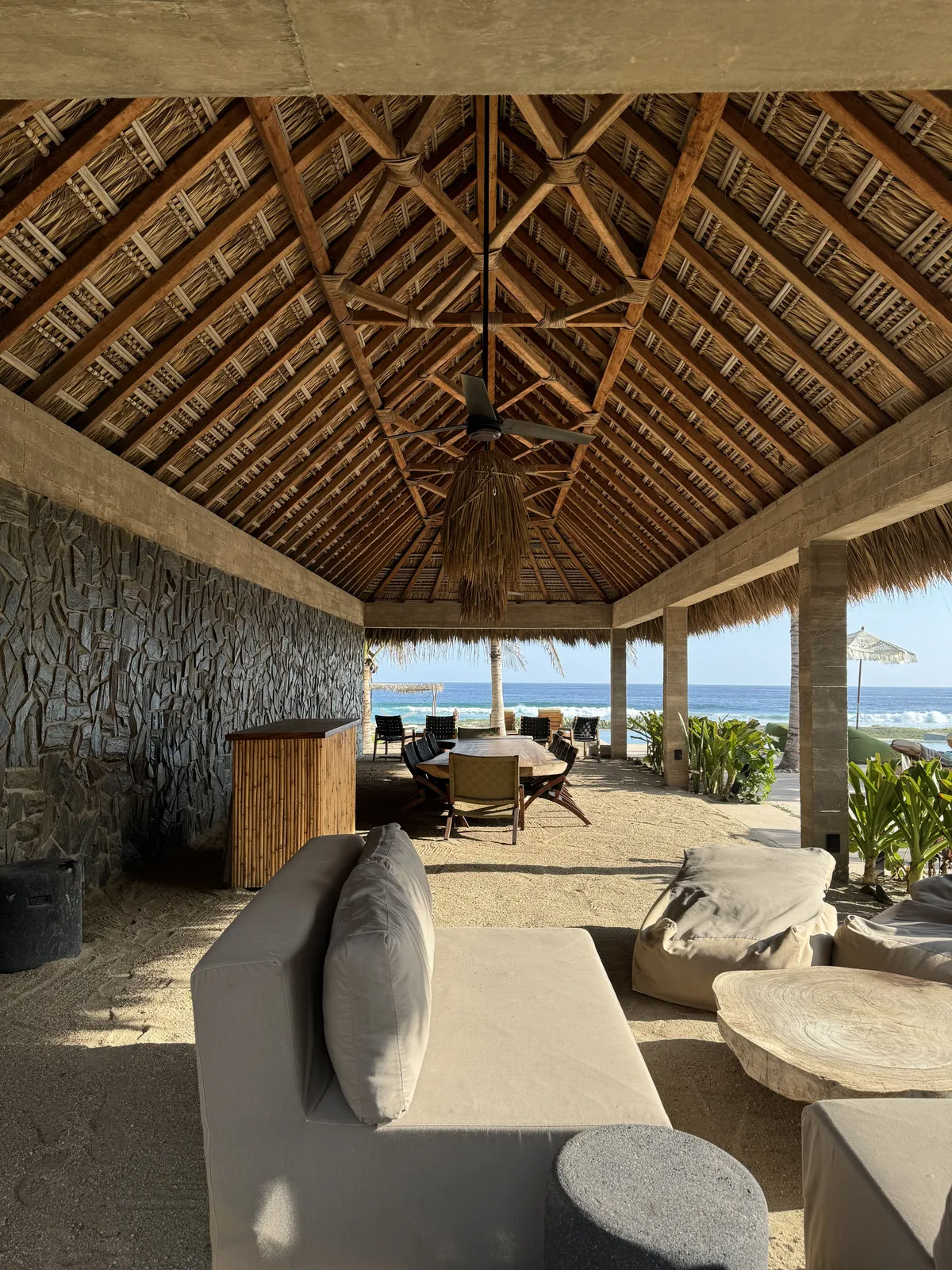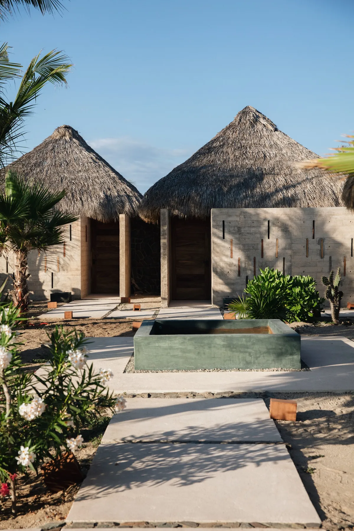 The CDM Arquitectos team has created a space where raw, organic materials work in perfect harmony with sleek, contemporary accents. We love the contrast between the rustic palapas and the almost ecclesiastical approach to space and proportion, whose overall effect is reminiscent of a Zen temple on the Oaxacan coast.