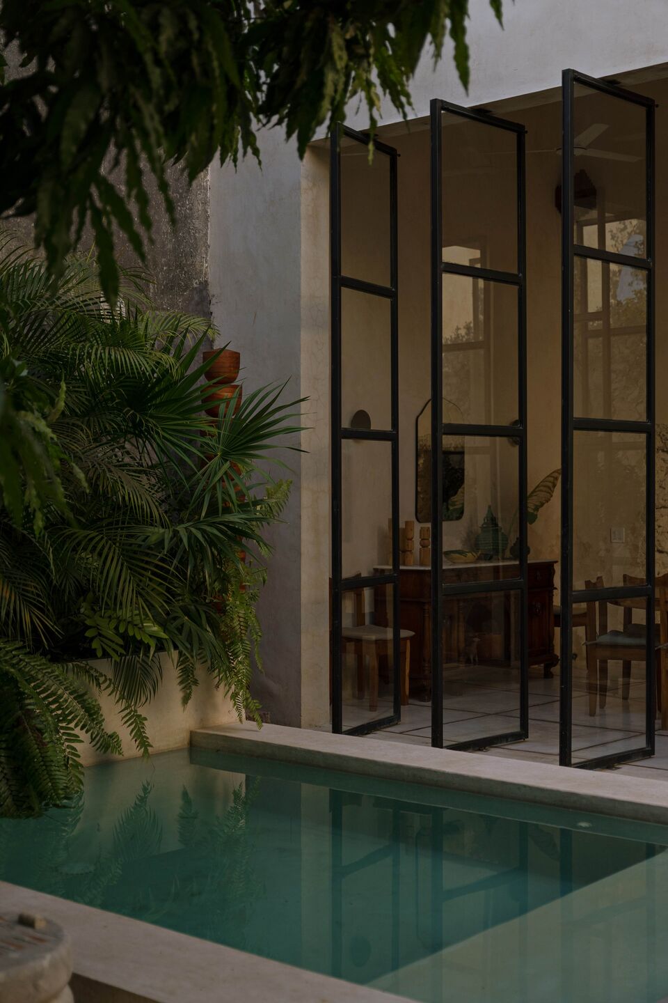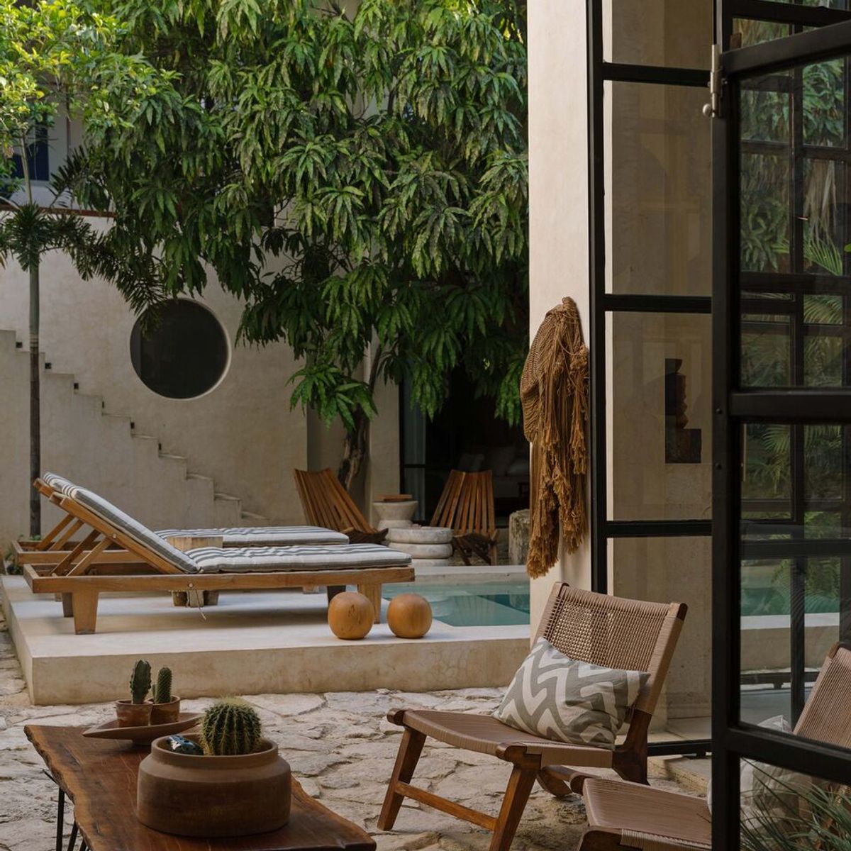 Natural materials like chukum for waterproofing and mahogany wood for furniture enhance the connection to the local environment. The design incorporates preserved trees and lush tropical plants, creating a secluded and tranquil atmosphere. More than just a residence, Casa KI is a space where the history of henequen and Yucatán’s architectural heritage are reflected in every detail.