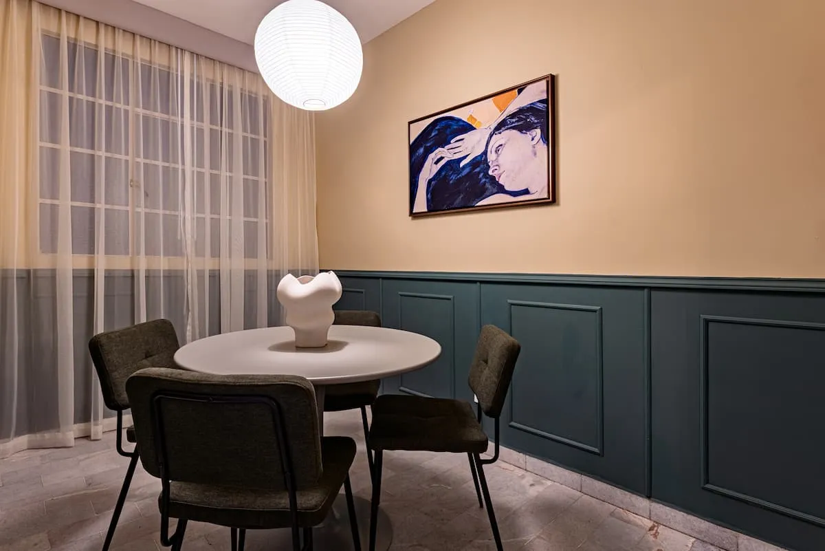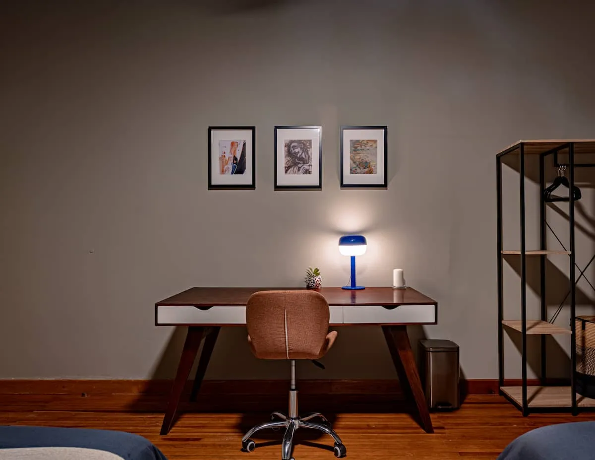 The apartment includes fast WiFi, a dedicated workspace, and a safe.