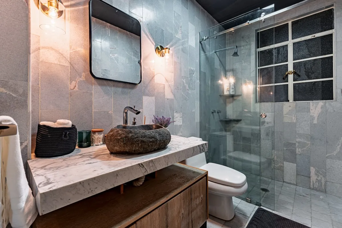 Total of 5 bedrooms, each bedroom is designed for relaxation, with blackout shades and high-quality bedding. Three full bathrooms with showers and hot water.