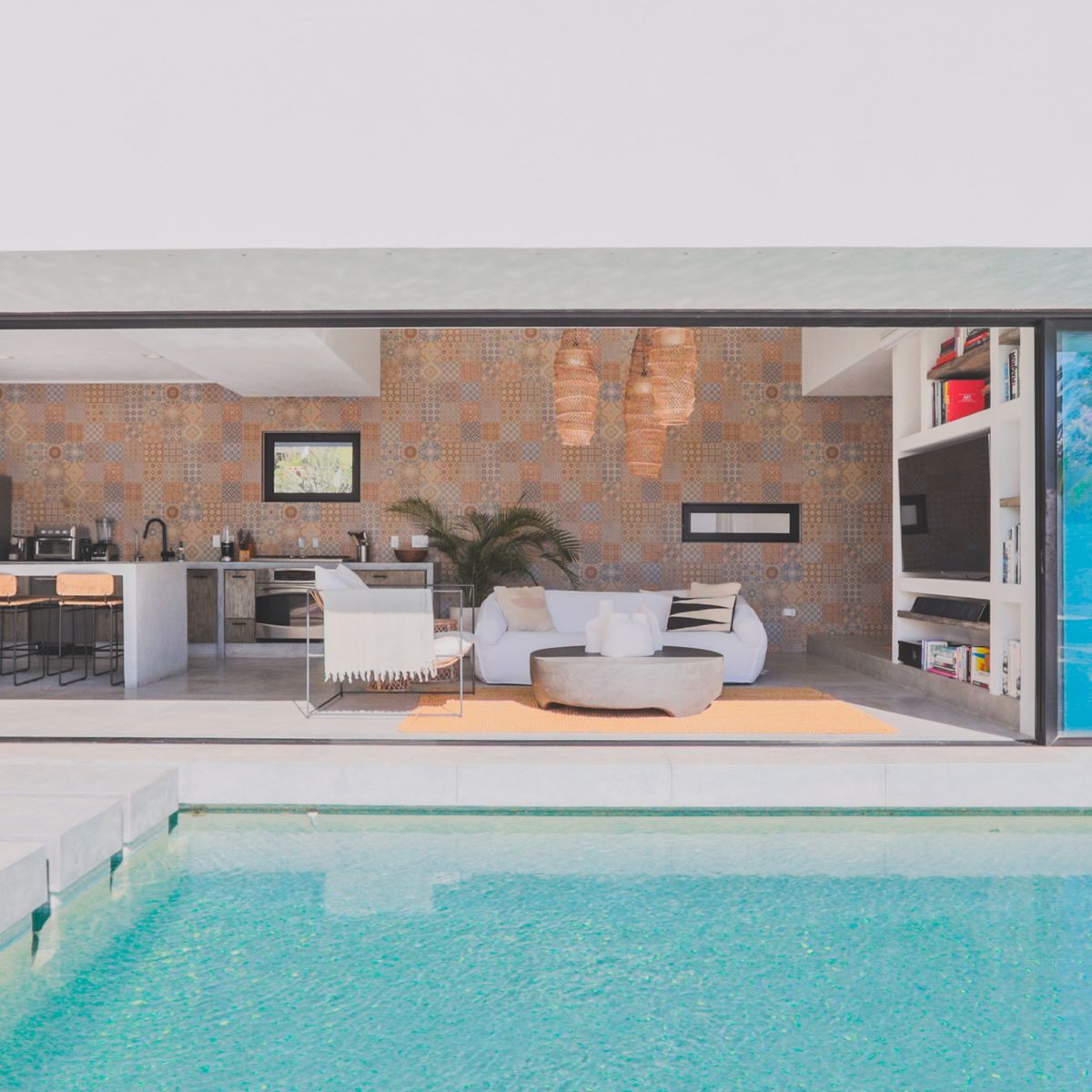 A 5-minute walk to Costa Azul surf beaches and a short drive to grocery stores, restaurants, art galleries, and downtown San Jose del Cabo, Casa Margaux offers 5,700+ square feetof indoor/outdoor living space, decorated to inspire the creative spirit. Each bedroom has its own entrance from the open-air hallways providing the ideal level of privacy from the common spaces.