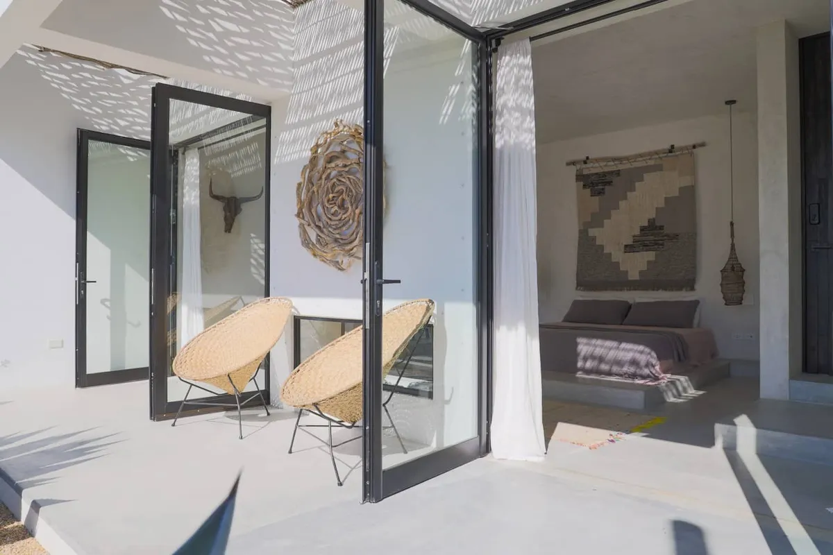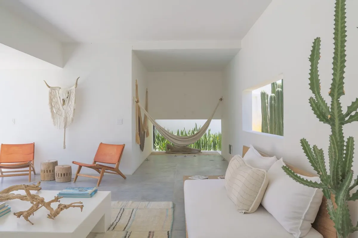 A 5-minute walk to Costa Azul surf beaches and a short drive to grocery stores, restaurants, art galleries, and downtown San Jose del Cabo, Casa Margaux offers 5,700+ square feetof indoor/outdoor living space, decorated to inspire the creative spirit. Each bedroom has its own entrance from the open-air hallways providing the ideal level of privacy from the common spaces.