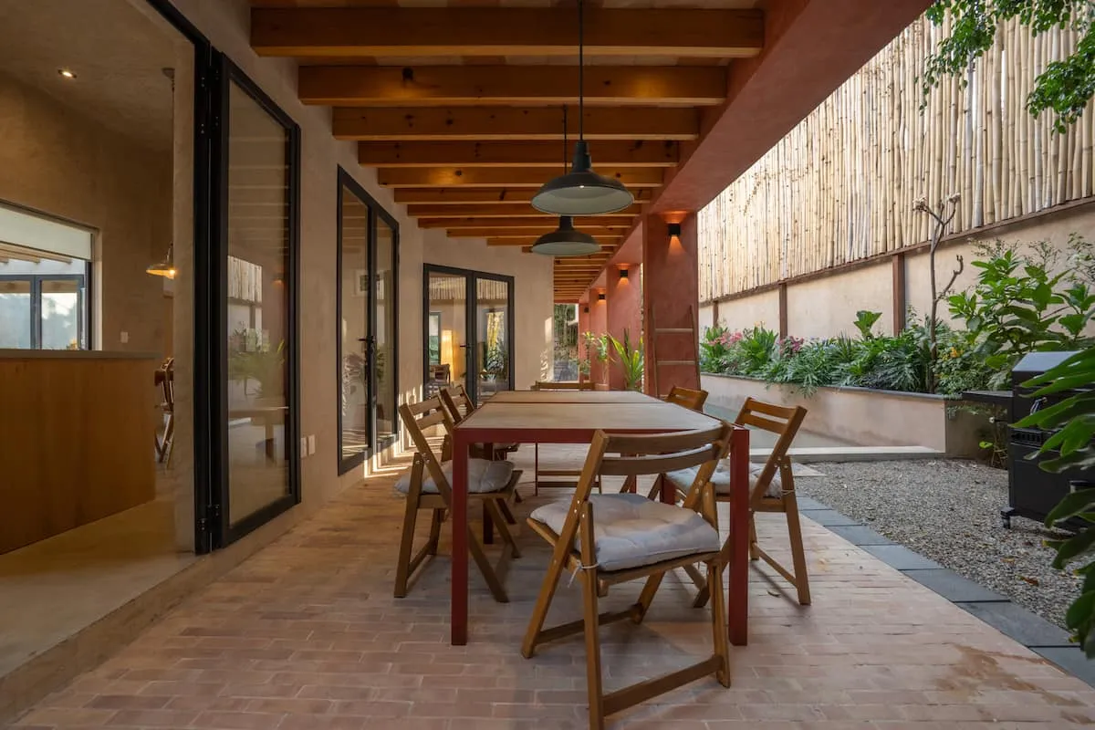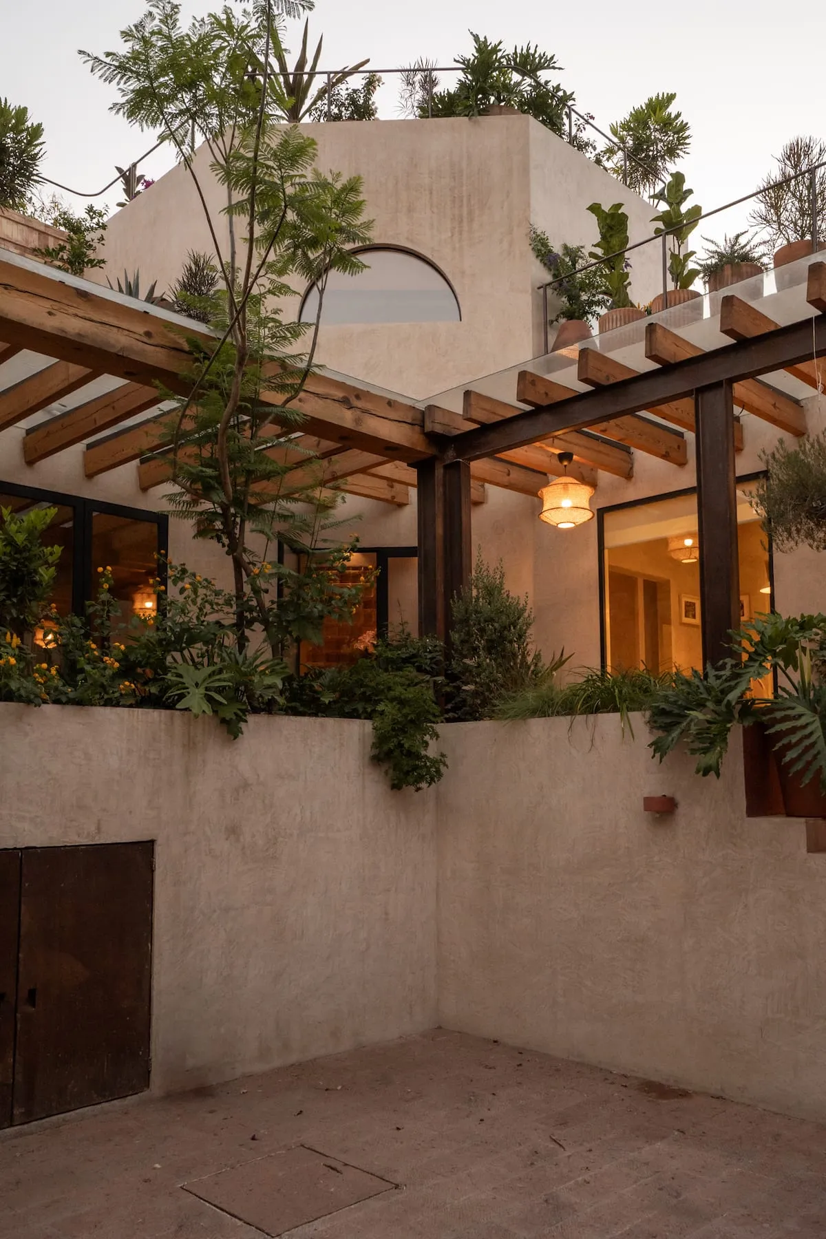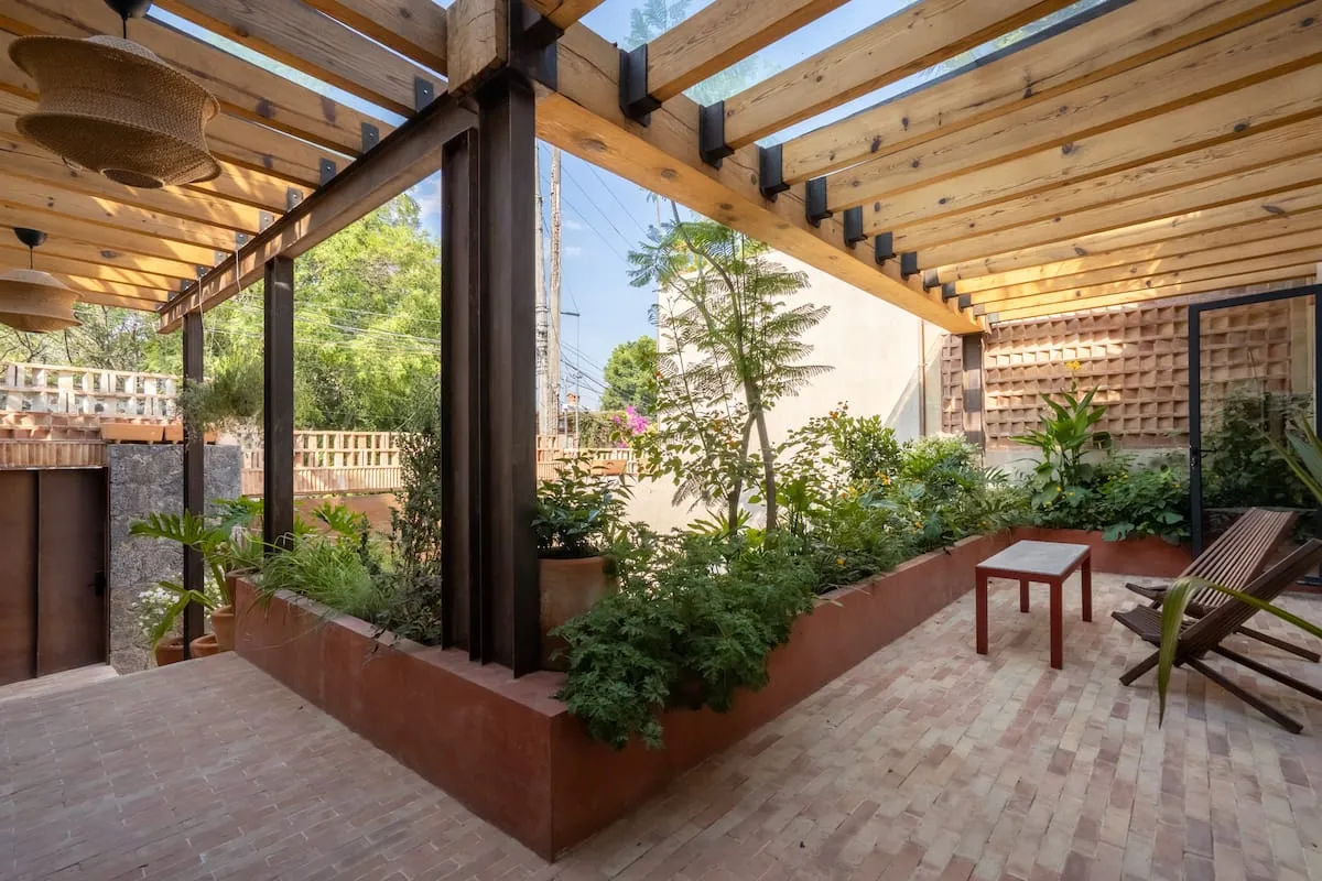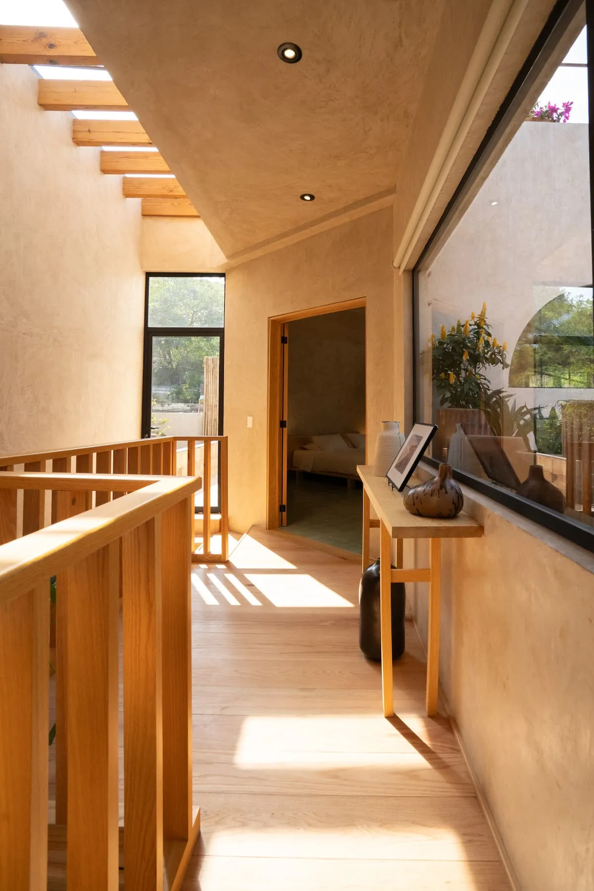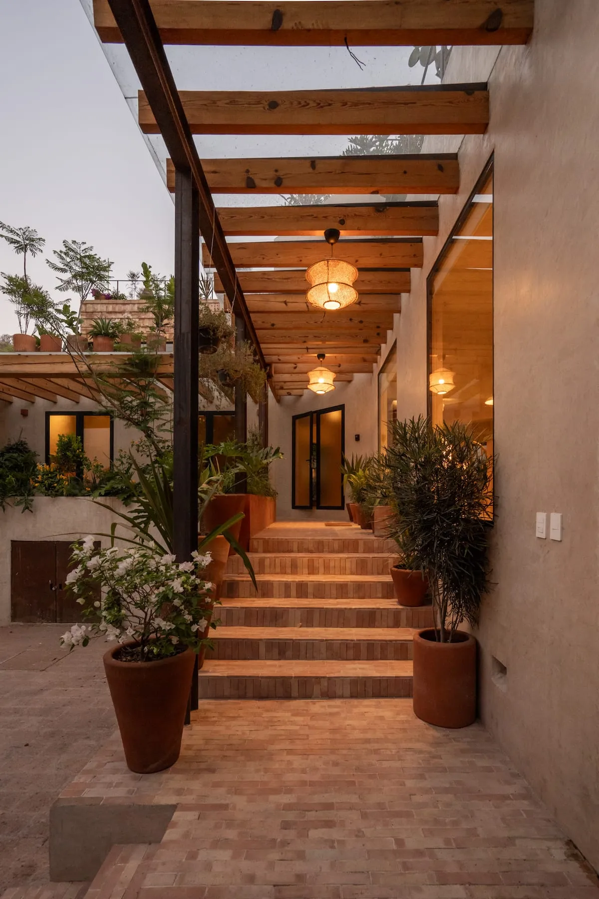 The home features lush terraces designed as vertical gardens, creating fresh and relaxing outdoor areas that embrace Tepoztlán’s unique climate.