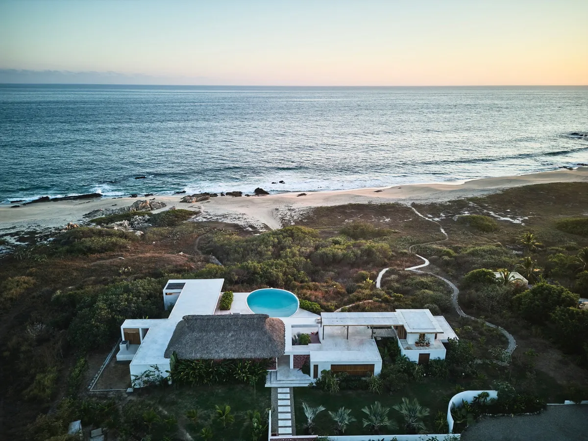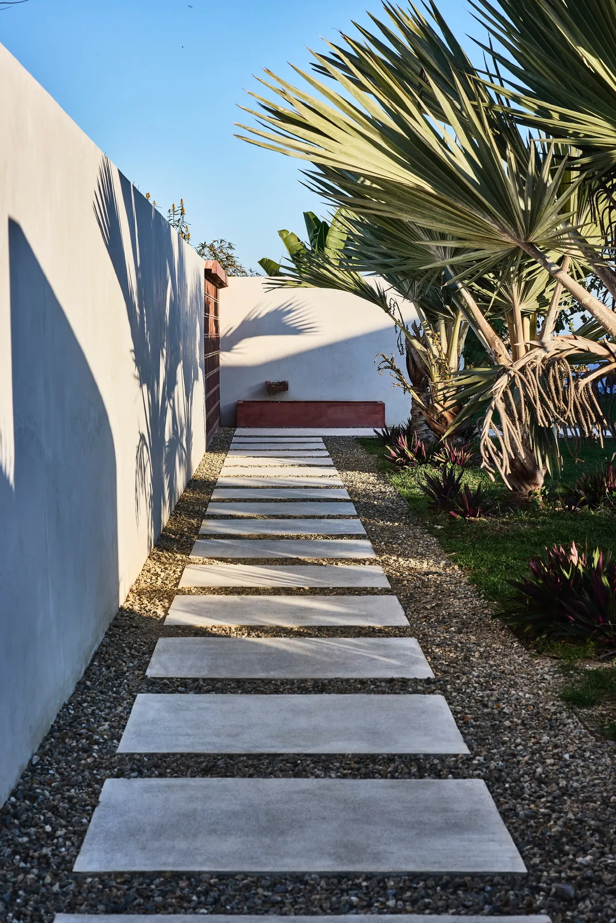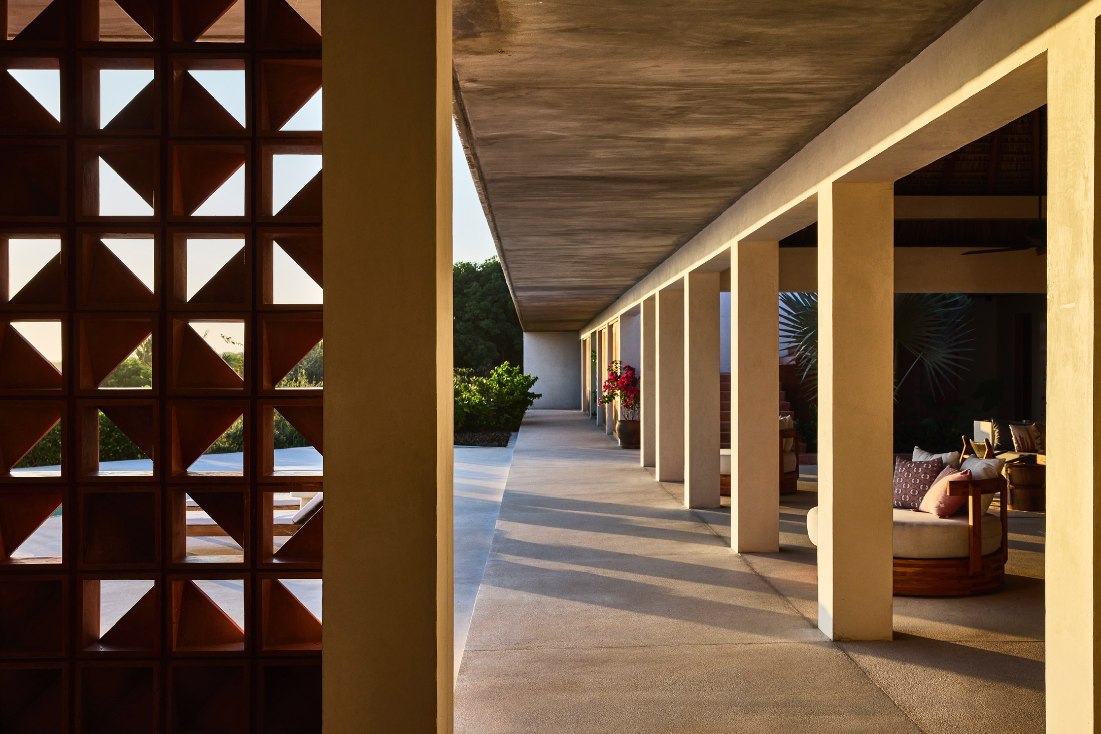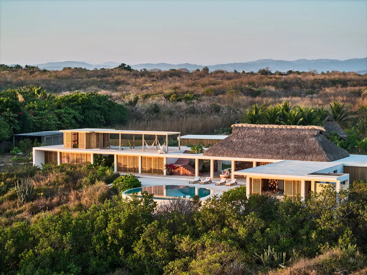 Master Bedroom 1 with sliding doors overlooking the mangrove, ocean, and pool. Private plunge pool. A desk with space to work. en suite bathroom, Double sink, and rain shower.