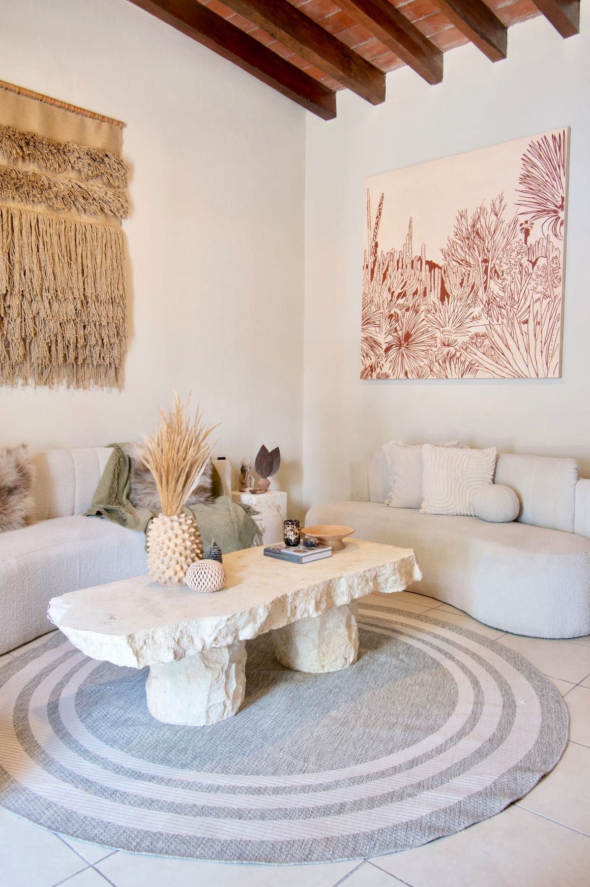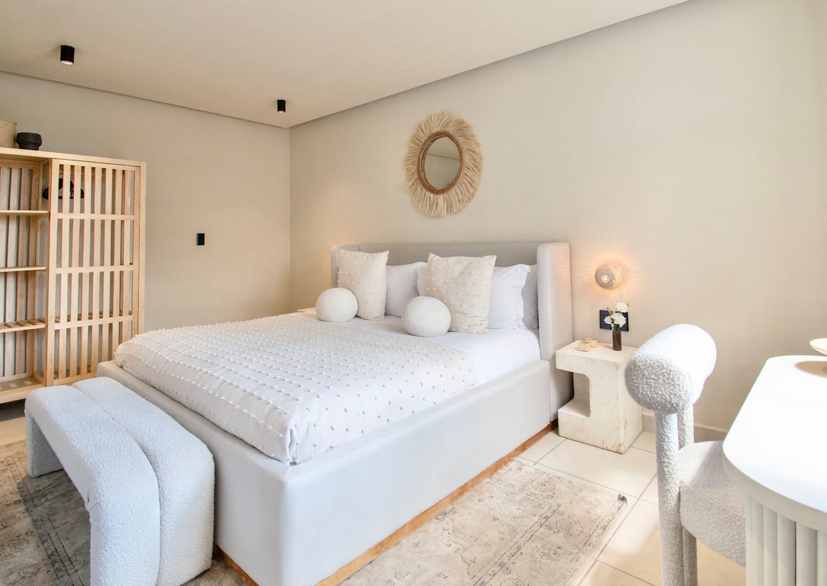 The home unfolds across generous volumes filled with natural light, where soft tones and tactile finishes shape a calm, introspective environment. Each bedroom is designed as a private retreat, balancing comfort with a strong sense of identity tied to the region’s cultural heritage.