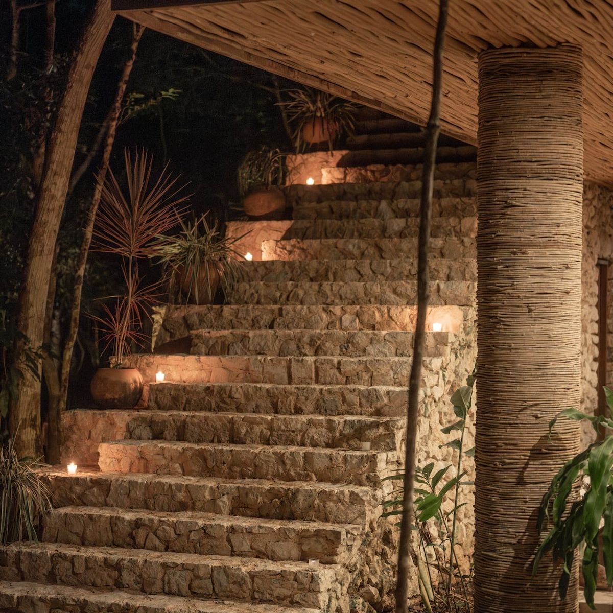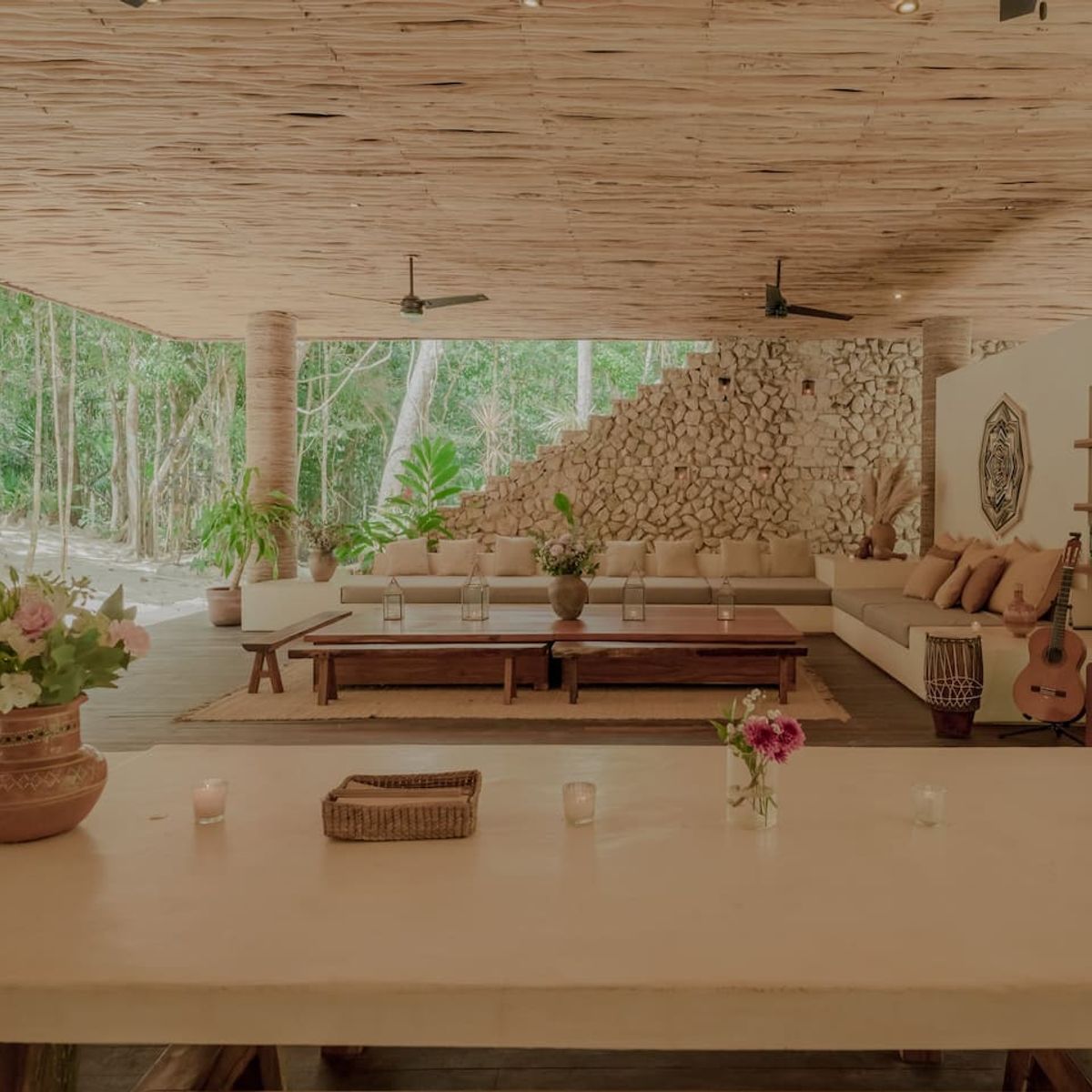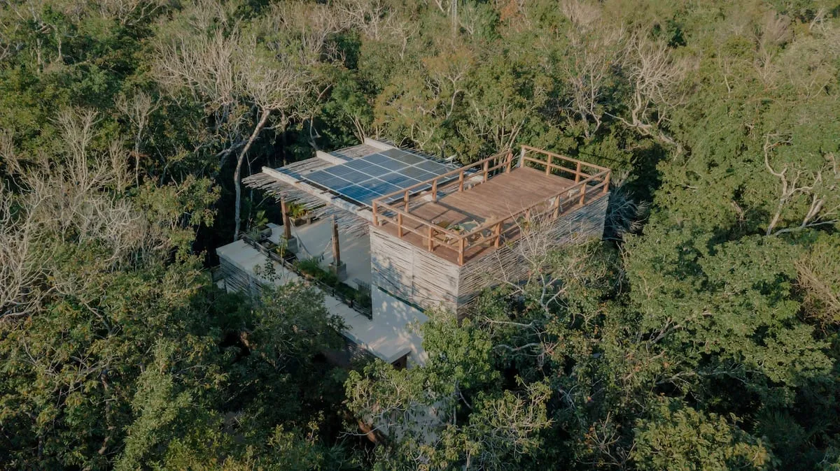 The villa blends luxury with nature, featuring open and inviting spaces, a private cenote illuminated by candlelight, and a breathtaking rooftop with panoramic jungle views—ideal for sunrise yoga, sunset gatherings, or stargazing.