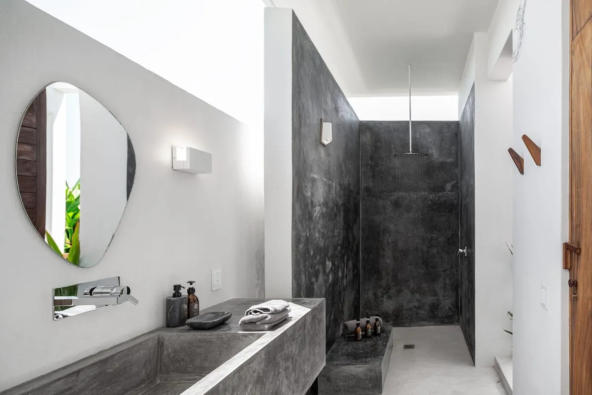 The villa's most impressive feature is its 3 swimming pools. The oceanfront infinity pool seems to almost connect with the Pacific, while the interior pool continues the interplay between indoors and out. Equally, the upstairs hot tub makes the property feel like something between a Oaxacan villa and Japanese sento.