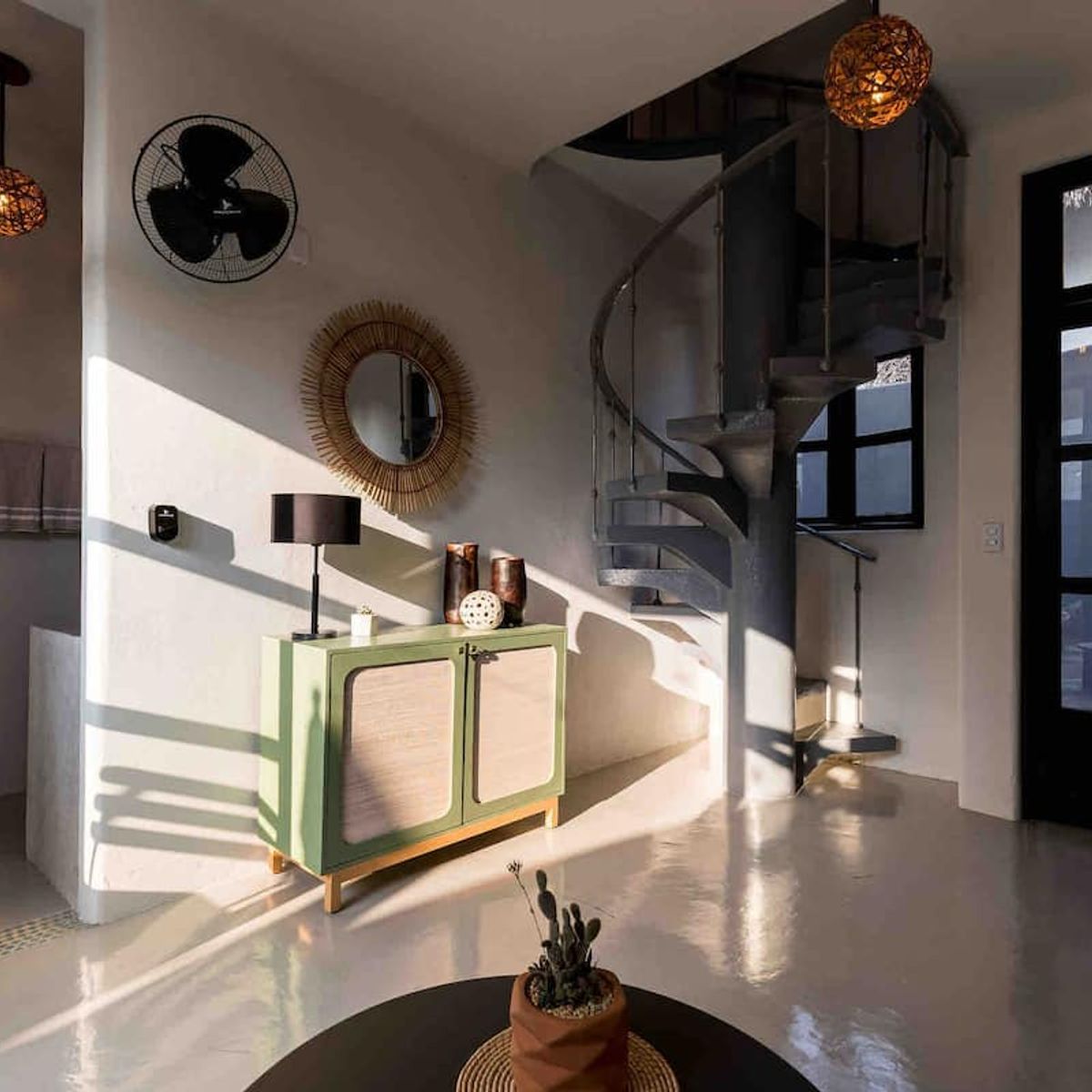 For families with small children, please be mindful of balconies and spiral staircases.