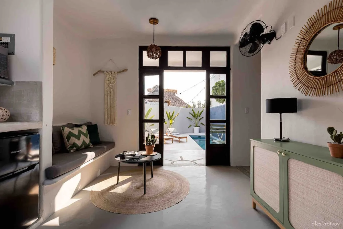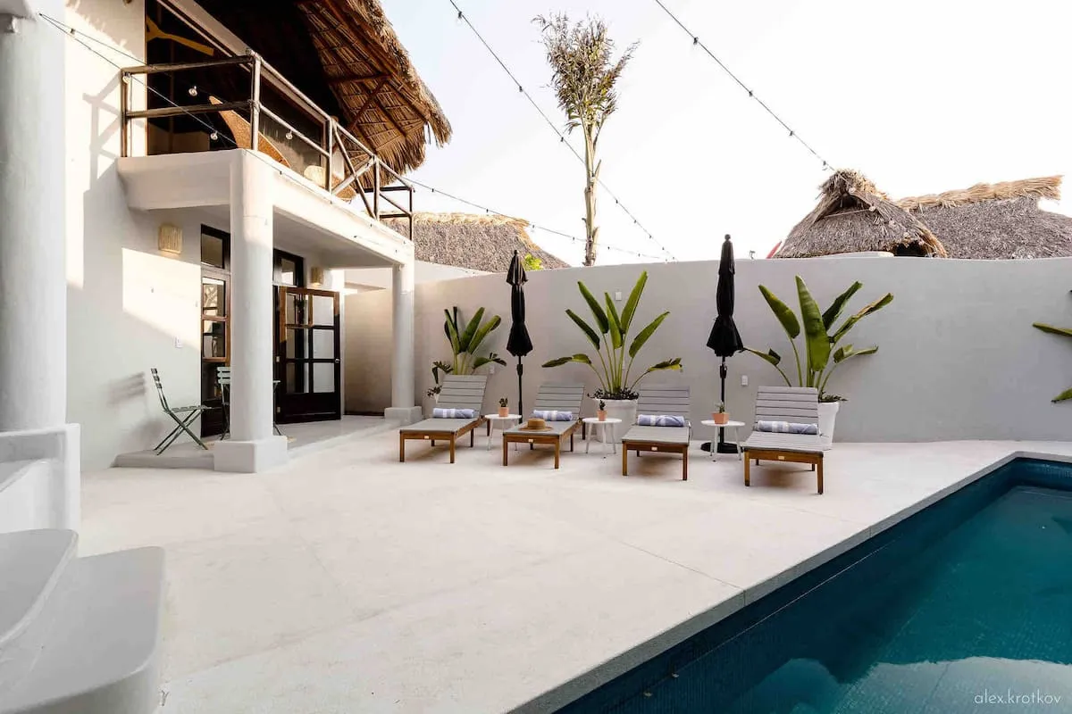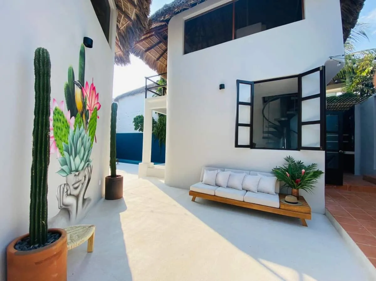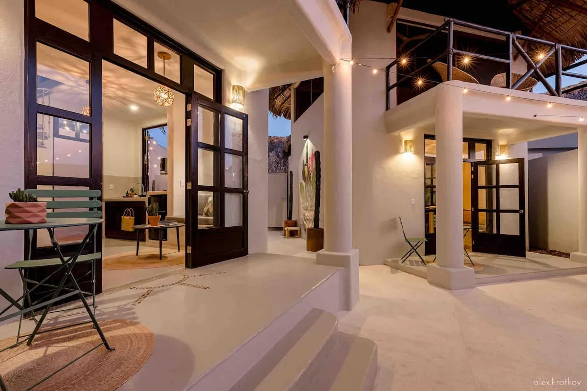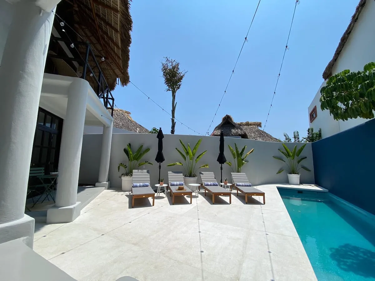 Casa Nopal offers a unique stay with two exclusive casitas, a private pool, an outdoor kitchen, and a beautiful courtyard. Wake up to Pacific Ocean views before heading down to Playa Manzanillo’s soft sand and clear waters. Designed with a modern Mexican aesthetic, Casa Nopal ensures privacy by renting both casitas together.