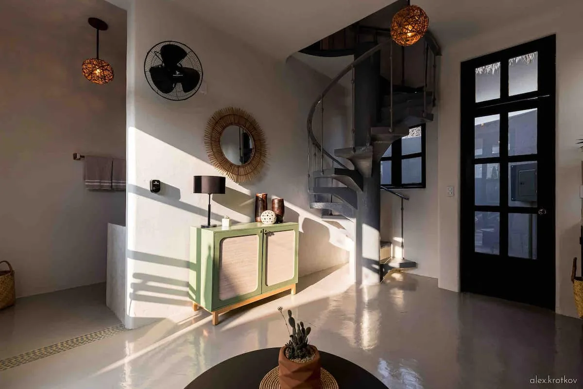 For families with small children, please be mindful of balconies and spiral staircases.