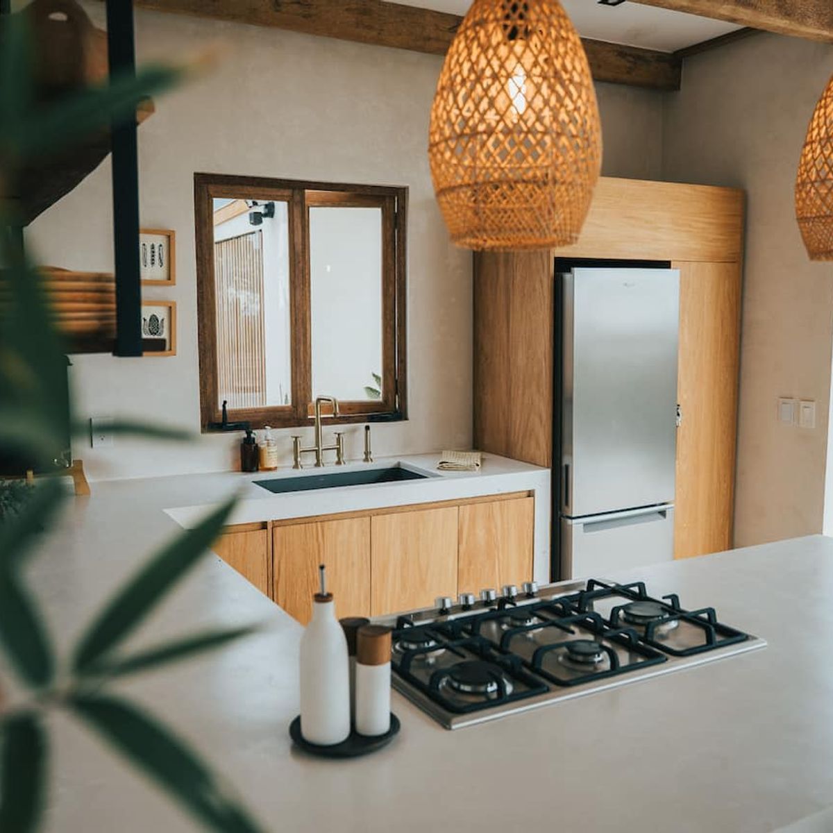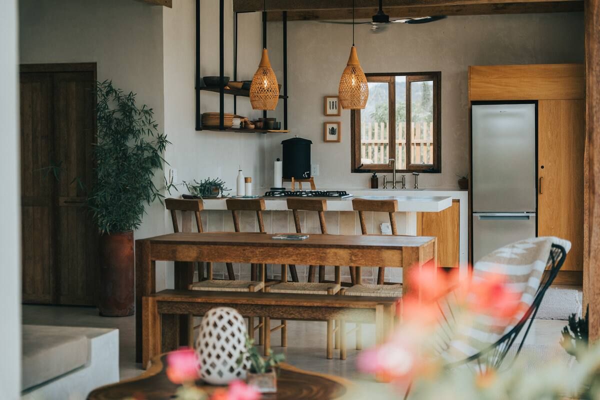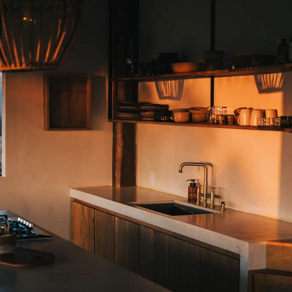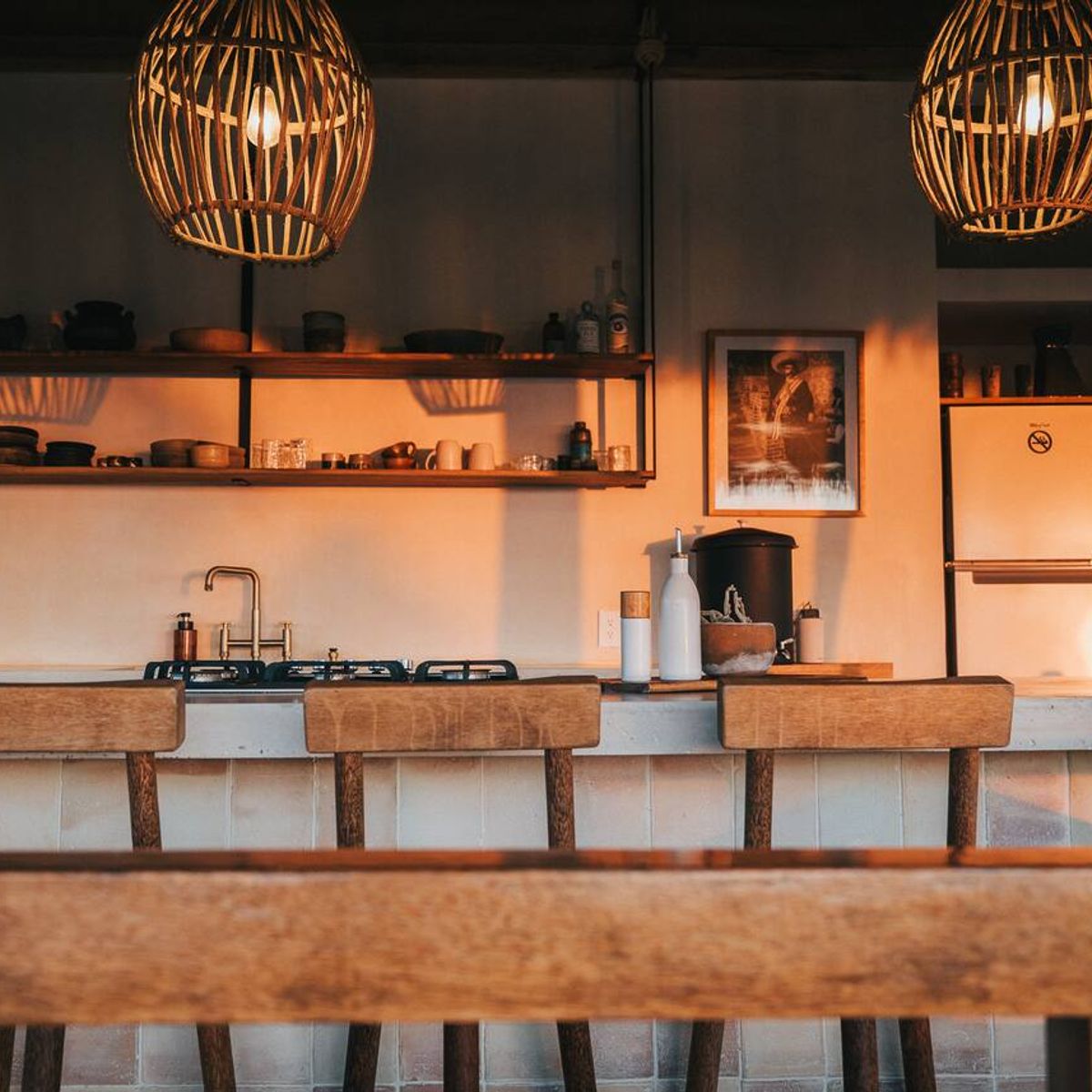 The villa features two fully equipped kitchens—one on the ground floor and one beneath the palapa—as well as two living and dining rooms, a pool, an outdoor shower, and spacious bedrooms with king beds, luxury cotton linens, and feather pillows. Every detail is designed to create a magical and restorative atmosphere.