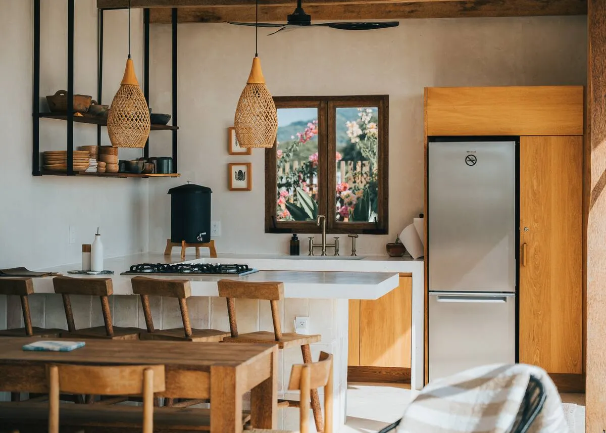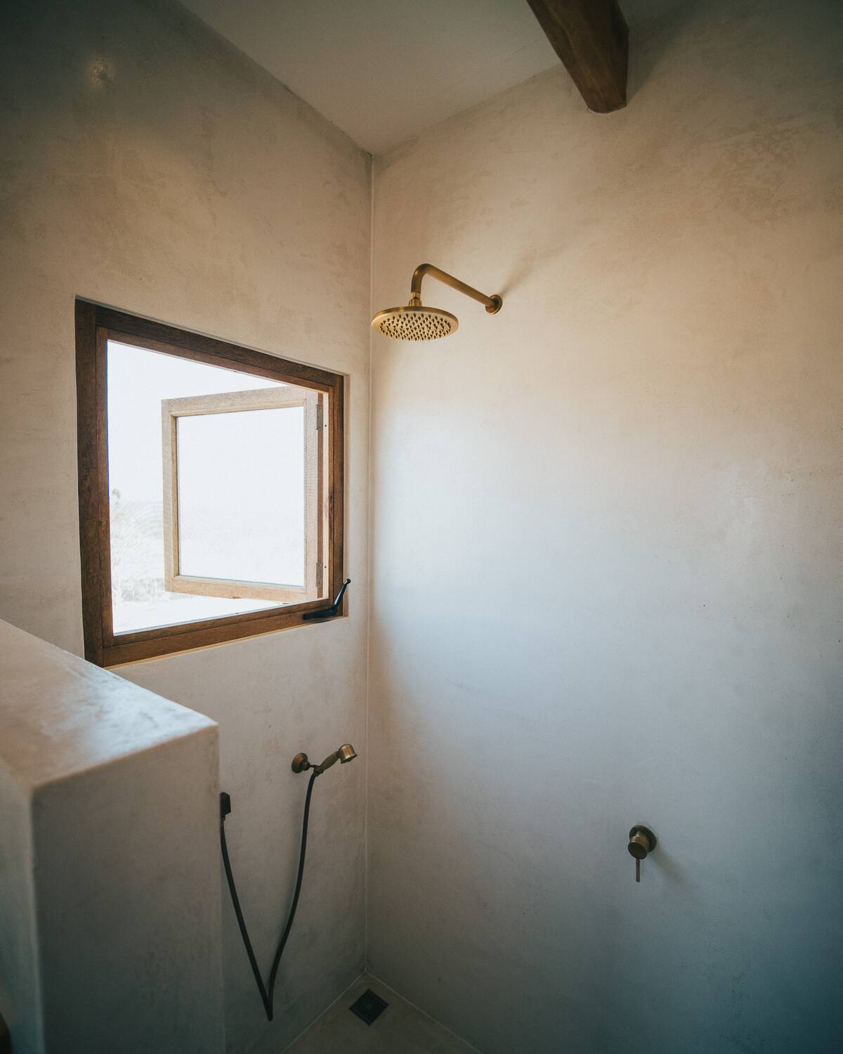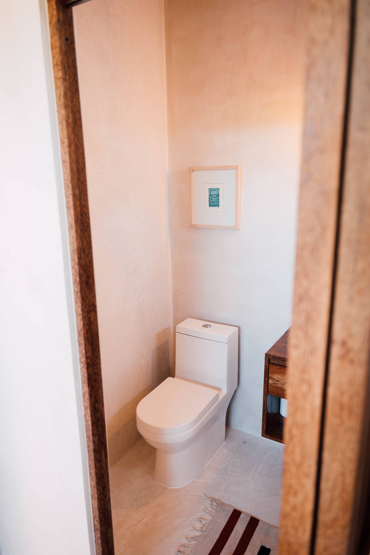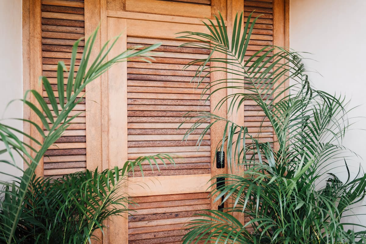 The open spaces are appointed with handcrafted wood furniture and ambient lighting, while natural breezes cool the palapa and bring relief from warm, humid days. Bedrooms are bright and comfortable, with screened windows and fans allowing guests to rest in fresh air. Air conditioning is available but operates on solar power, and therefore cannot run overnight. The villa’s thoughtful design and insulation ensure comfortable sleeping conditions through natural ventilation.