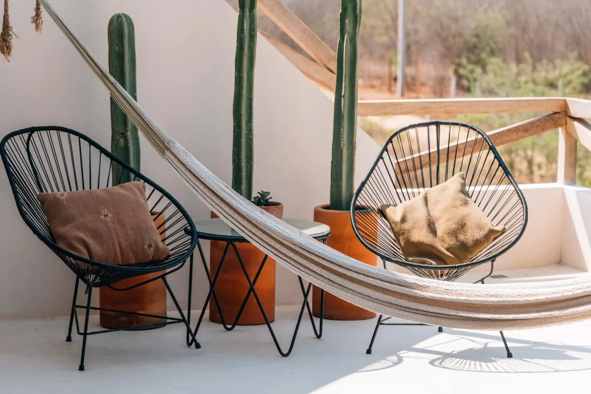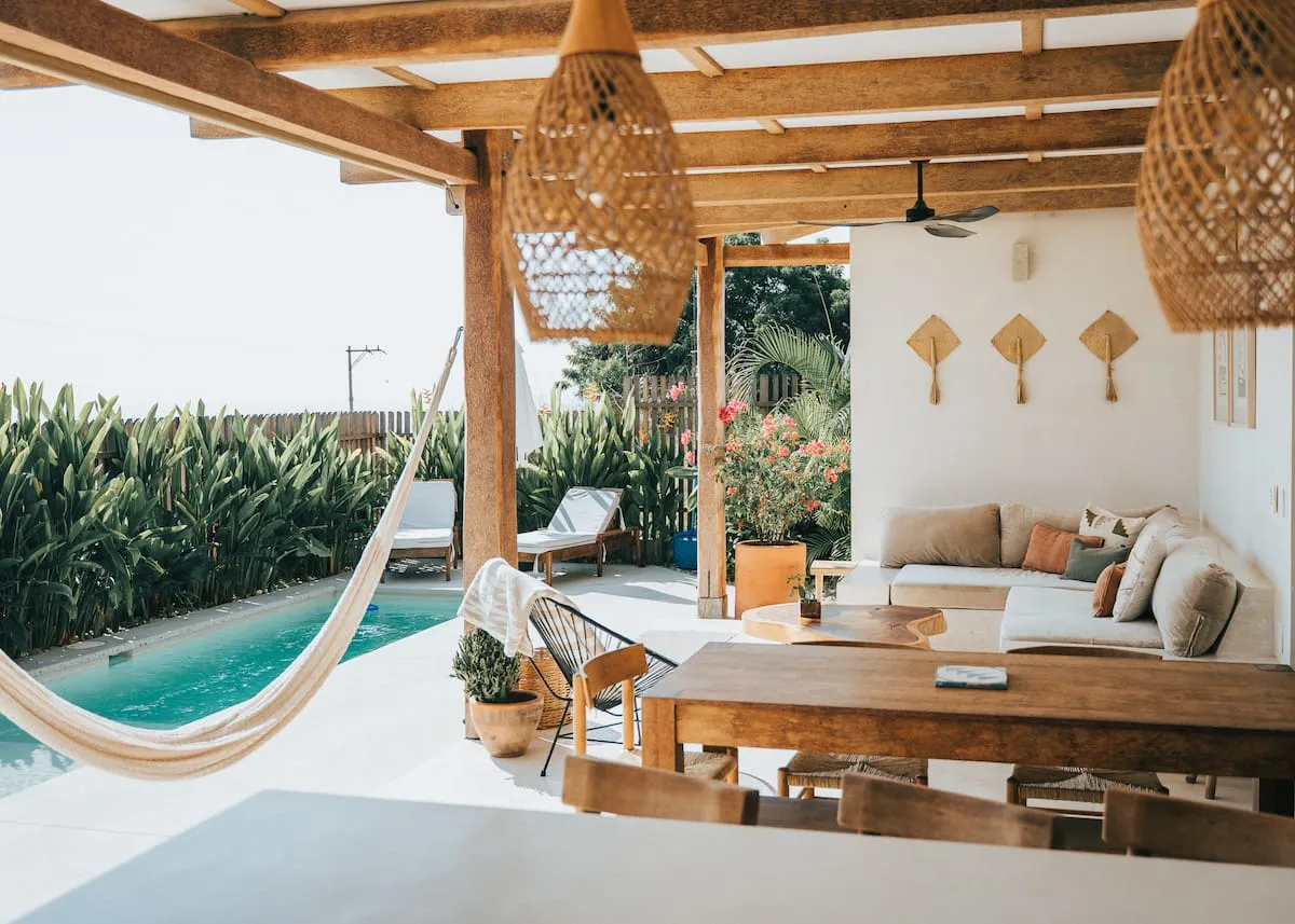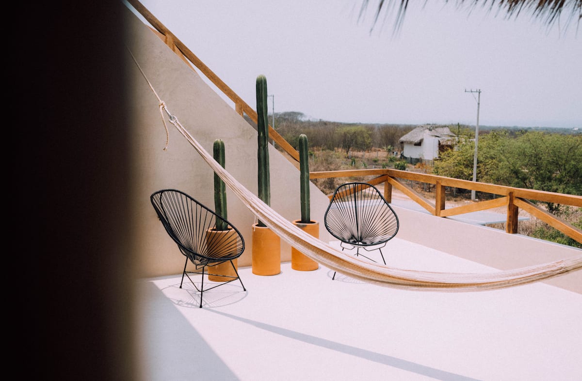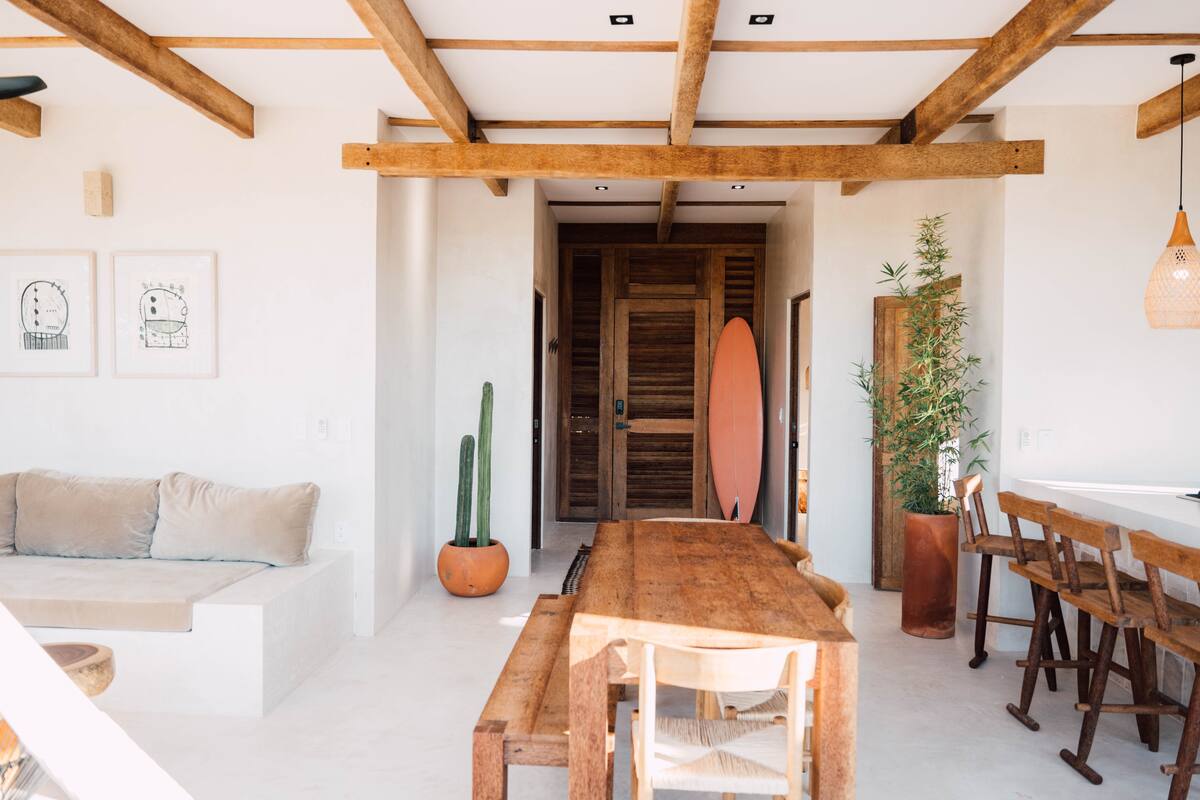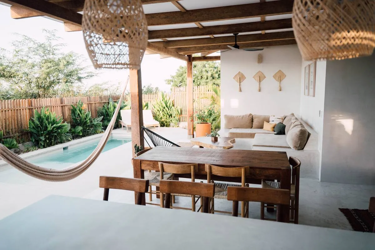Guests can wake to birdsong and sweeping ocean vistas, relax in hammocks with a cocktail, watch sunsets from beneath the palapa, or enjoy poolside loungers under the sun. With reliable Starlink internet, Casa Nuez also provides an ideal setting for remote work.