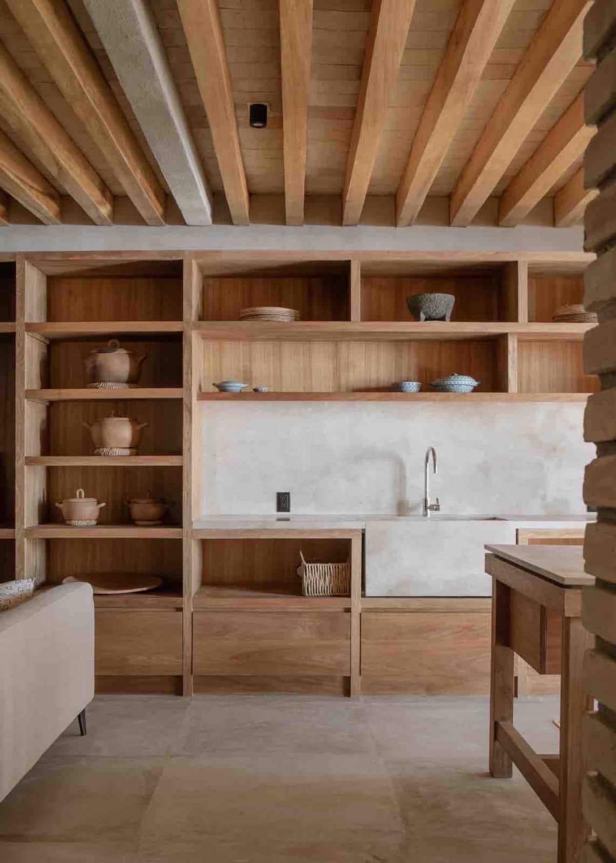 The interior design is modern Mexican, featuring efficient bioclimatic cross-ventilation. For additional comfort, air conditioning is available in the bedrooms, kitchen, and living room. The pool has three sections: a splash pool, a deep end, and a shallow area where you can stand. Pool heating is available at an extra cost
