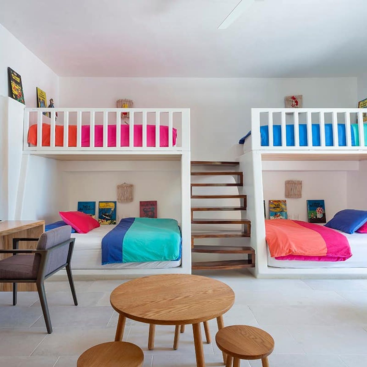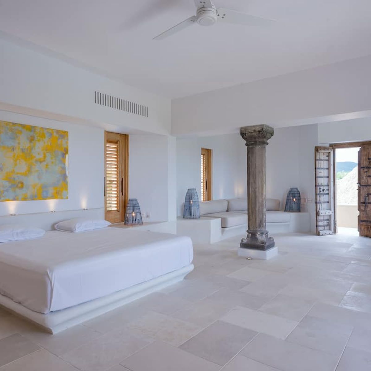 Six bedrooms offer luxury, comfort, and uninterrupted views of Costa Careyes and the ocean. The bunk bedroom is sure to be a hit with children! Each bedroom has a modern and spacious bathroom with a rain shower. All bedrooms are minimalistic to create a serene and relaxing atmosphere.