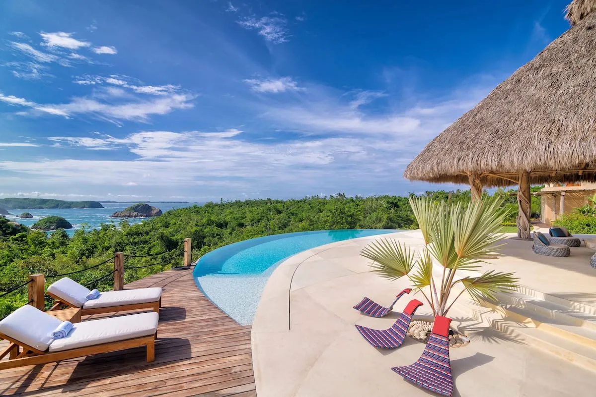 Six bedrooms offer luxury, comfort, and uninterrupted views of Costa Careyes and the ocean. The bunk bedroom is sure to be a hit with children! Each bedroom has a modern and spacious bathroom with a rain shower. All bedrooms are minimalistic to create a serene and relaxing atmosphere.