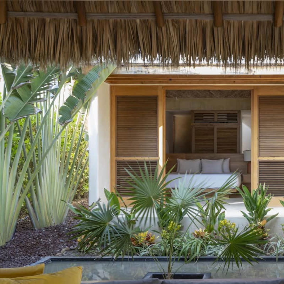 • Lush garden with hammocks
