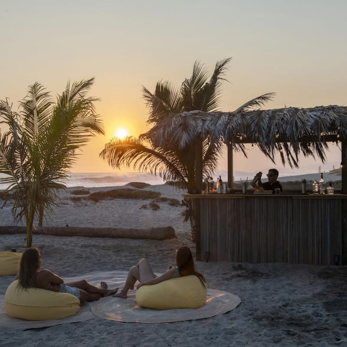 • Beach Bar with delicious cocktails, comfy puffs, and umbrellas