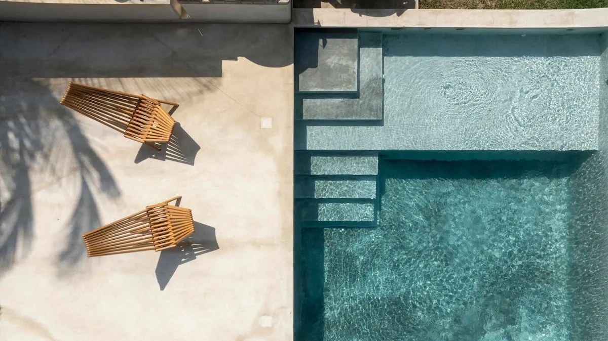 • Spacious pool deck with a pizza oven