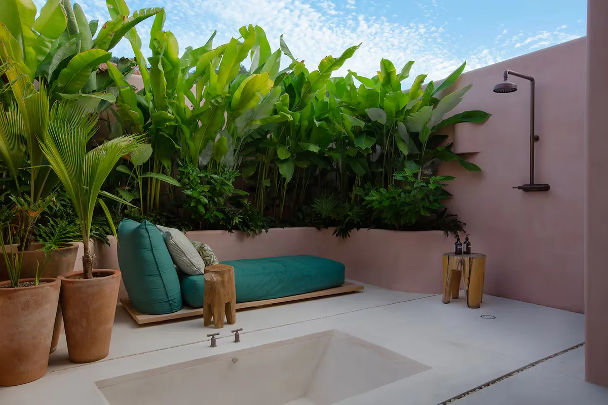 While no two rooms are the same, they all offer something special. With outdoor soaking tubs, private gardens, ensuite bathrooms, private balconies & remarkable sunset views, every bedroom feels like the primary suite. Gracious living space allows for larger gatherings, with indoor dining for 14, and a rooftop terrace that can accommodate seated dinners for up to 40 as well as smaller cozy spaces for sneaking away including an art studio loft.