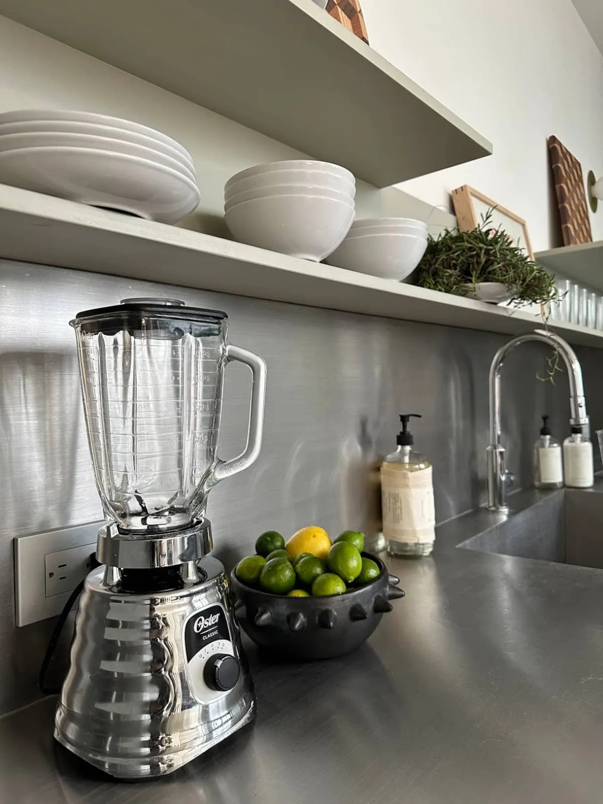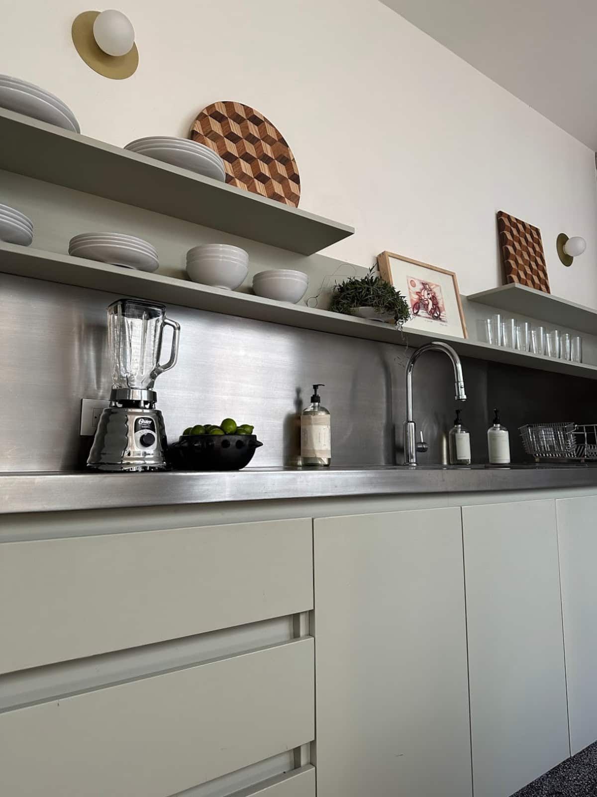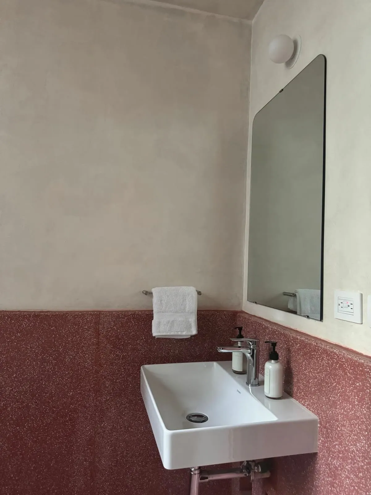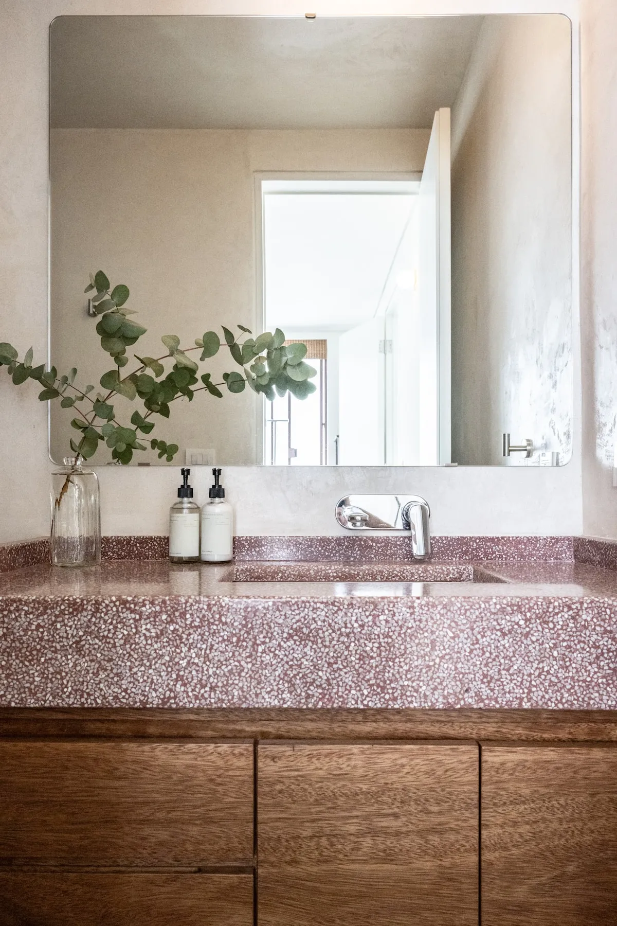 Fully equipped kitchen with all of the essentials and some extra goodies for you to enjoy! The kitchen includes a hand poured terrazzo island that would be a wonderful place to enjoy a cooking class or wind down with a beverage after a day of enjoying the city.
