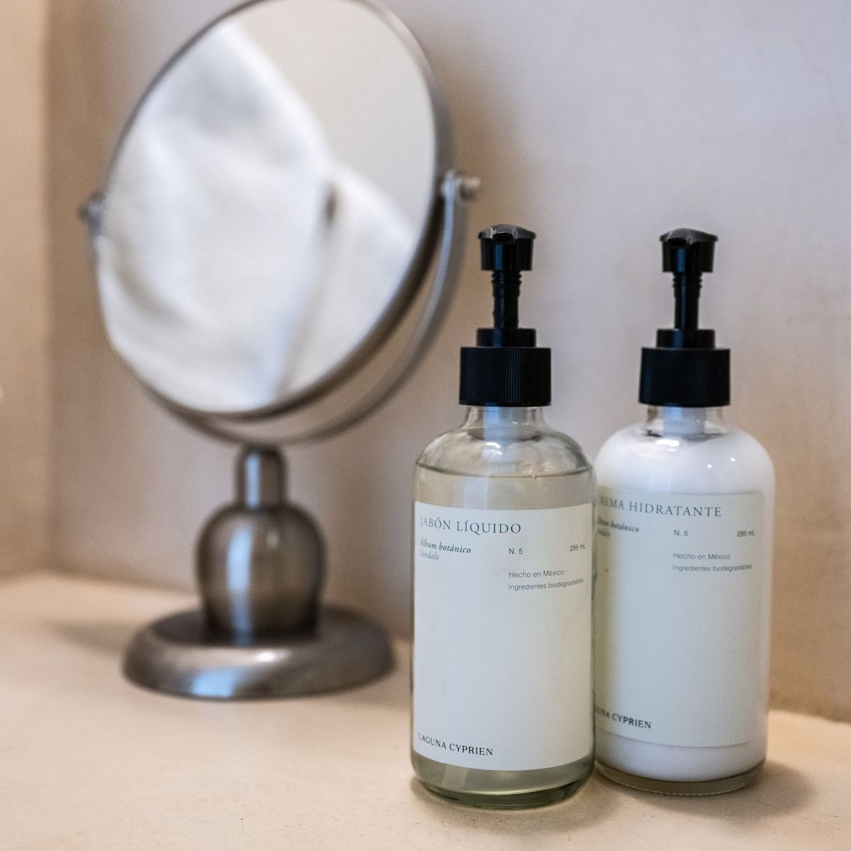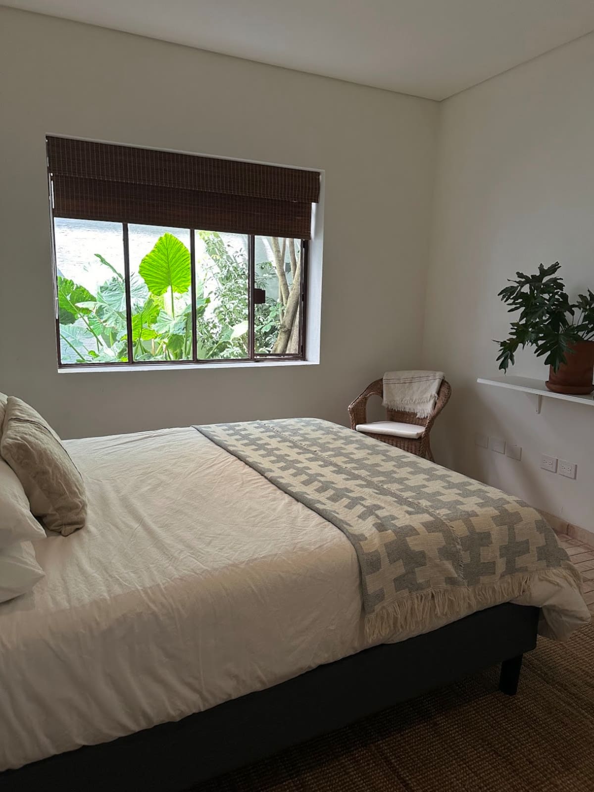 Each bedroom has a garden view and a queen bed dressed with crisp white cotton percale bedding to ensure a restful night of sleep. There is a dedicated full bathroom for each bedroom, making this the perfect place for a few friends traveling together or a family getaway. Each bathroom is stocked with locally madel Laguna Cyprien personal care products.