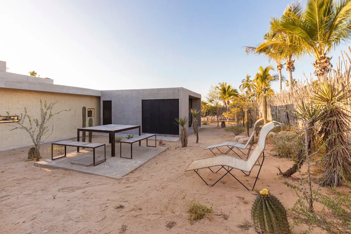 Designed by renowned Mexican architect José Gracia, this striking three-bedroom home in Todos Santos is a true architectural statement in Baja. Clean lines, raw textures, and a minimalist aesthetic blend beautifully with the desert landscape, creating a space that feels intentional, serene, and effortlessly cool.