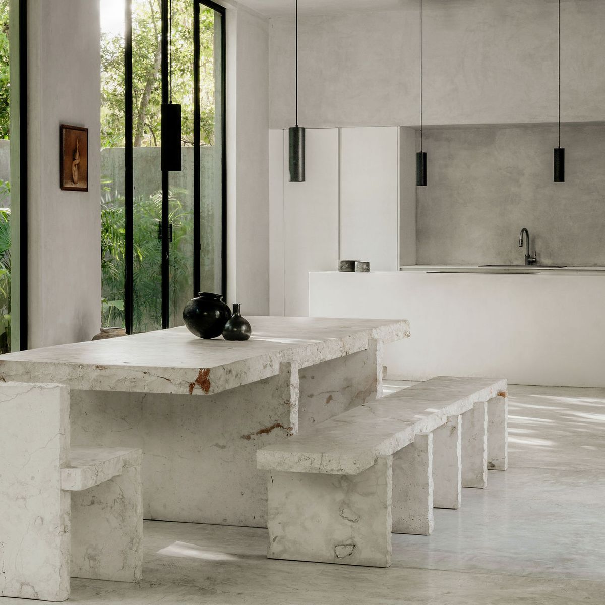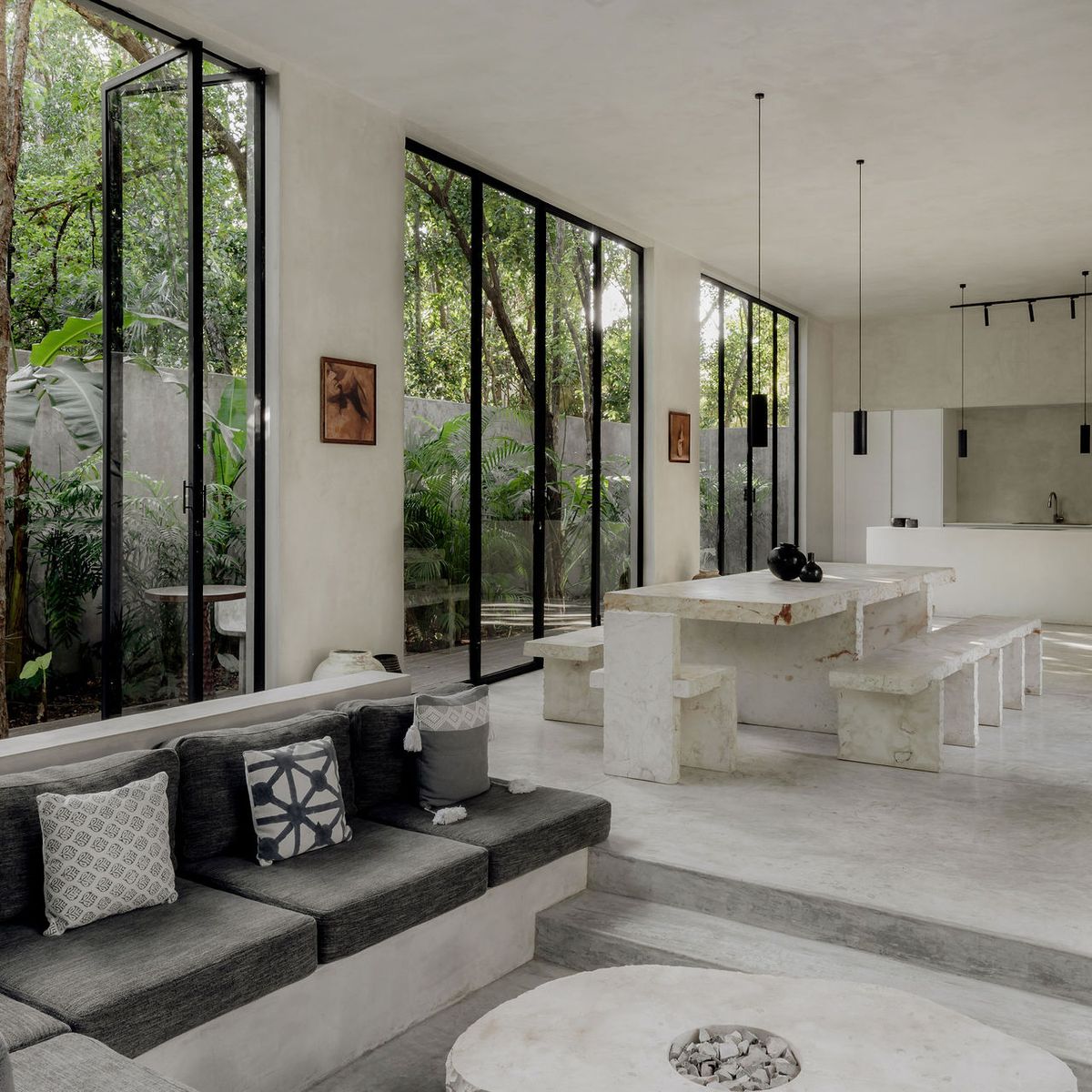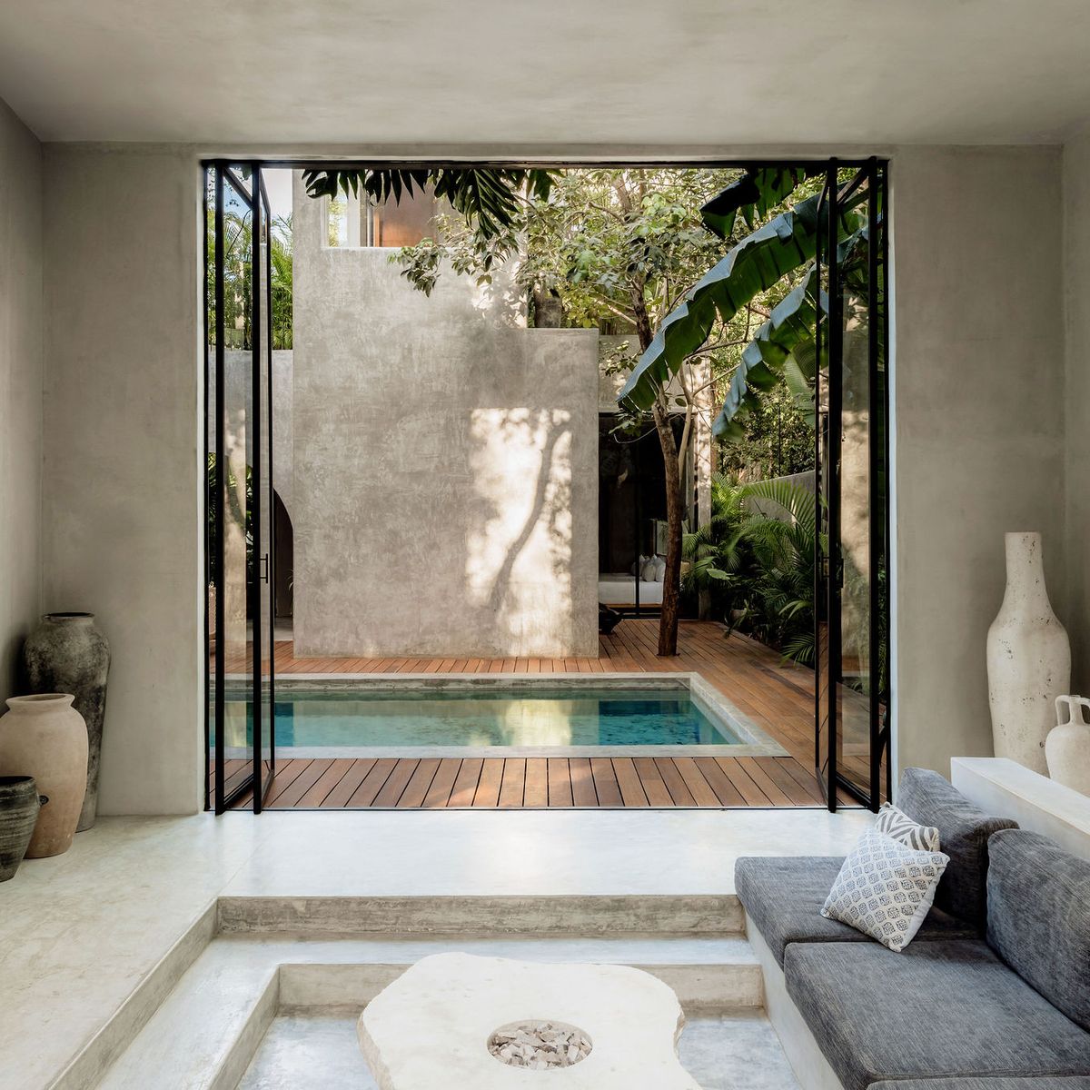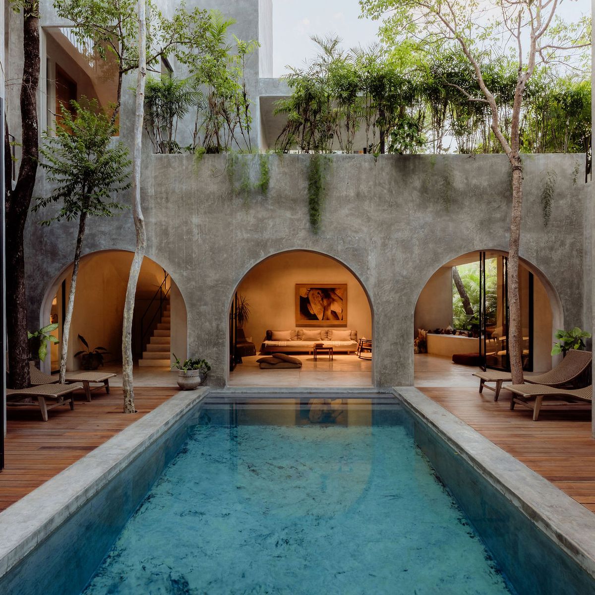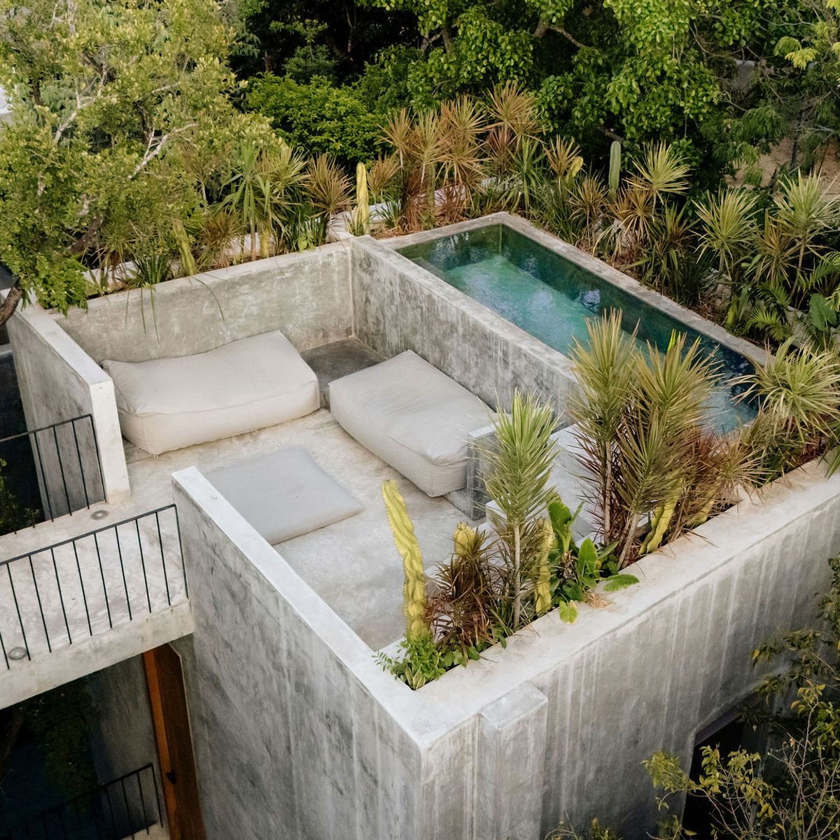 Hidden within the lush tropical paradise of Tulum, this a 6 bedroom. 7 bathroom home has space for up to 12 guests and stands as a serene architectural masterpiece