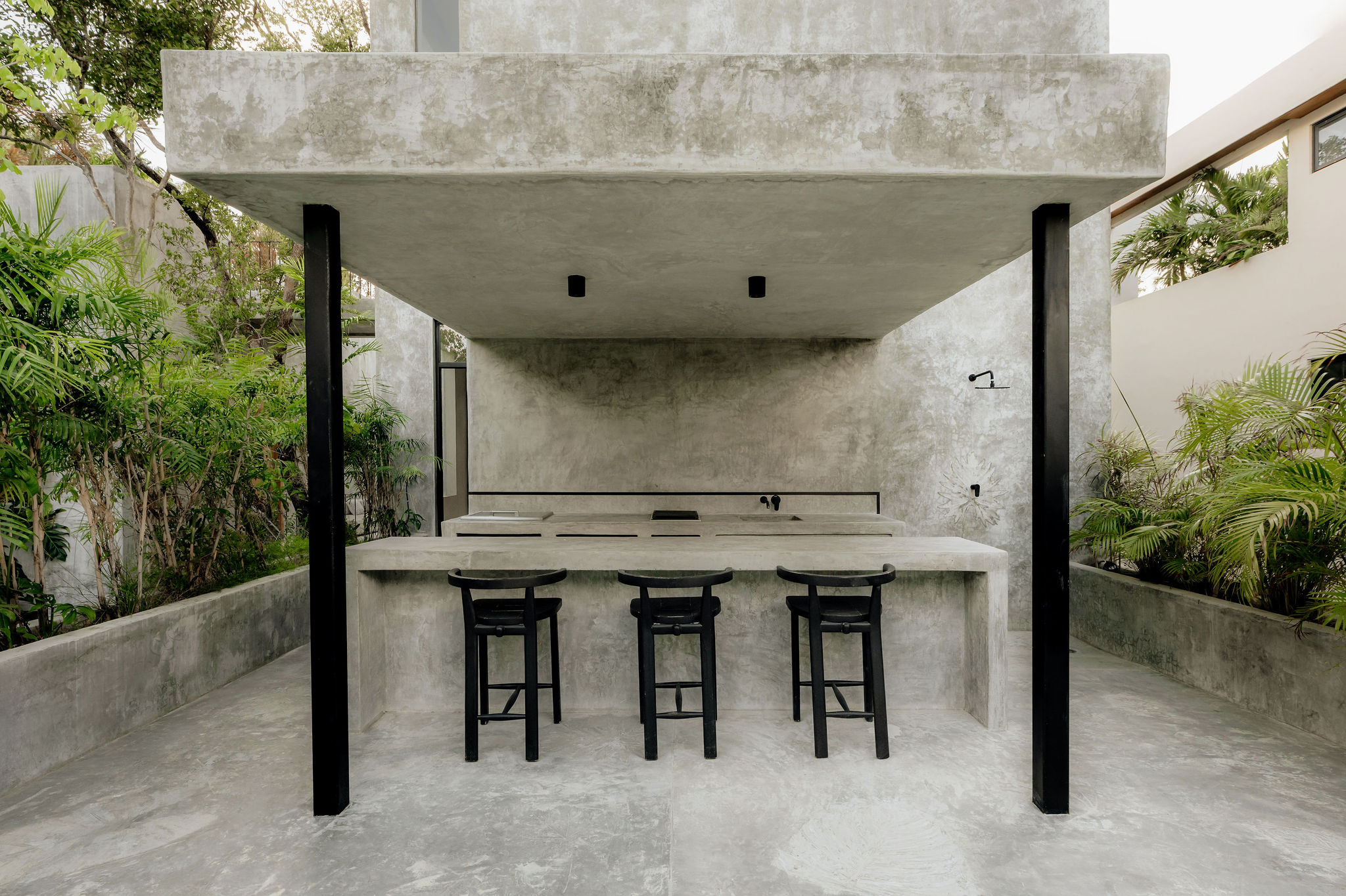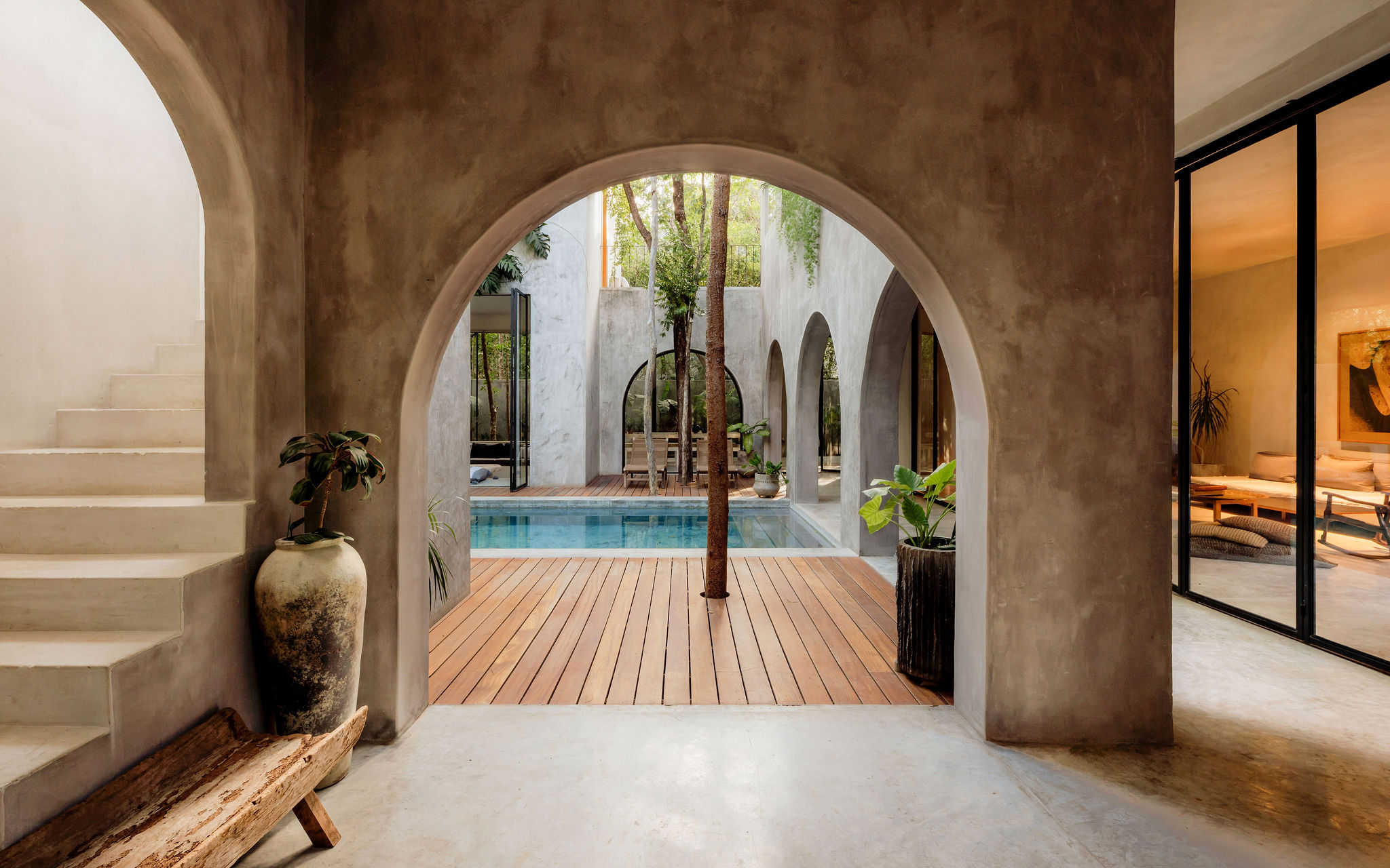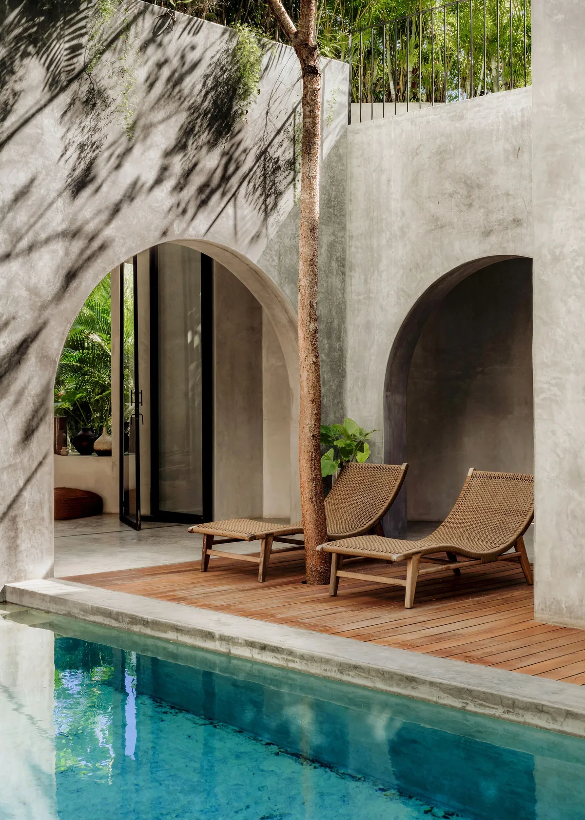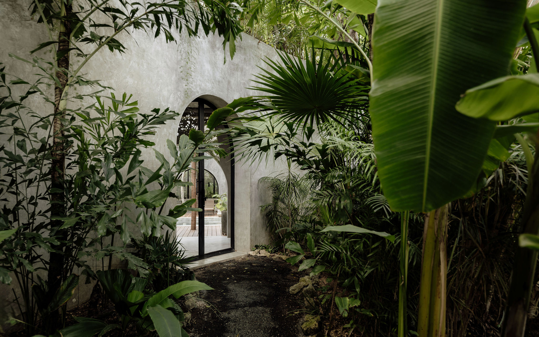 Hidden by a lush canopy of plants and swaying palms, guests at the villa are greeted by a design that effortlessly marries understated elements - graceful arches, earthy palettes, and opulent textures, all conspiring to craft an atmosphere resonating with tranquility and opulence.