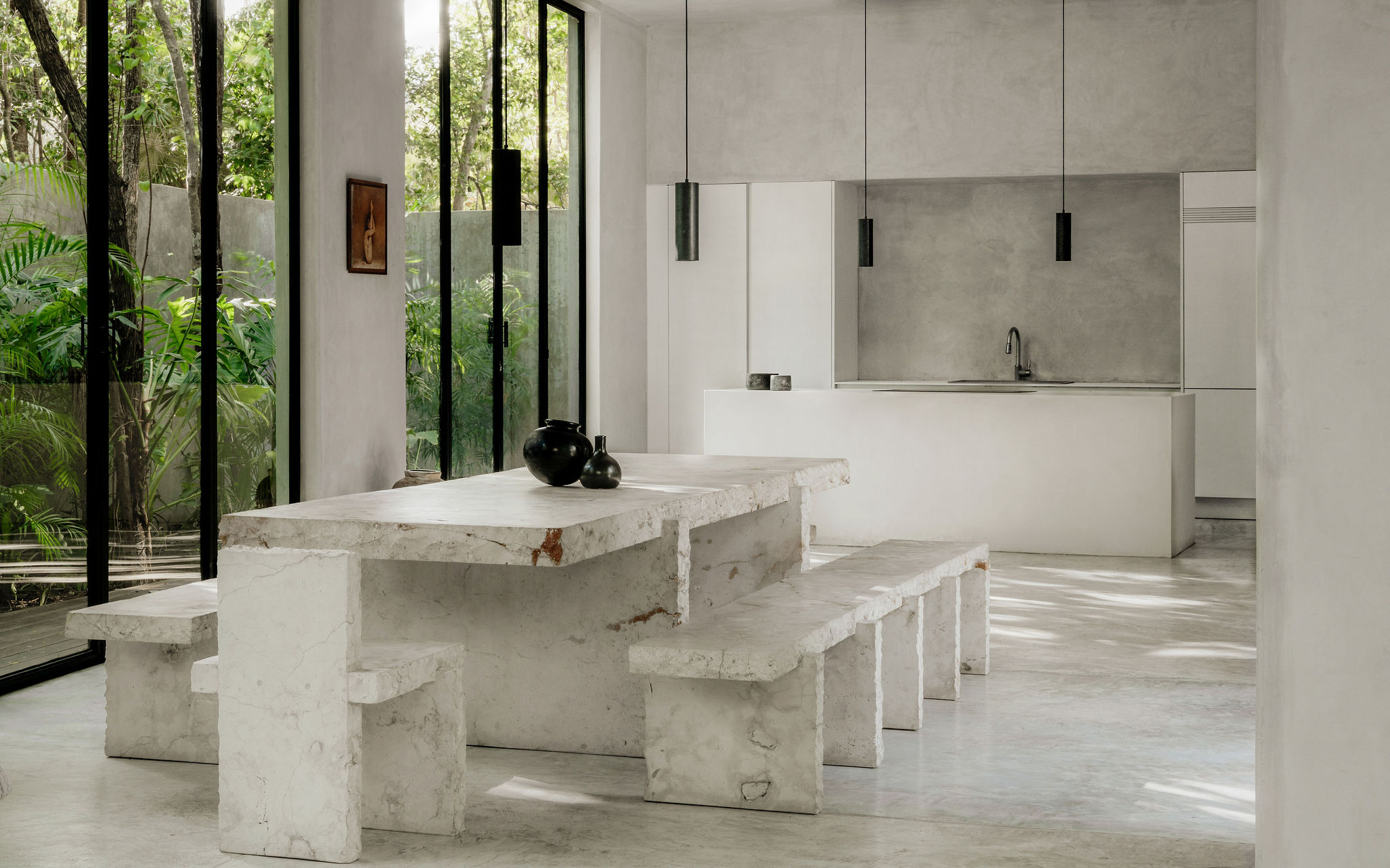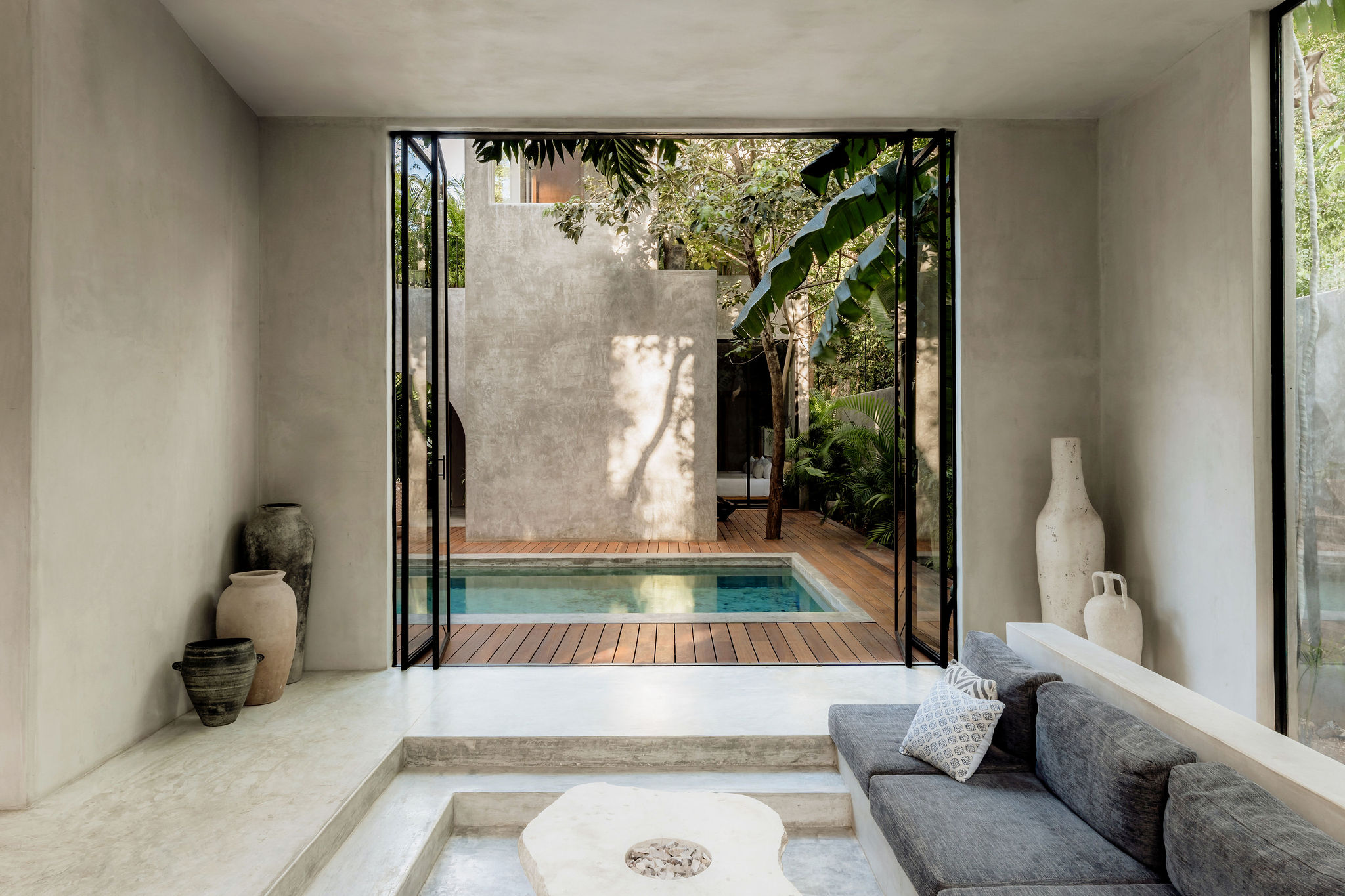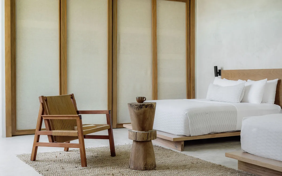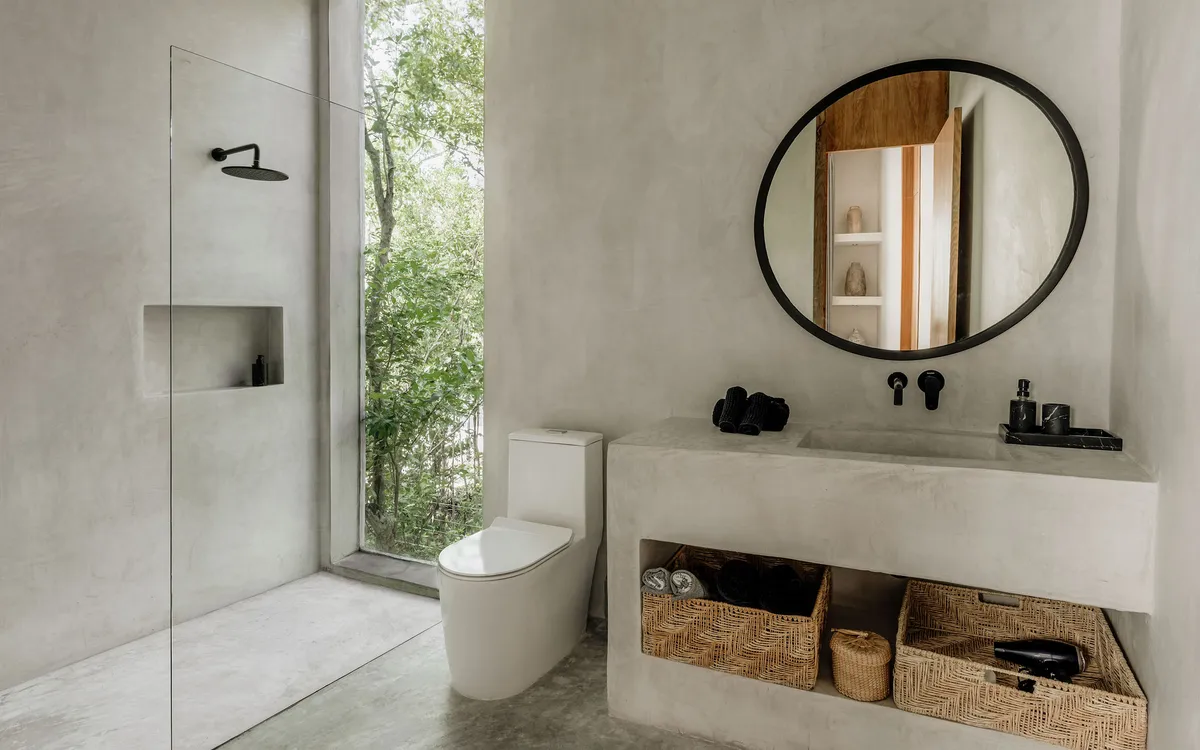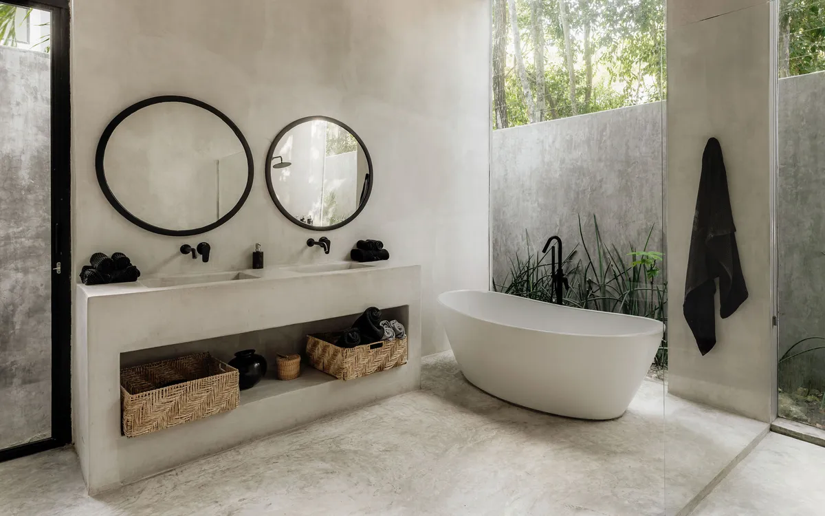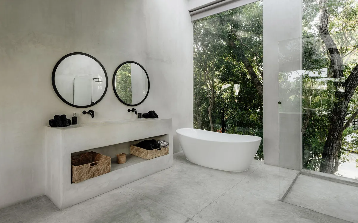 Hidden within the lush tropical paradise of Tulum, this a 6 bedroom. 7 bathroom home has space for up to 12 guests and stands as a serene architectural masterpiece