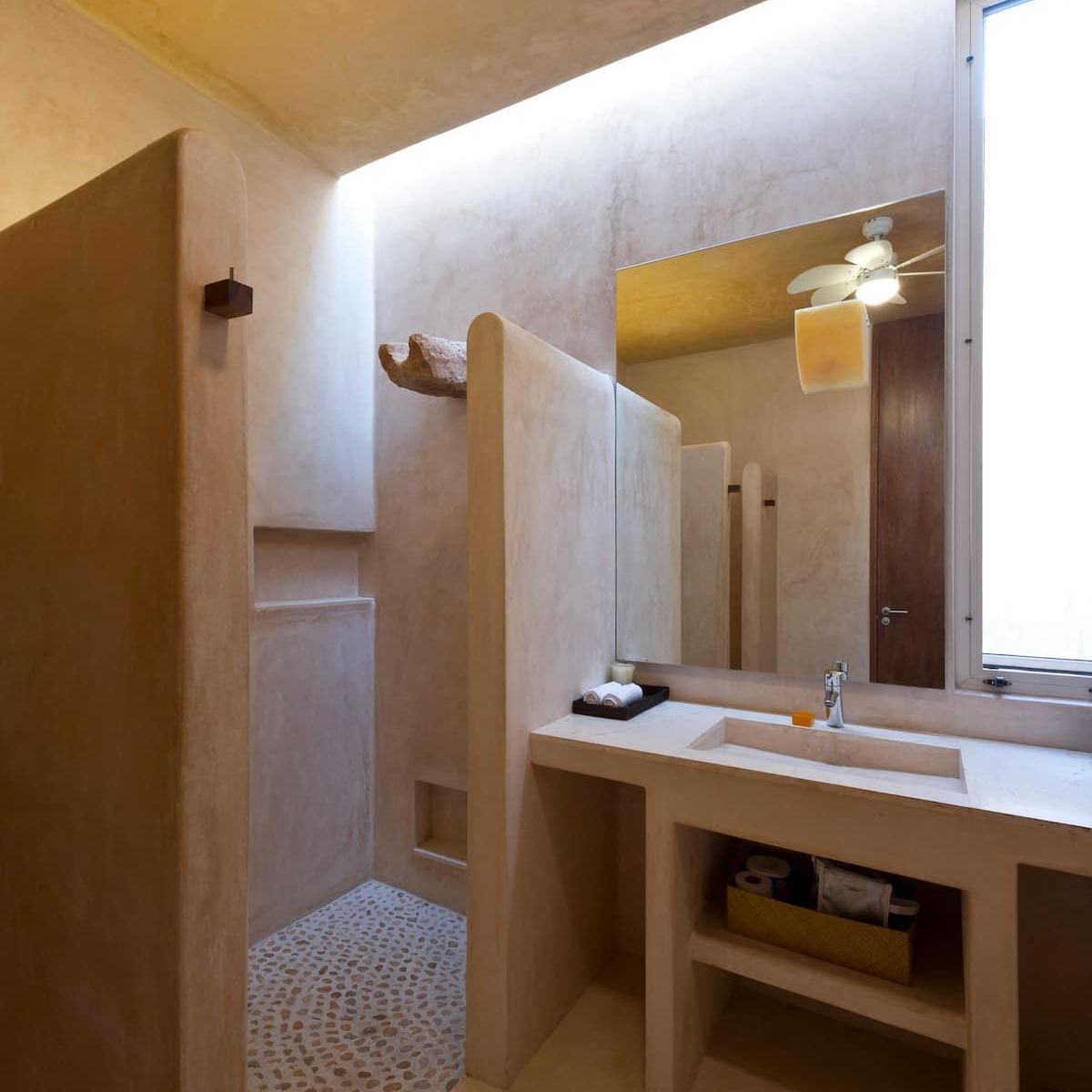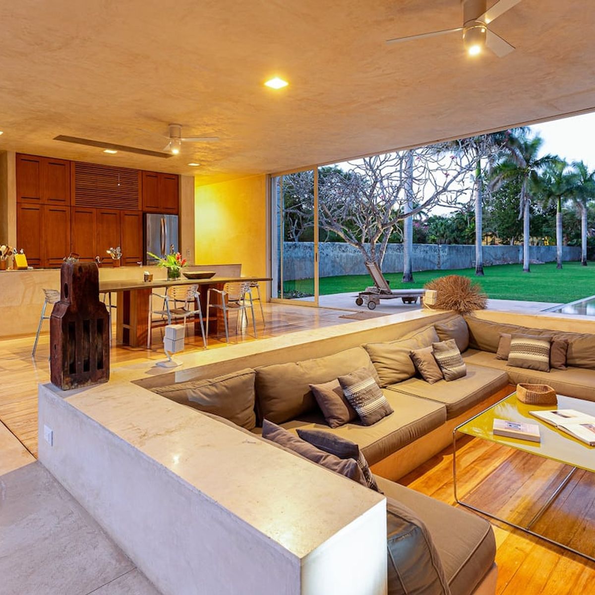 This architectural masterpiece is constructed from hardwoods, limestone, and polished plaster using the ancient Mayan technique of chukum, giving the walls a sleek, polished finish. With 10-foot ceilings and doors, the home feels expansive and airy. Custom furnishings, dramatic lighting, and meticulous design details make Casa Sisal an unparalleled modern oasis.