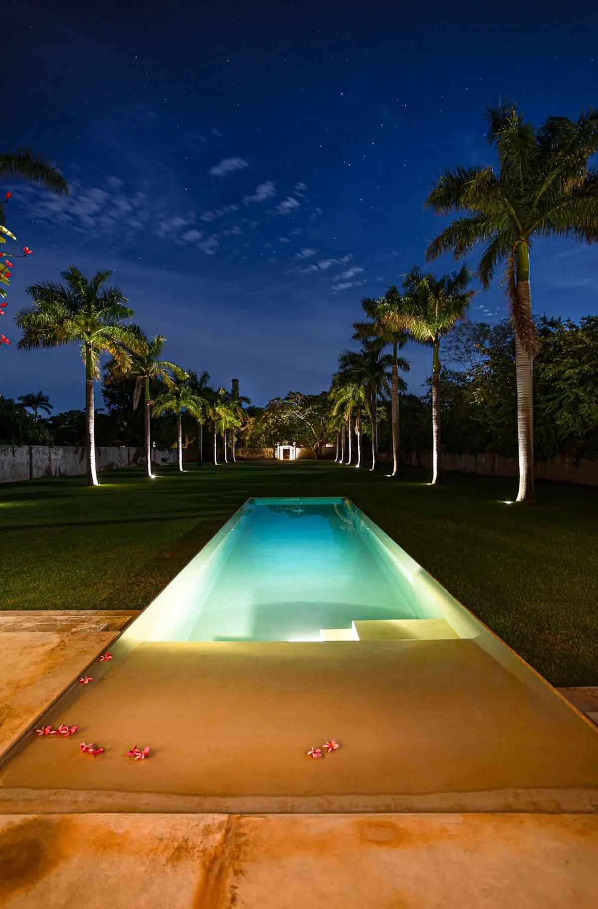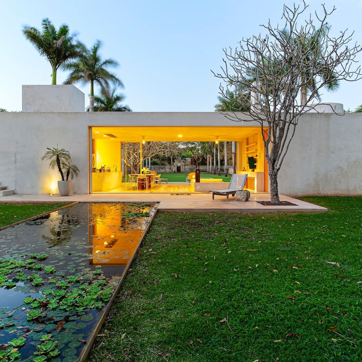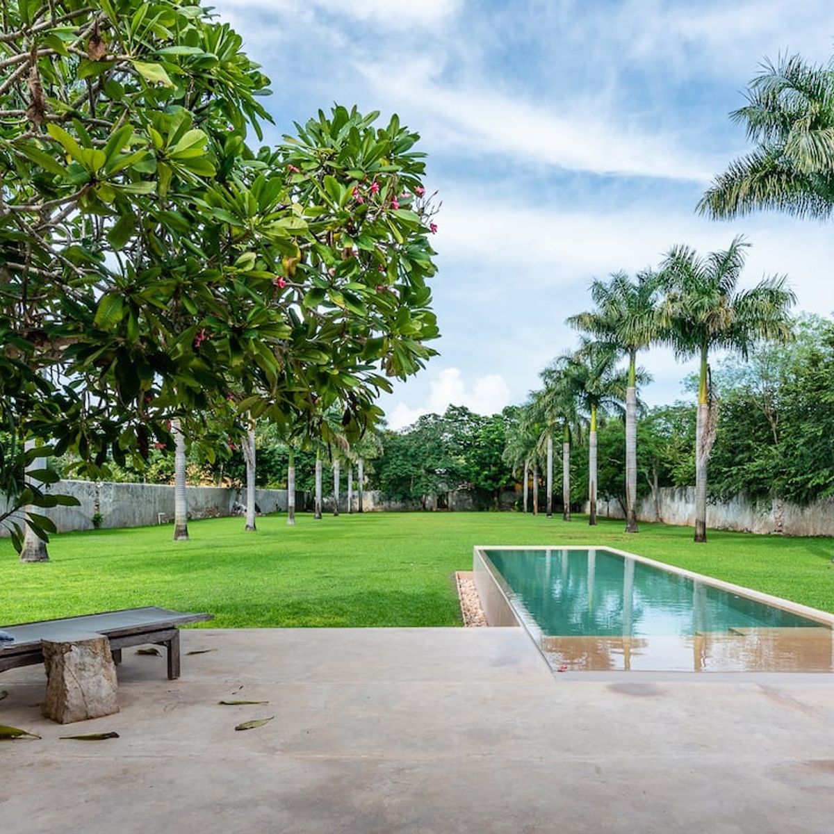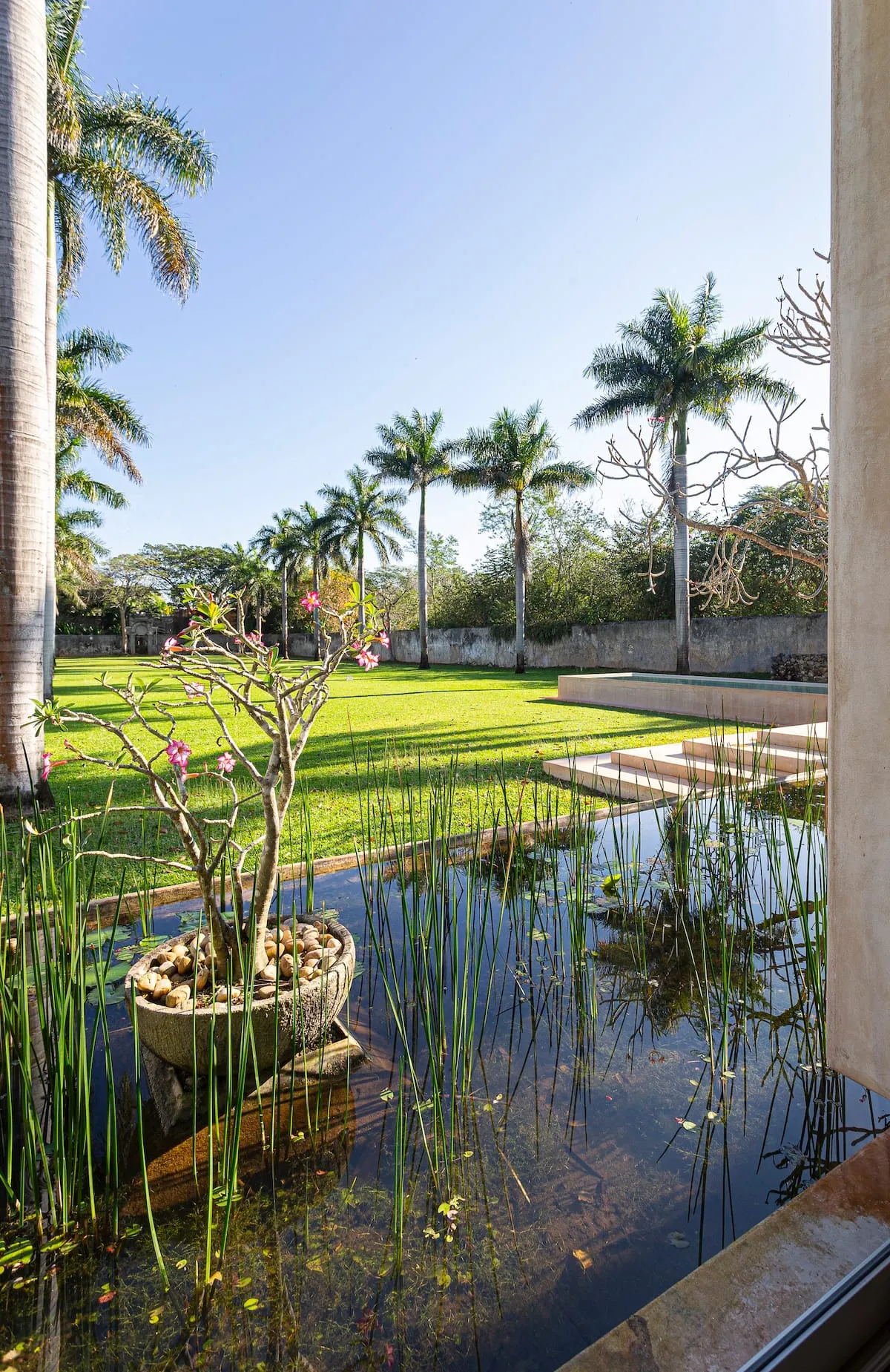 Surrounded by serene water lily reflecting ponds, Casa Sisal is a 2,000-square-foot modern retreat, set within the 2-acre henequen drying fields of Hacienda Sac Chich. Enclosed by the hacienda’s original 11-foot walls, this home offers an intimate, private sanctuary.