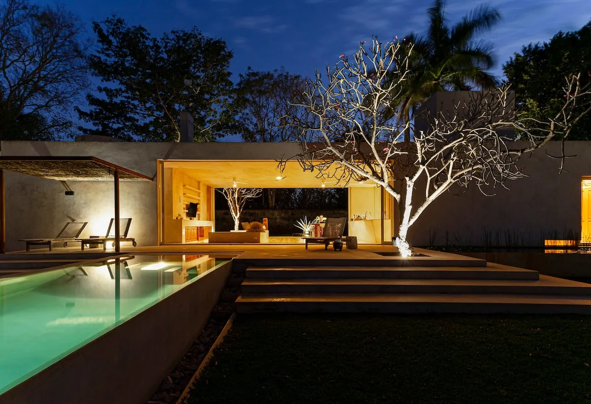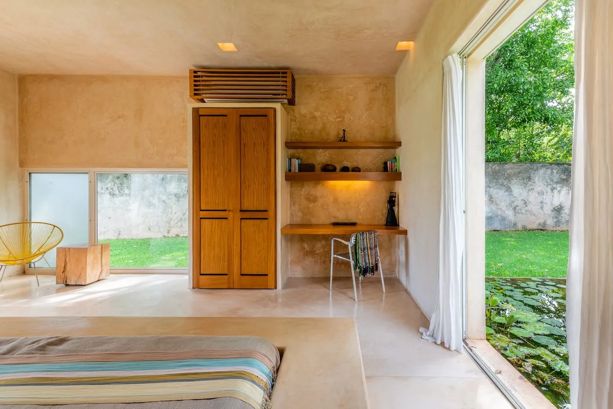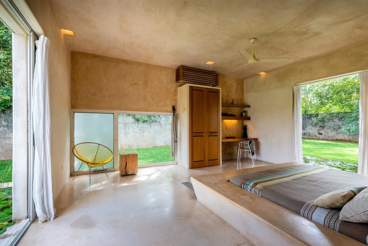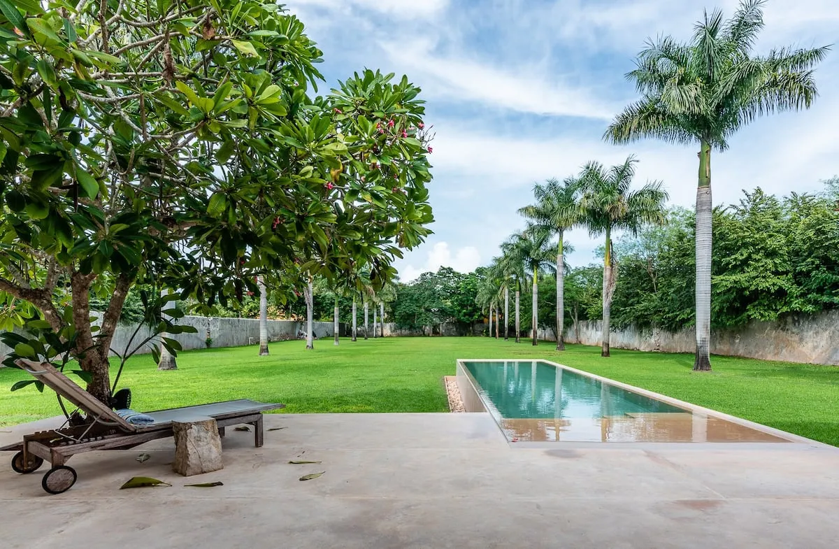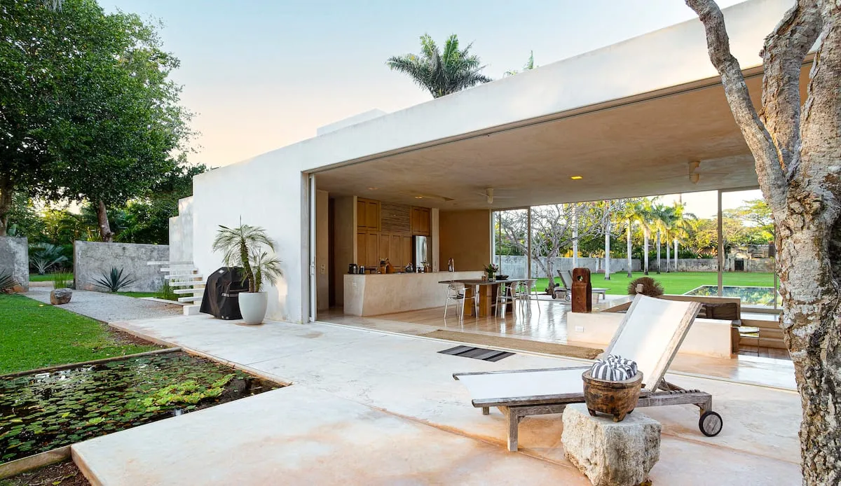 Surrounded by serene water lily reflecting ponds, Casa Sisal is a 2,000-square-foot modern retreat, set within the 2-acre henequen drying fields of Hacienda Sac Chich. Enclosed by the hacienda’s original 11-foot walls, this home offers an intimate, private sanctuary.