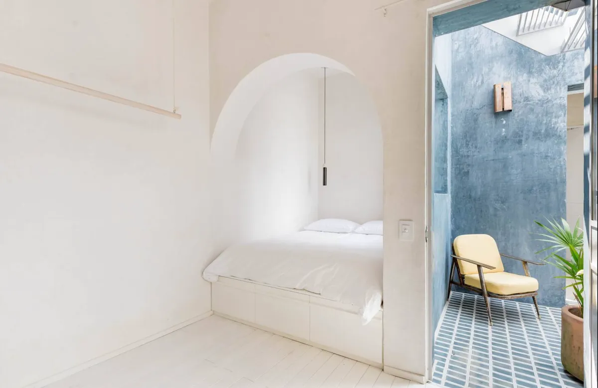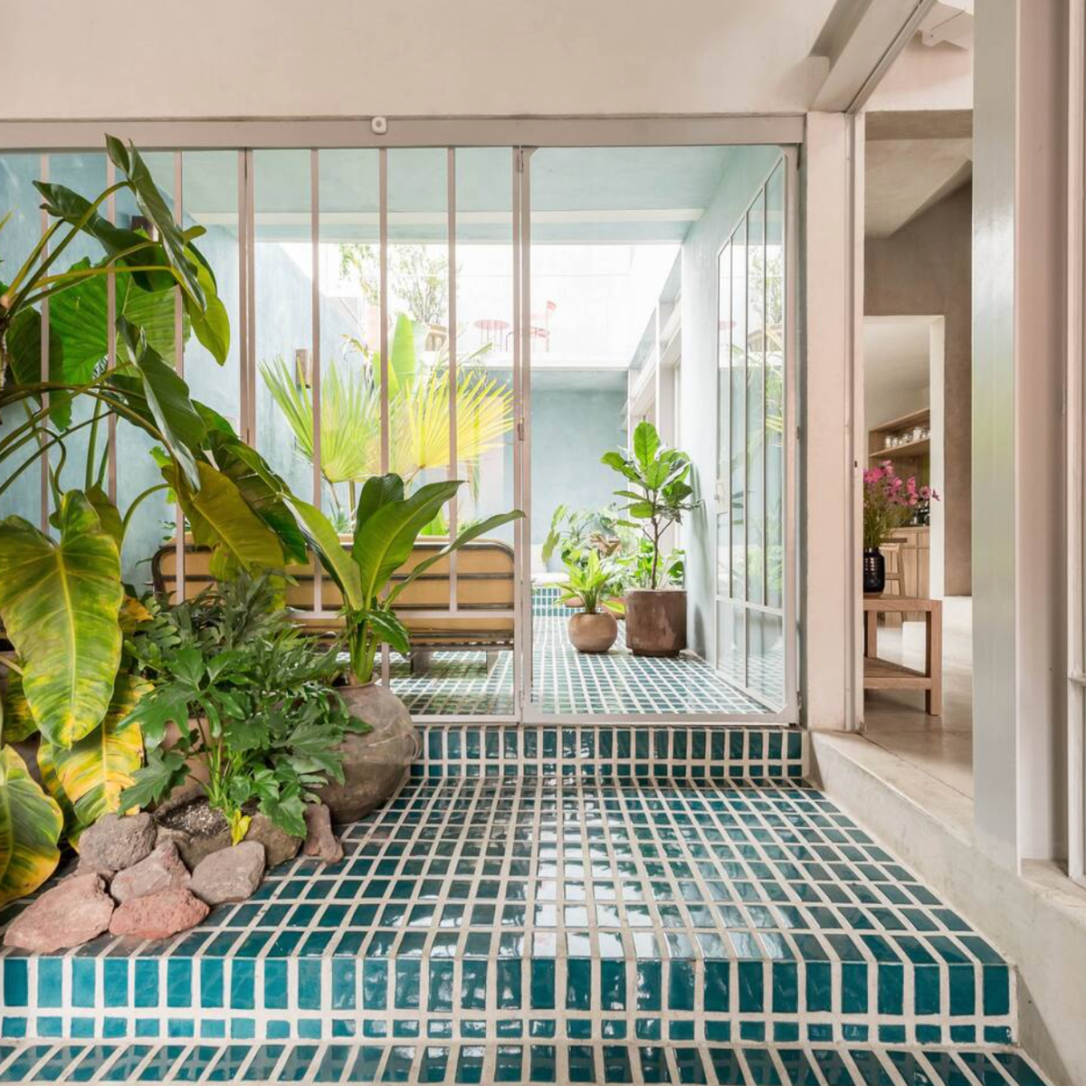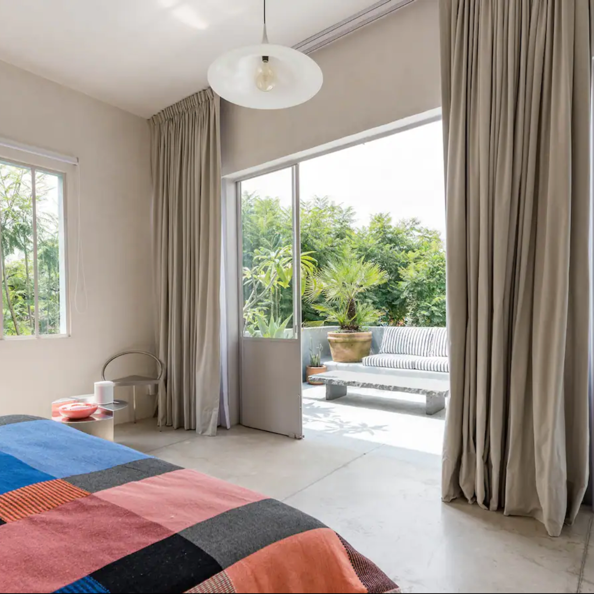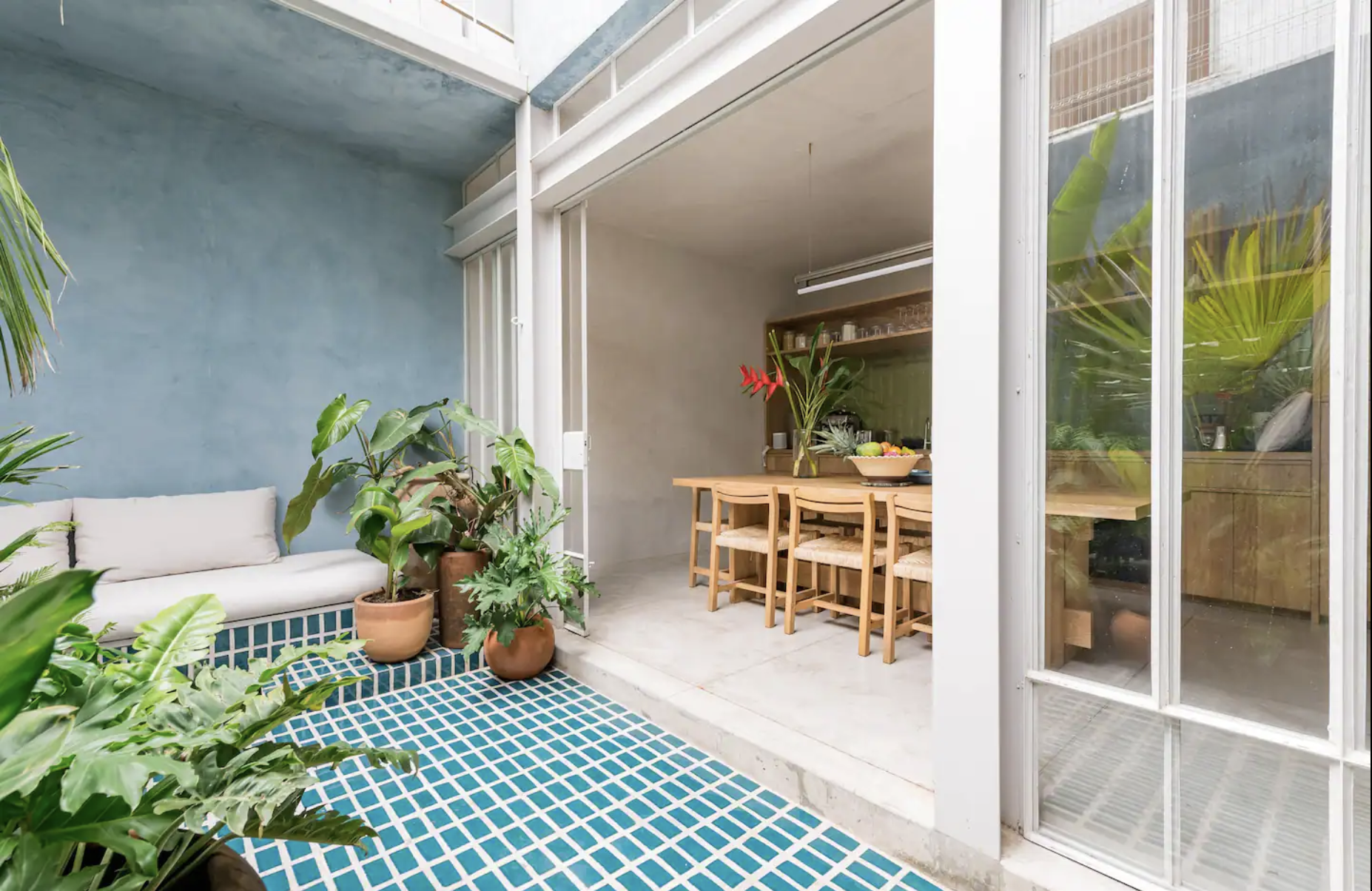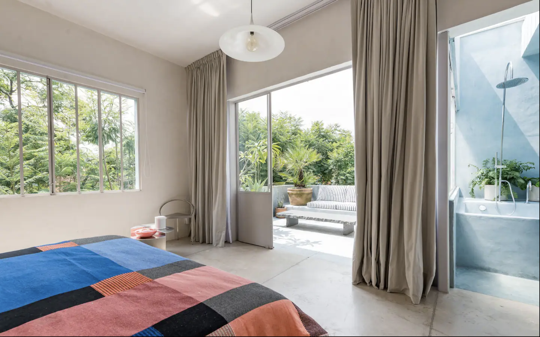 There are multiple canopies and large windows that allow all the rooms to be very bright. The colors and custom-designed furniture were carefully curated to celebrate the Mexican culture.