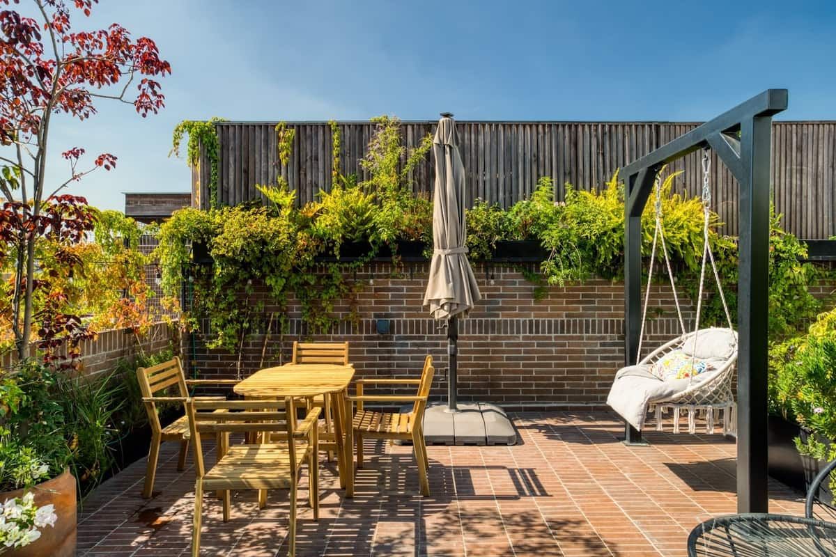But the true gem of this property is the spectacular roof garden. This private oasis offers panoramic views of the city skyline, complete with comfortable seating, lush greenery, and ambient lighting. It’s the perfect spot for morning coffee, sunset cocktails, or simply unwinding after a day of exploring.