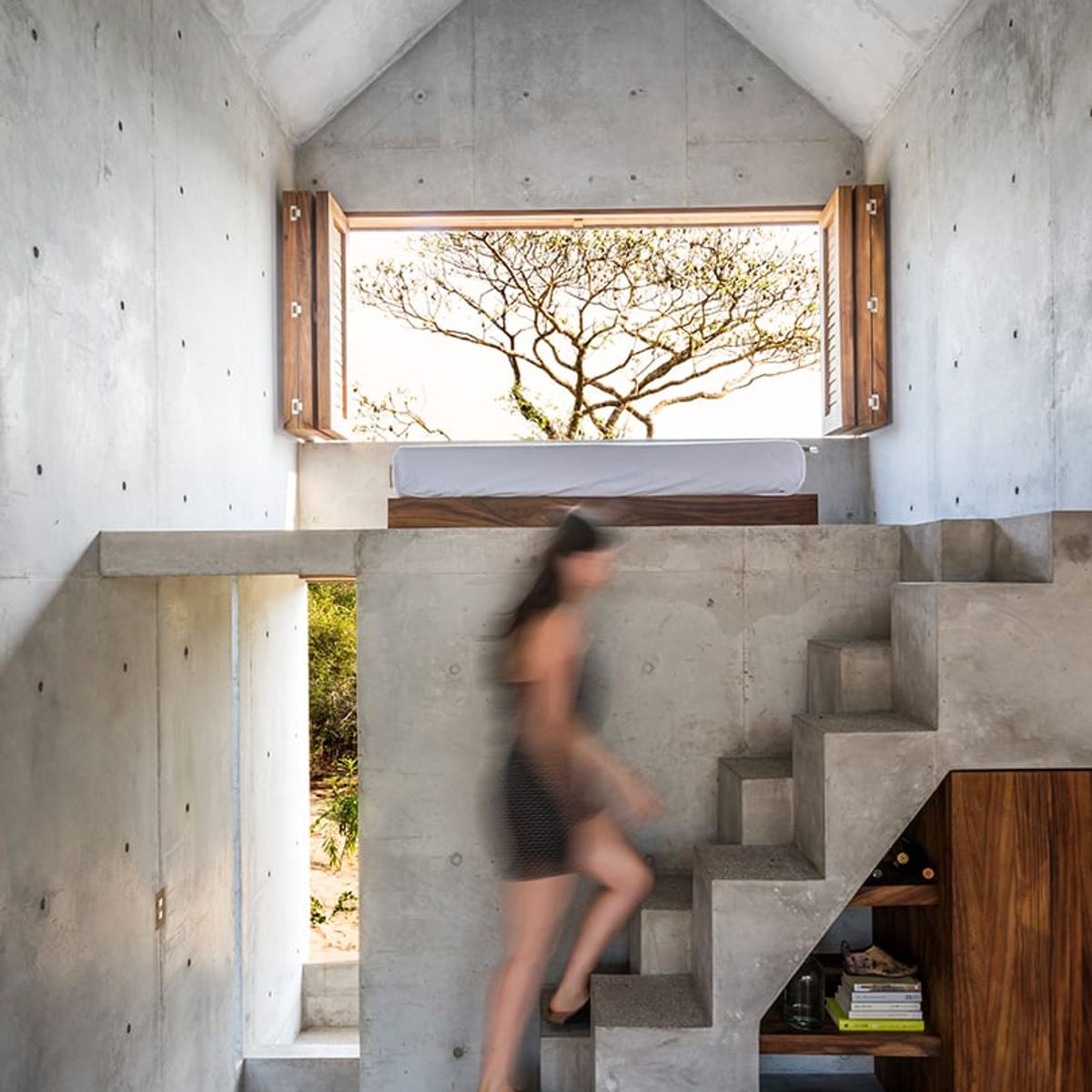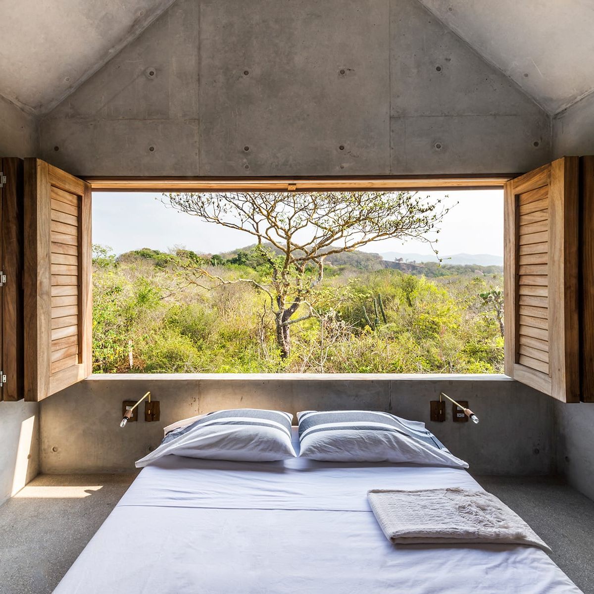 Casa Tiny's minimalist design and raw materials encourage introspection and reflection, inviting a moment for perfect tranquility. While its sturdy concrete walls are a far cry from Thoreau's humble forest abode, its unadorned nature sits in perfect harmony with the surrounding jungle and ocean breeze.