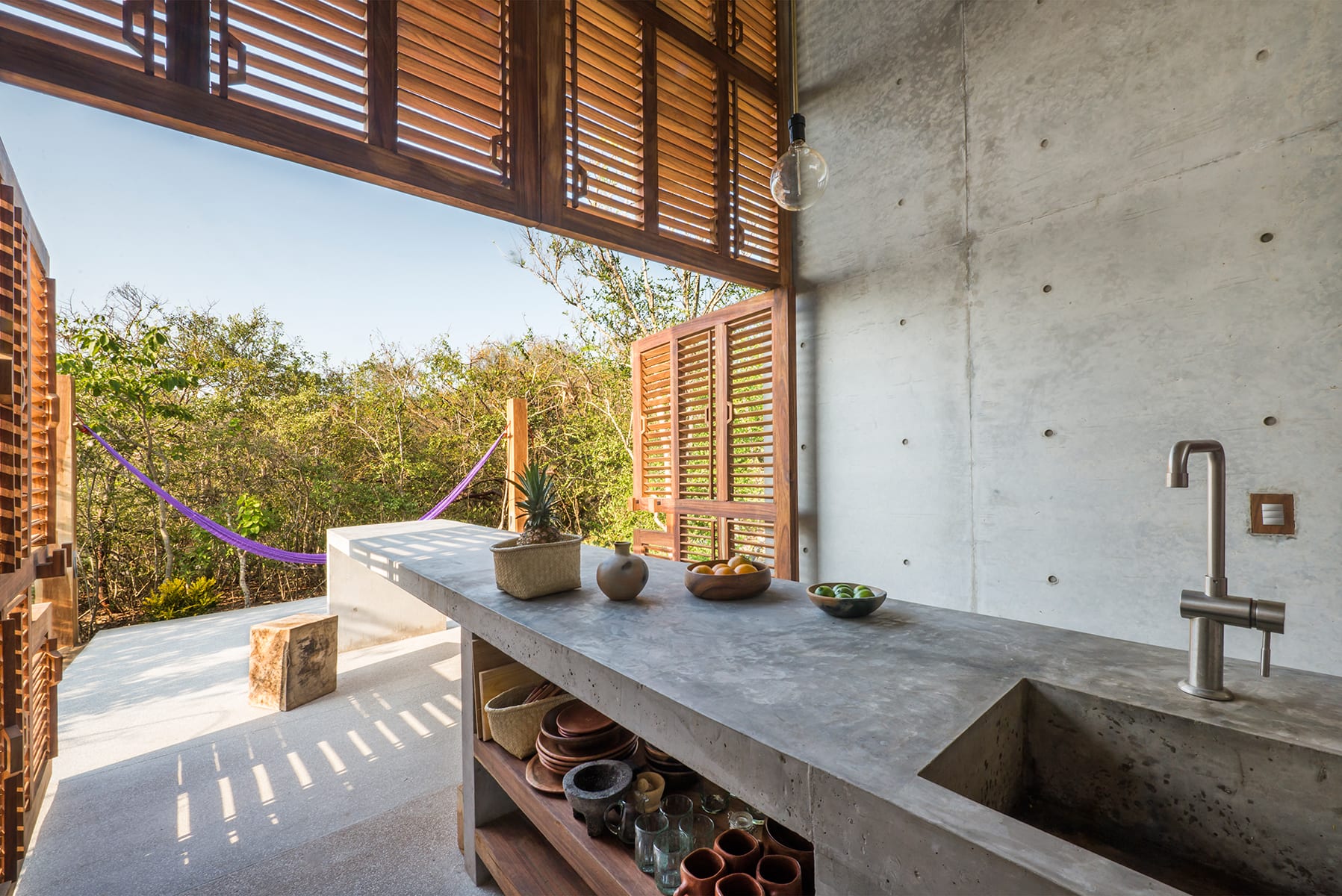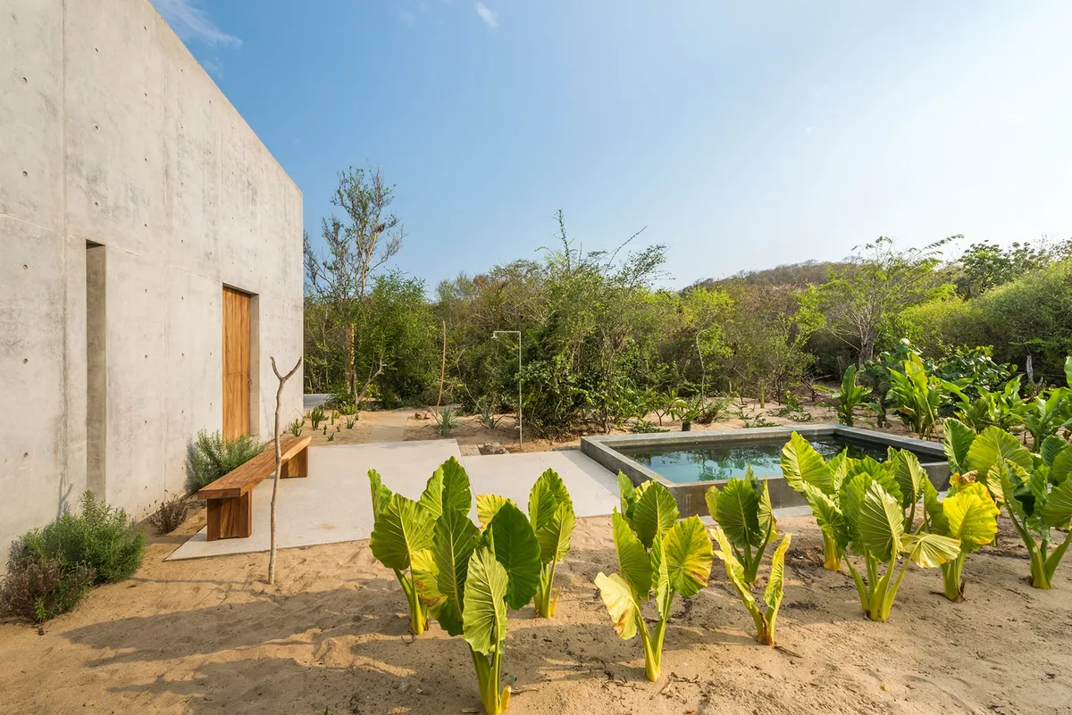 Casa Tiny's minimalist design and raw materials encourage introspection and reflection, inviting a moment for perfect tranquility. While its sturdy concrete walls are a far cry from Thoreau's humble forest abode, its unadorned nature sits in perfect harmony with the surrounding jungle and ocean breeze.