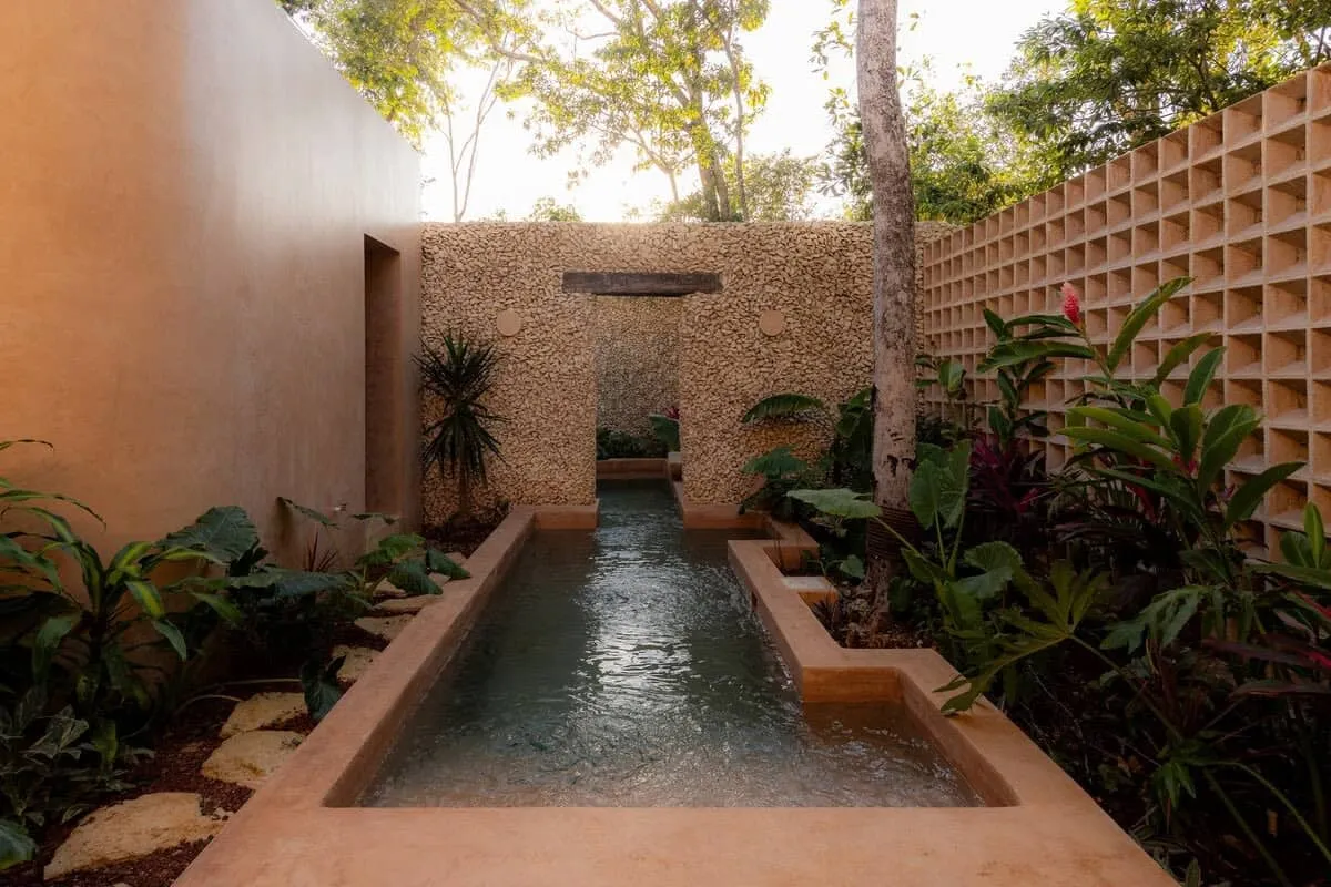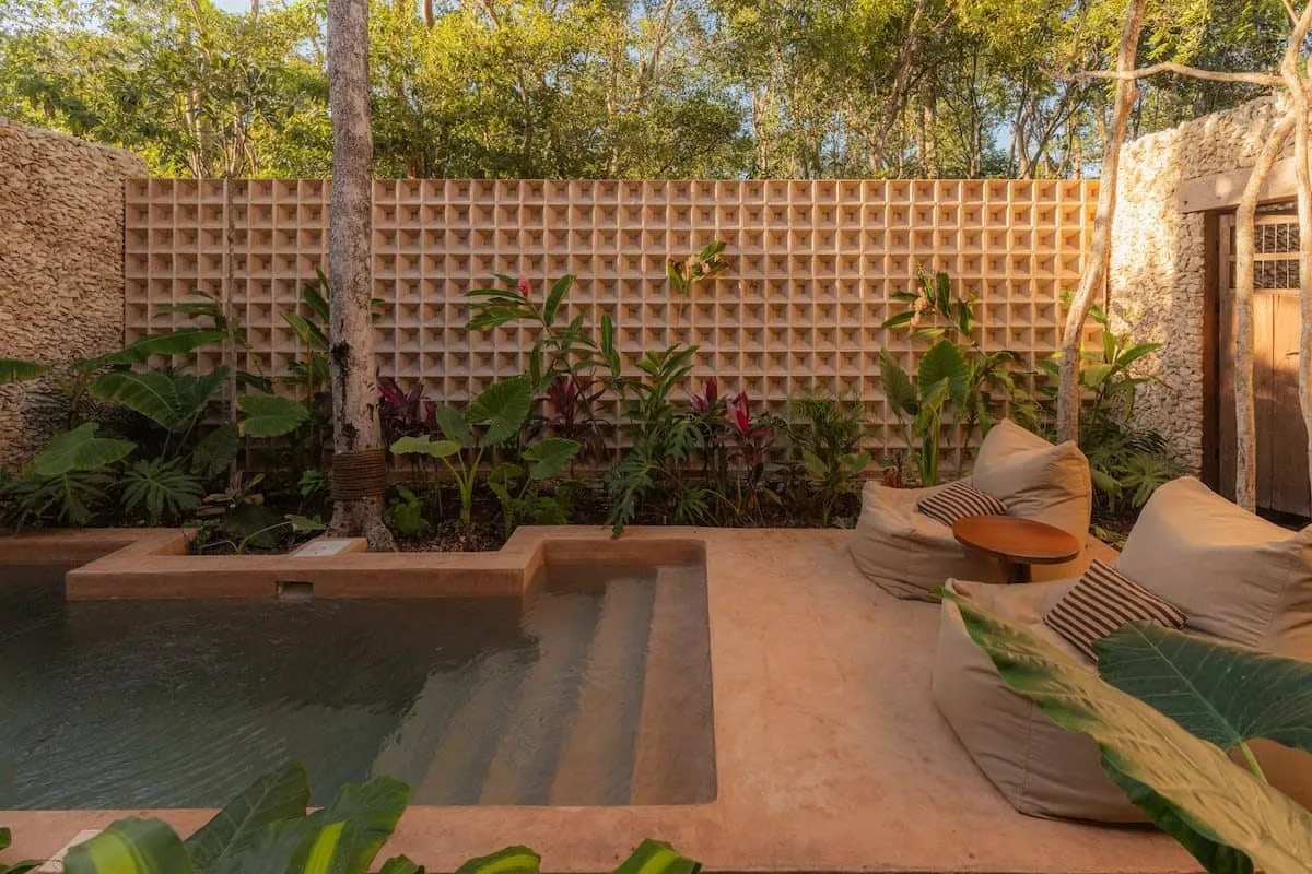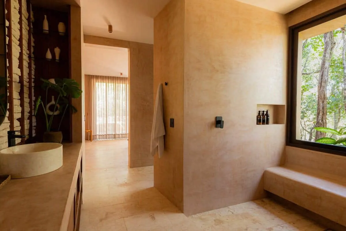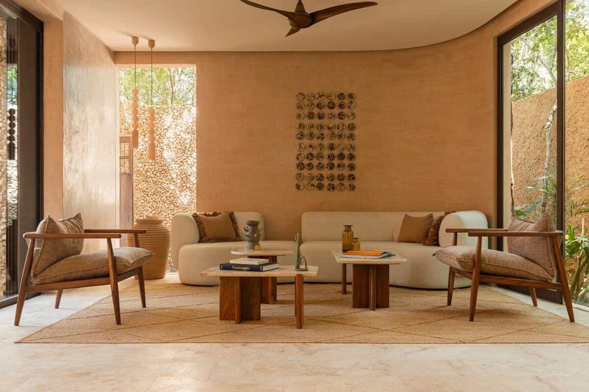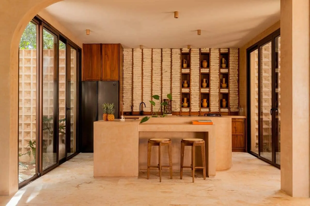 The 4 bedroom house is designed in the style that has characterized architecture in Tulum in recent years, combining contemporary minimalist elements with nods to Mexican, Mediterranean, Asian, and Islamic influences.