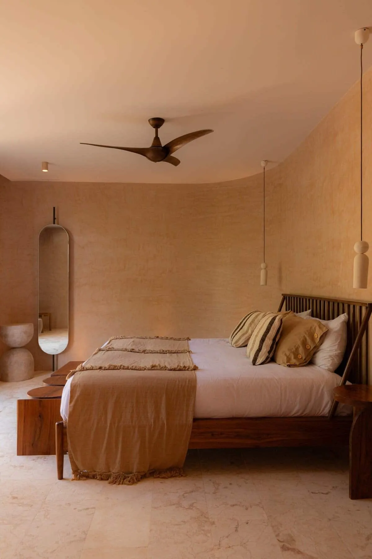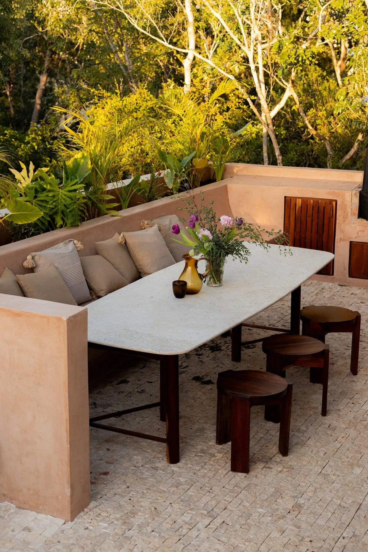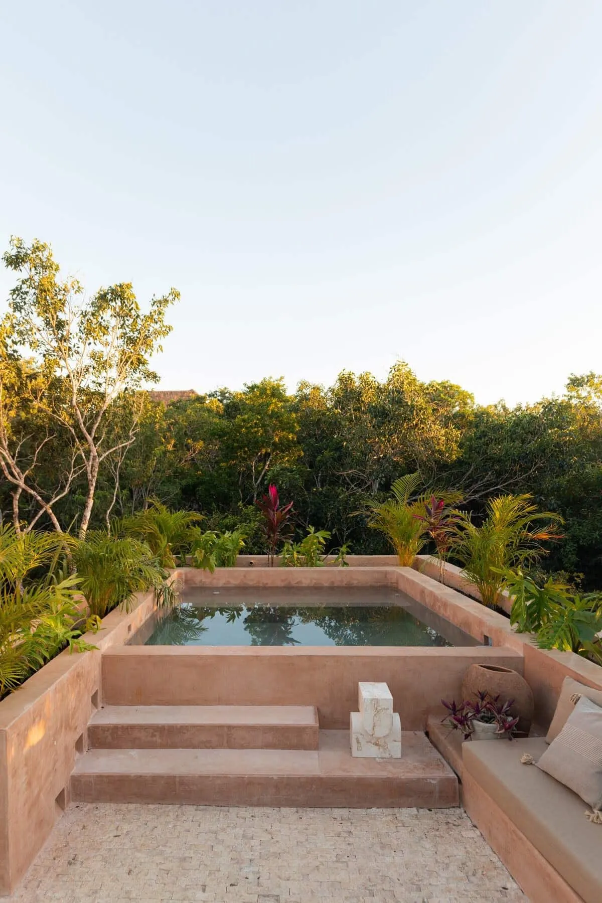 The 4 bedroom house is designed in the style that has characterized architecture in Tulum in recent years, combining contemporary minimalist elements with nods to Mexican, Mediterranean, Asian, and Islamic influences.