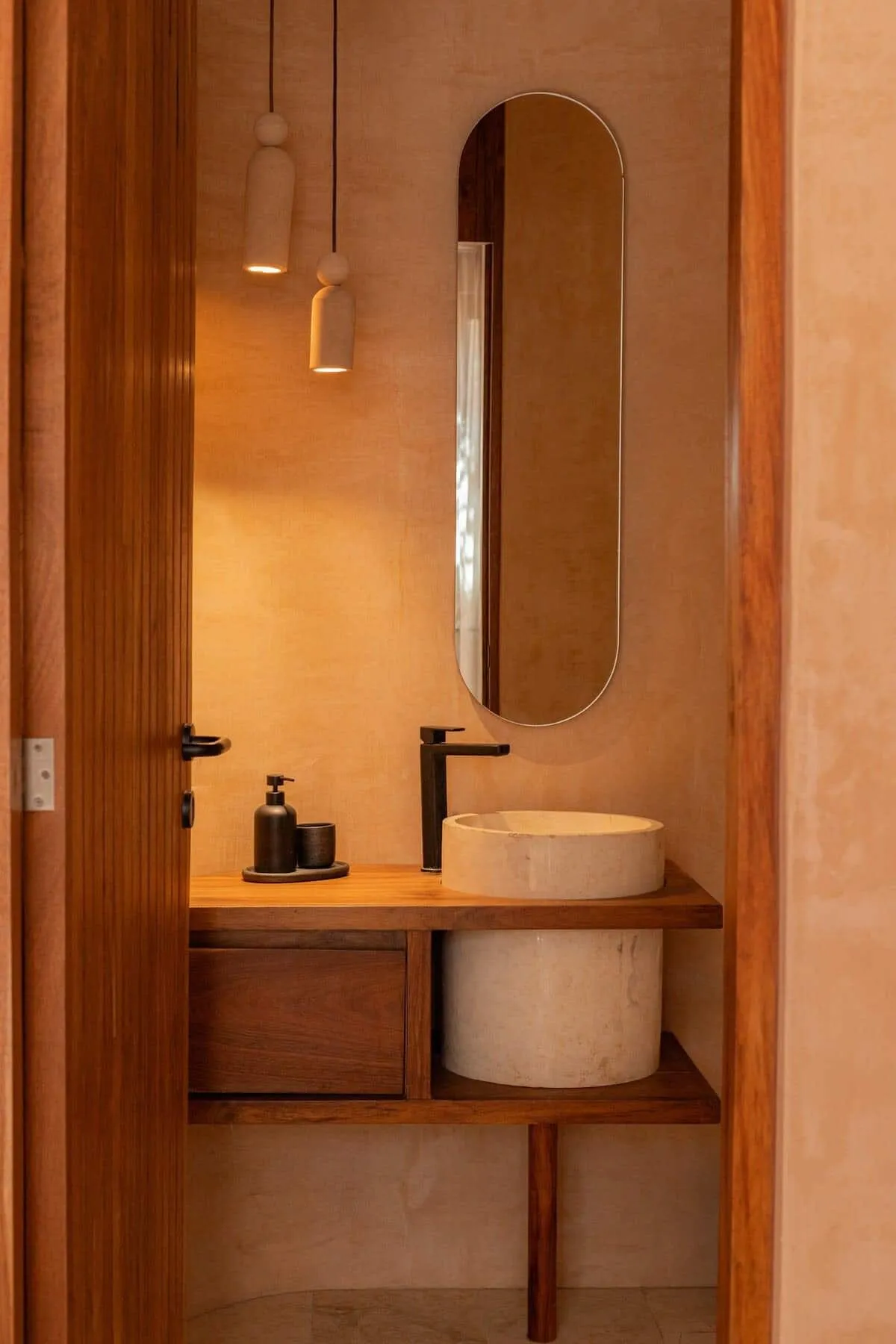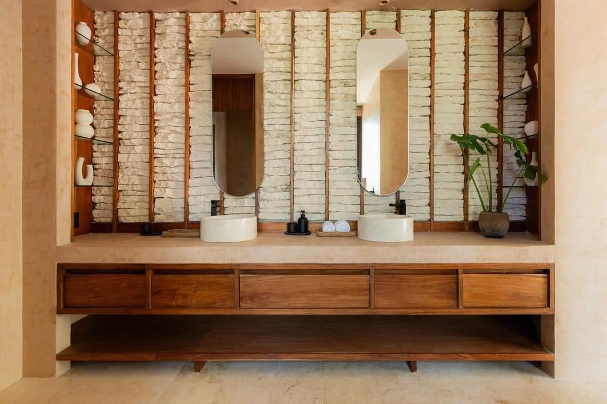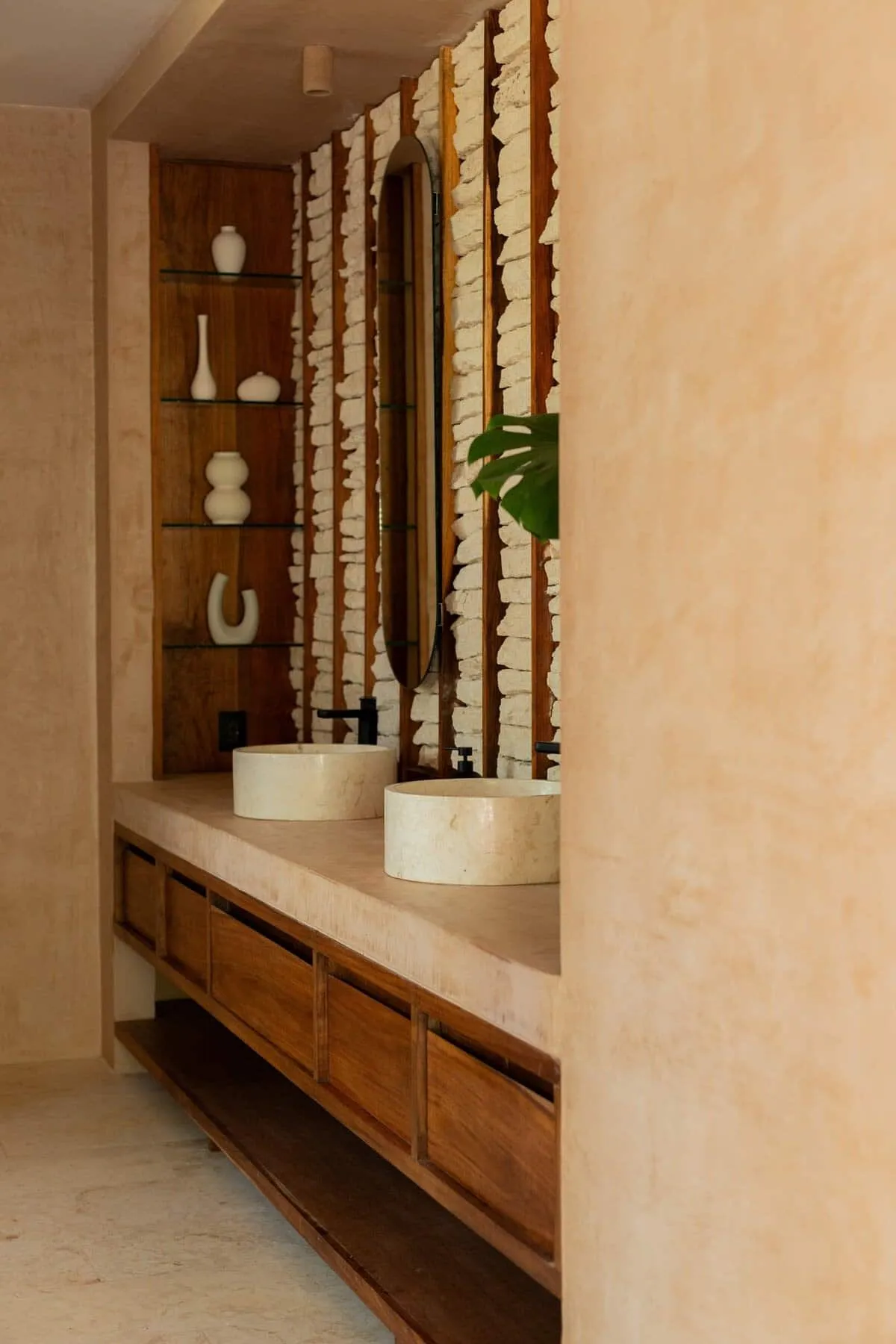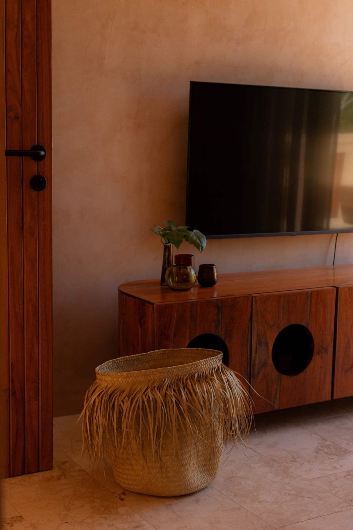 The 4 bedroom house is designed in the style that has characterized architecture in Tulum in recent years, combining contemporary minimalist elements with nods to Mexican, Mediterranean, Asian, and Islamic influences.