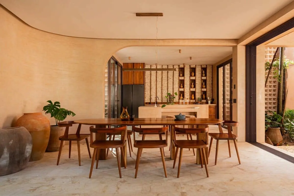 It incorporates a series of courtyards and gardens with open vestibules that connect spaces requiring greater climate control and privacy. The spaces either fold inwards or open up to the outside, providing views of the various tropical gardens of the house.