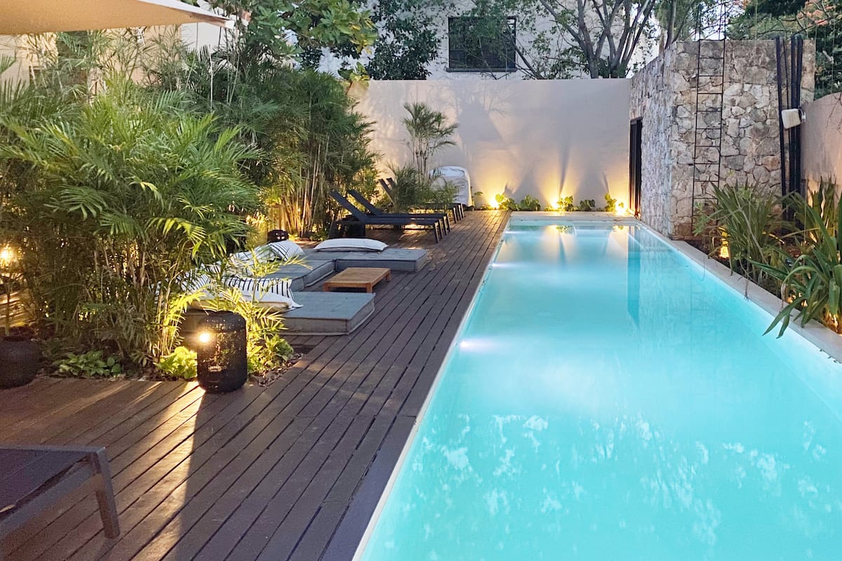 Welcome to Casa Tuut, a spacious and refined home designed for families and groups. With high ceilings, large windows, and open living areas, the house offers a bright and relaxing atmosphere in the heart of Mérida. Guests can enjoy a 20-meter heated pool, available from December to February, a fully equipped gym, and private outdoor areas suitable for dining and leisure. The location also provides convenient access to Paseo Montejo and other cultural attractions.