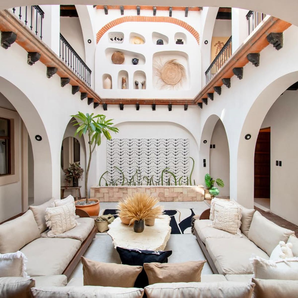 A design-forward, hacienda-style residence located in the heart of Oaxaca's historic center, just steps from the iconic Santo Domingo Church. Inspired by the ancestral energies of the Zapotec and Mayan cultures, the house is a living homage to the earth and sky—where heritage and artistry converge in a deeply intentional space.
