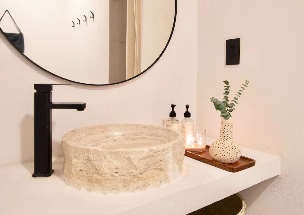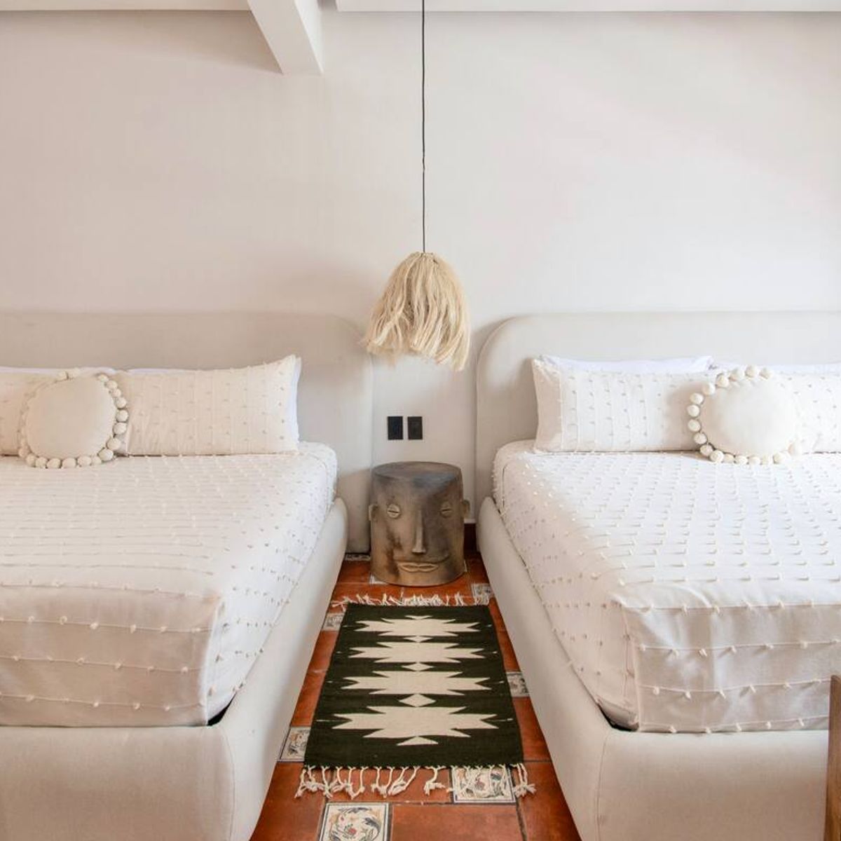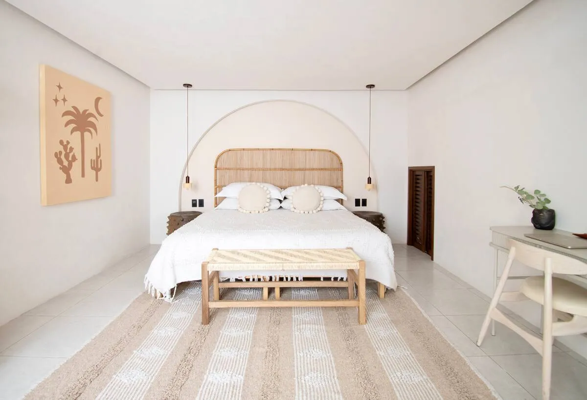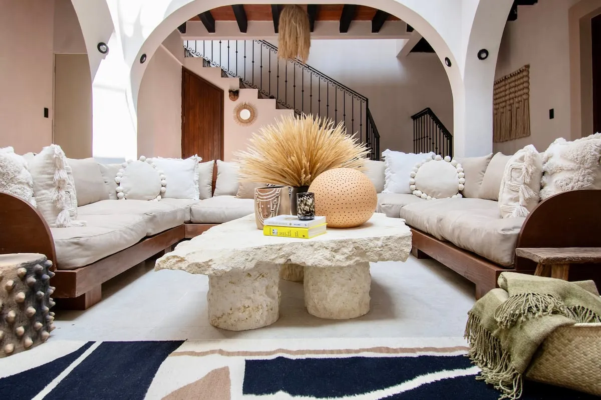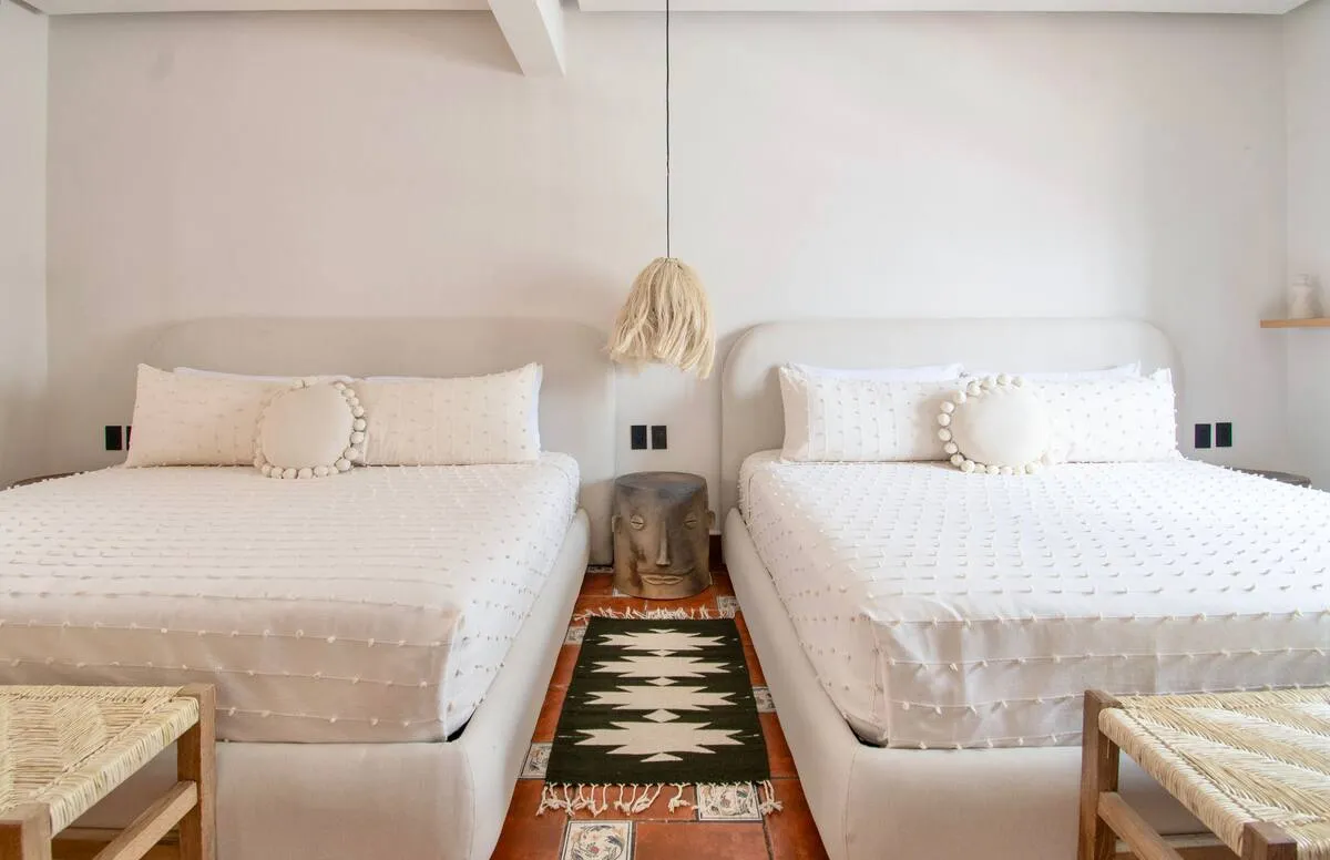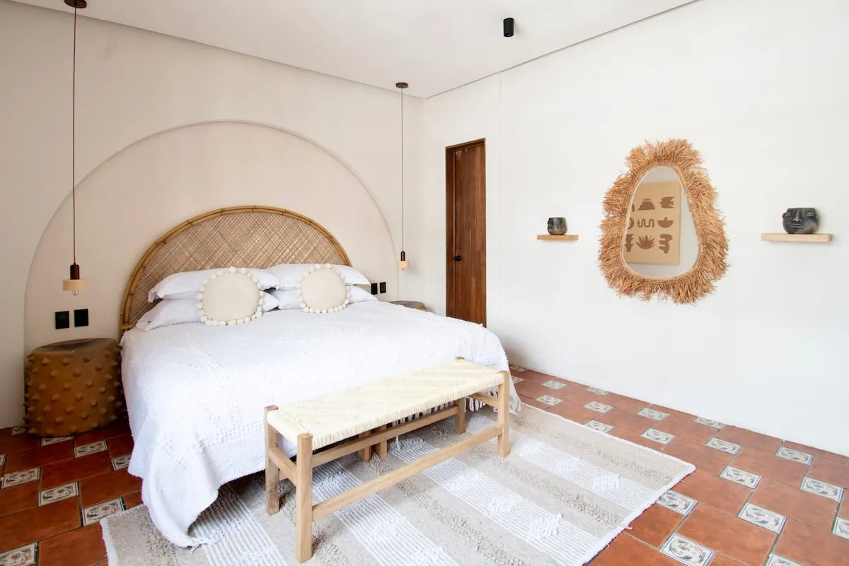 The home’s design reflects a refined yet soulful aesthetic, blending black clay, natural textiles, and custom artworks inspired by agaves, palms, and Oaxacan symbolism. Nearly every element has been handcrafted by Mexican artisans, offering an immersive experience of contemporary Mexican craft.