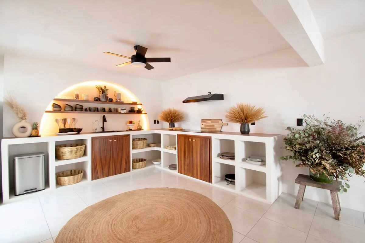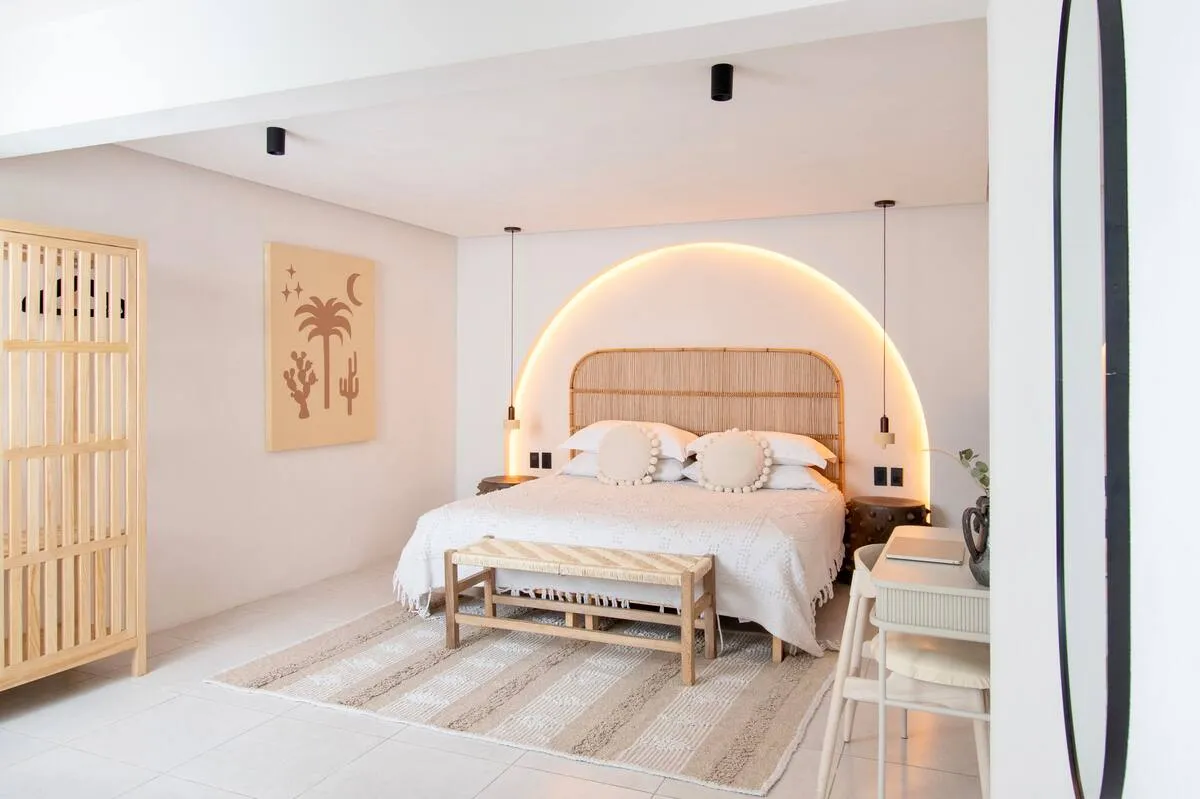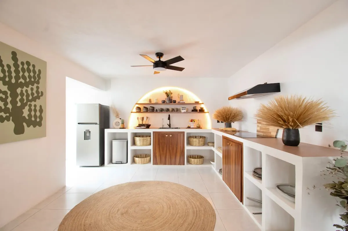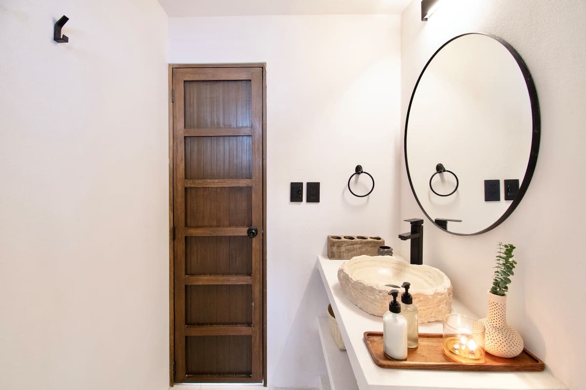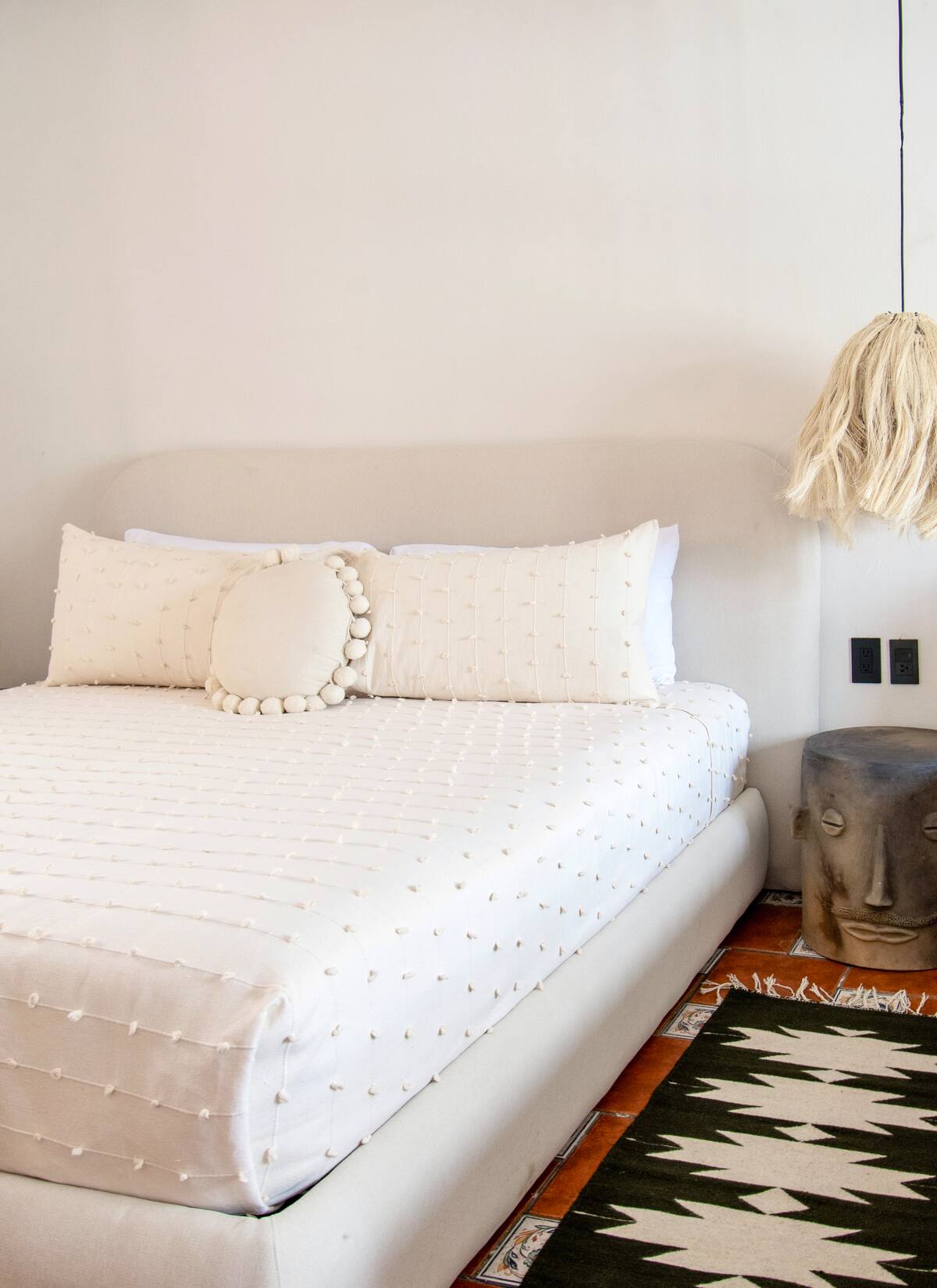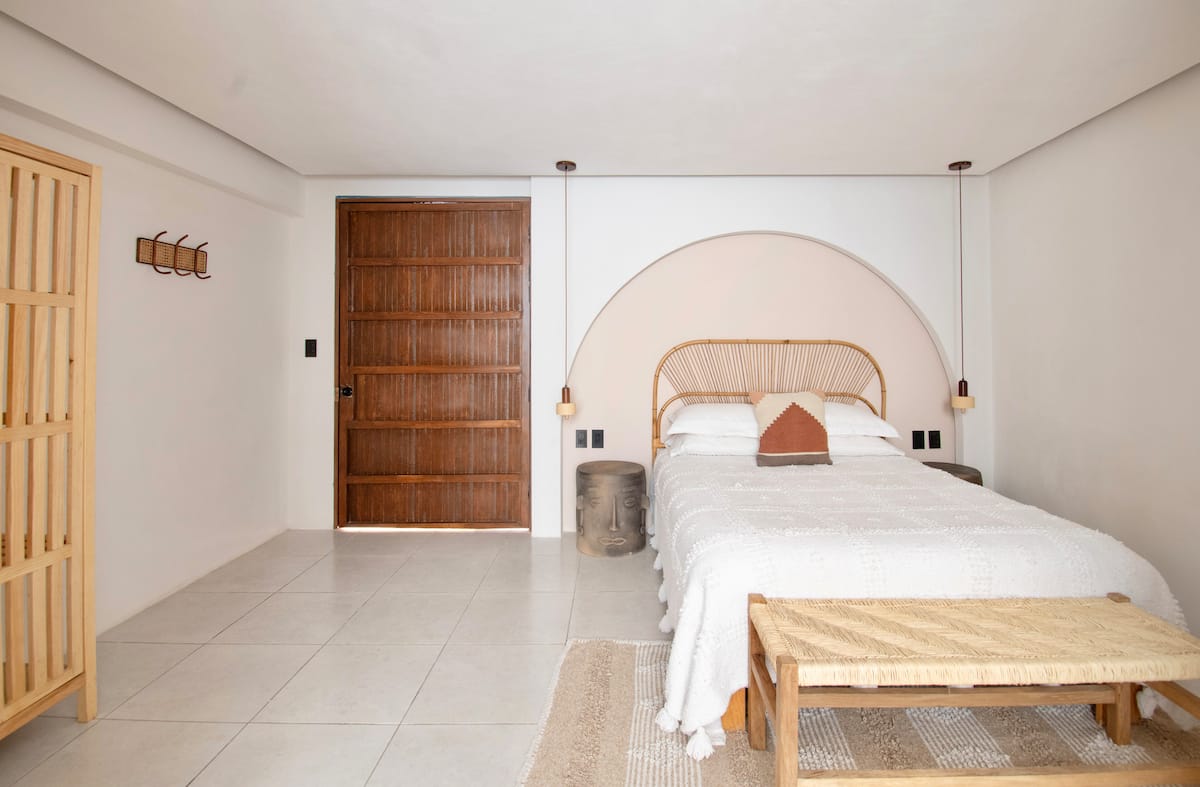 The home’s design reflects a refined yet soulful aesthetic, blending black clay, natural textiles, and custom artworks inspired by agaves, palms, and Oaxacan symbolism. Nearly every element has been handcrafted by Mexican artisans, offering an immersive experience of contemporary Mexican craft.