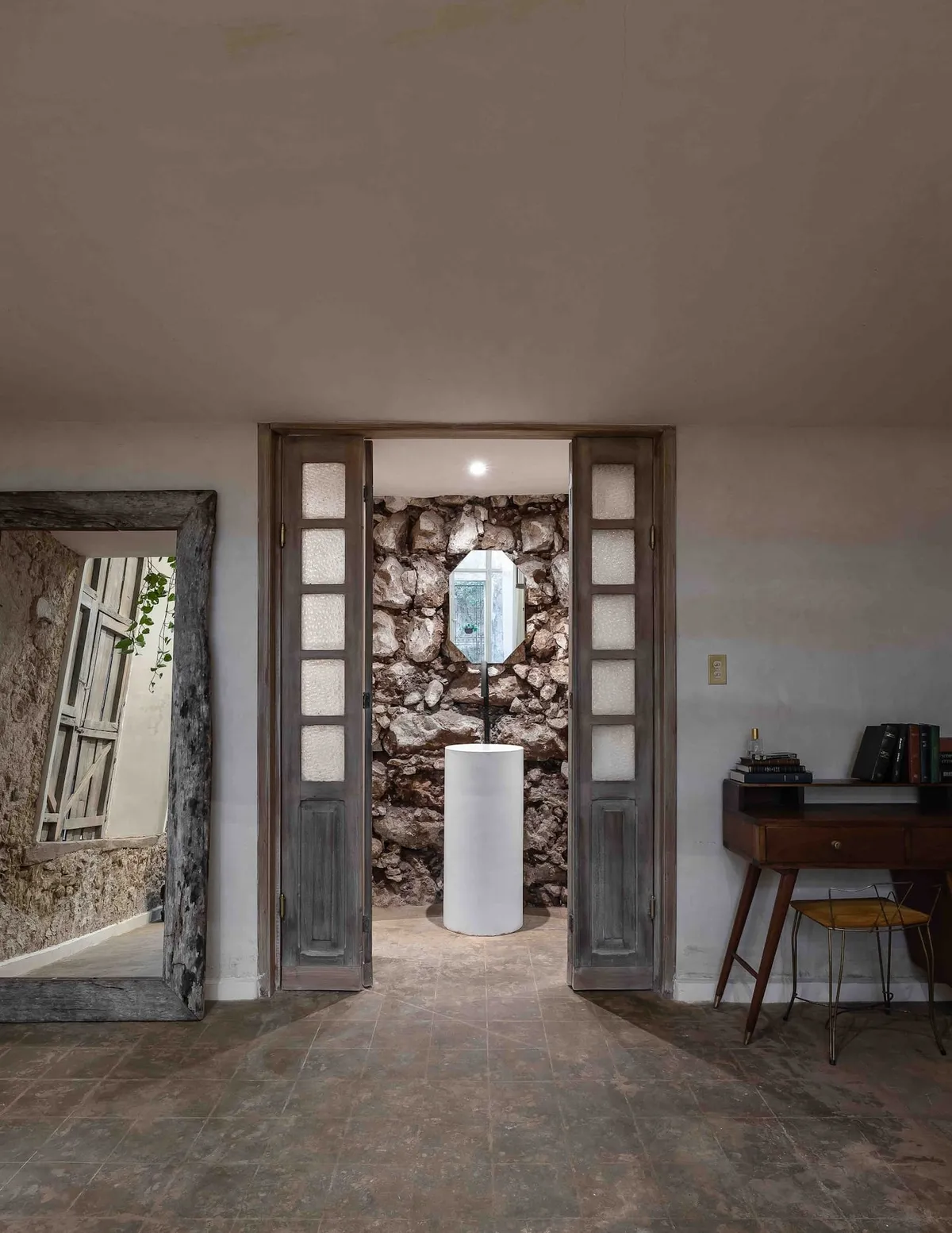 The accommodation radiates exclusivity, offering guests unrestricted access to all its facilities, including a kitchen, private swimming pool, and more. Infused with a distinct ethos of recycling, recovery, and wabi-sabi, the space is imbued with an unmistakable charisma. Each piece of furniture, each nook and cranny, is meticulously designed to celebrate imperfection, weaving together a tapestry of beauty that transcends the conventional.