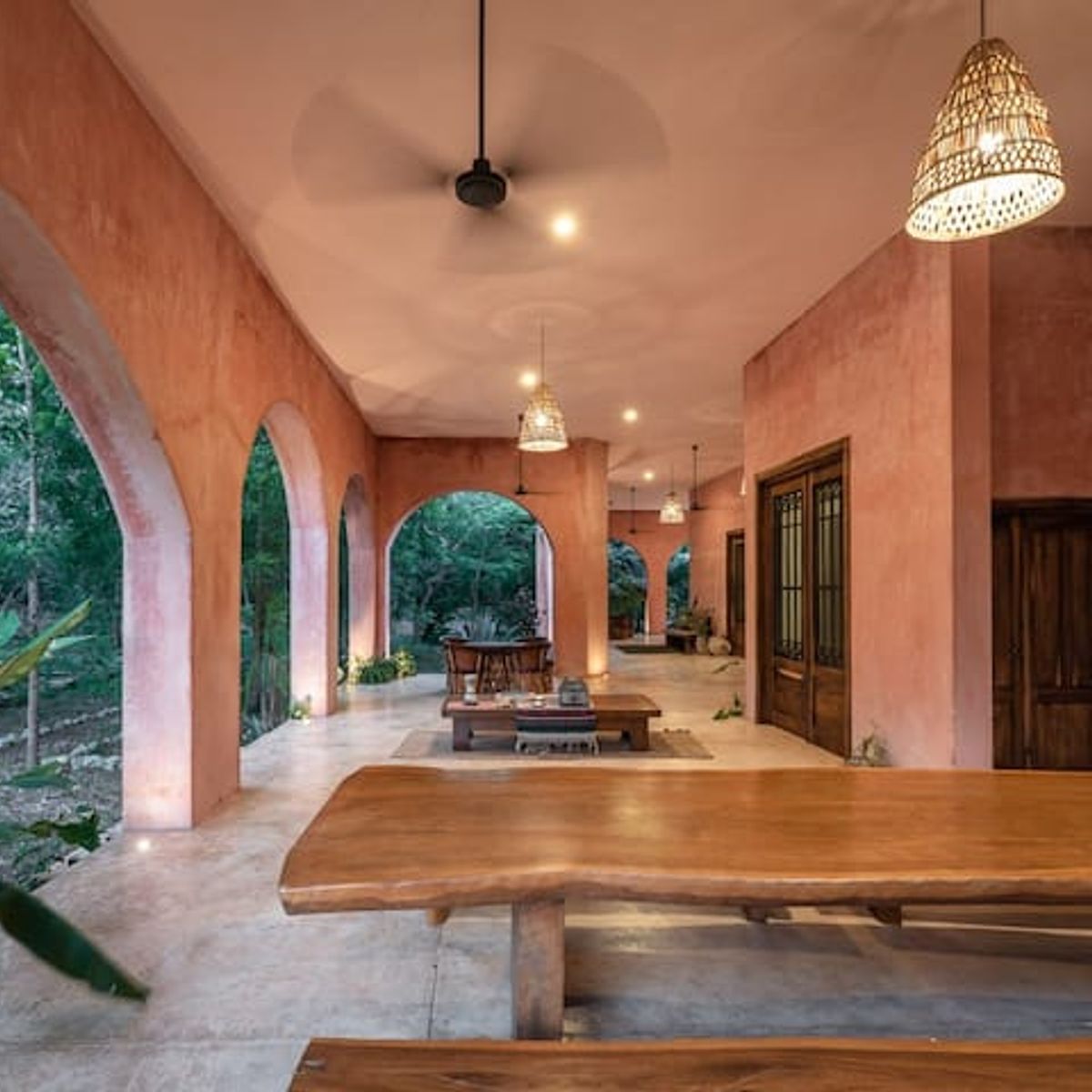 Kantoyna is the first Vagantes Collection house located outside the city center of Mérida. 20 minutes from the city in a nearby town, designer Gina Gongora restored this pink 4-bedroom dream villa to give a space among nature to those looking for a unique getaway.